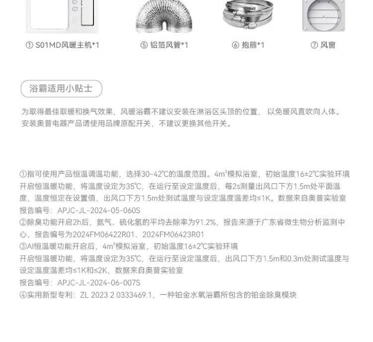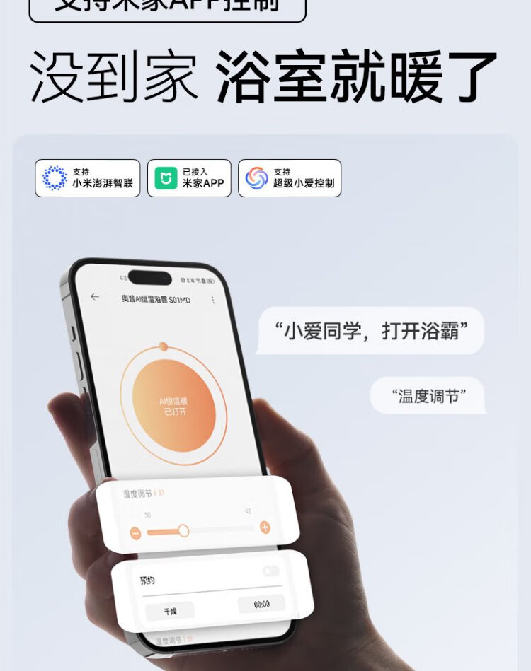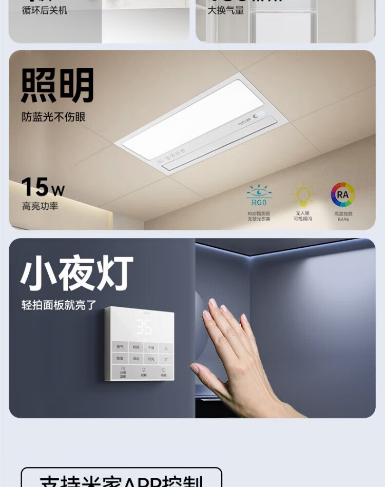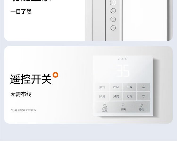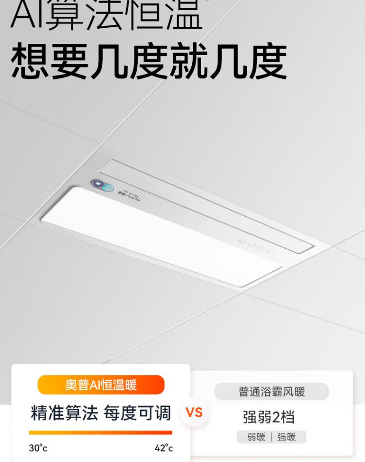 AUPU AI Constant Warm Bath Heater S01MD Smart Bath Heater Platinum Deodorizing | Three-speed Ventilation | Hair Dryer Intelligent Control