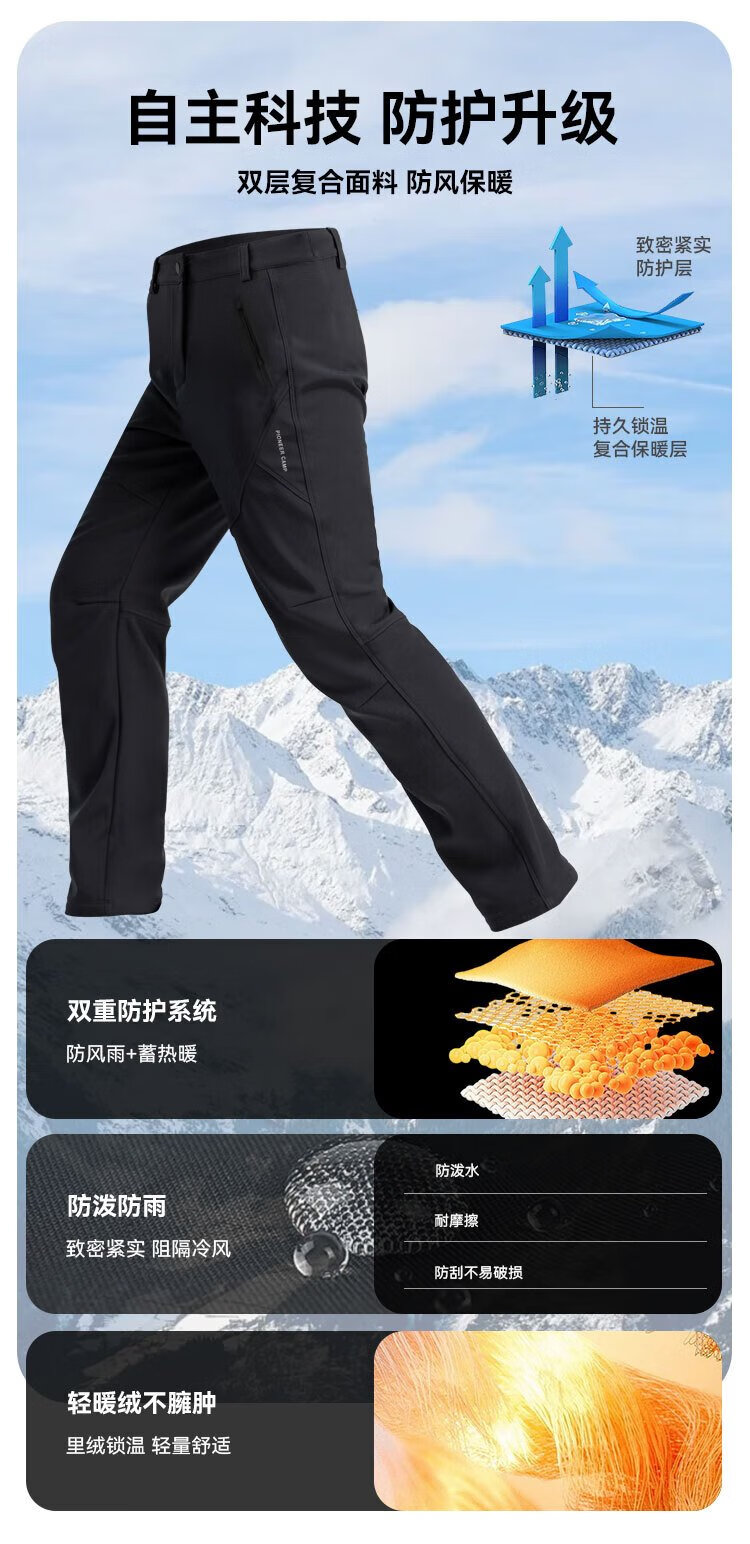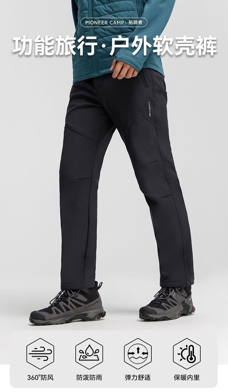 Pathfinder Tibetan Wolf Soft Shell Pants Men's Autumn and Winter New Outdoor Scratch-Resistant Hiking Mountaineering Pants Men's Casual Velvet Straight-leg Pants