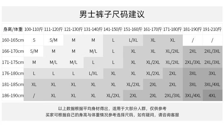 China (cm) 160-165/84-86 165-170 / 88-90 167-172 / 92-96 168-173 / 98-102 170-176 / 106-110