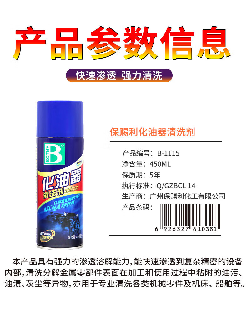 BOTNY car carburetor cleaner motorcycle parts carburetor throttle cleaner mechanical carbon deposit oil removal B-1115 450ml 1 bottle