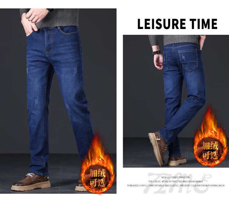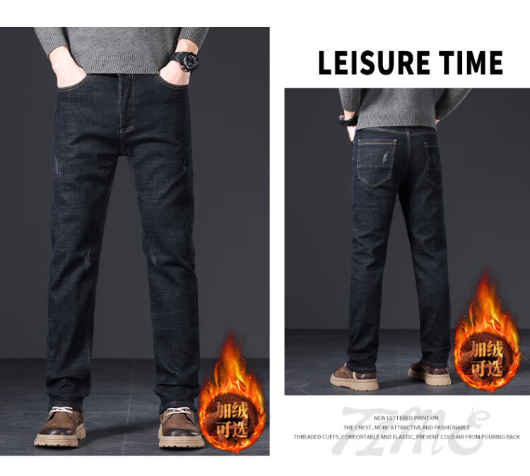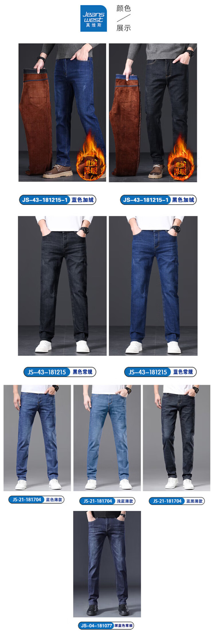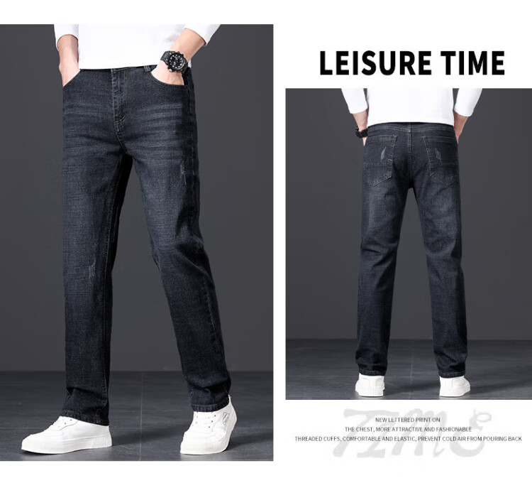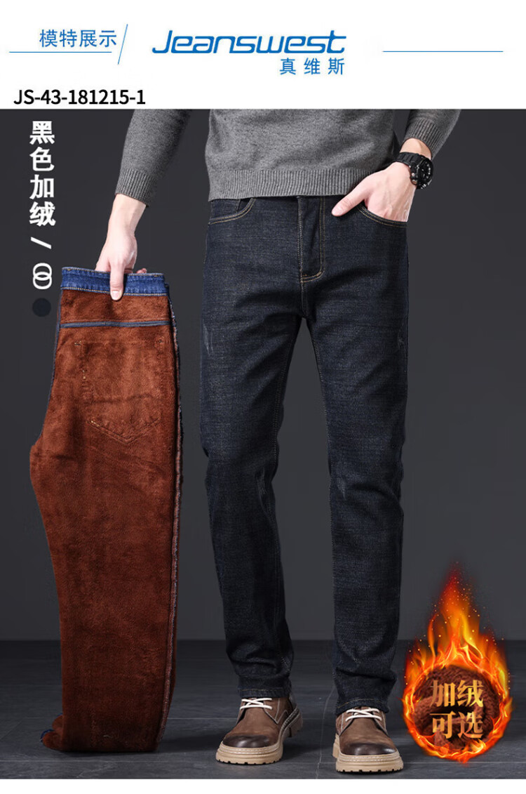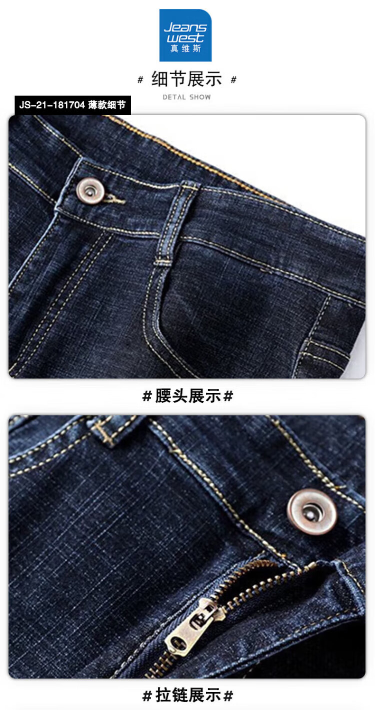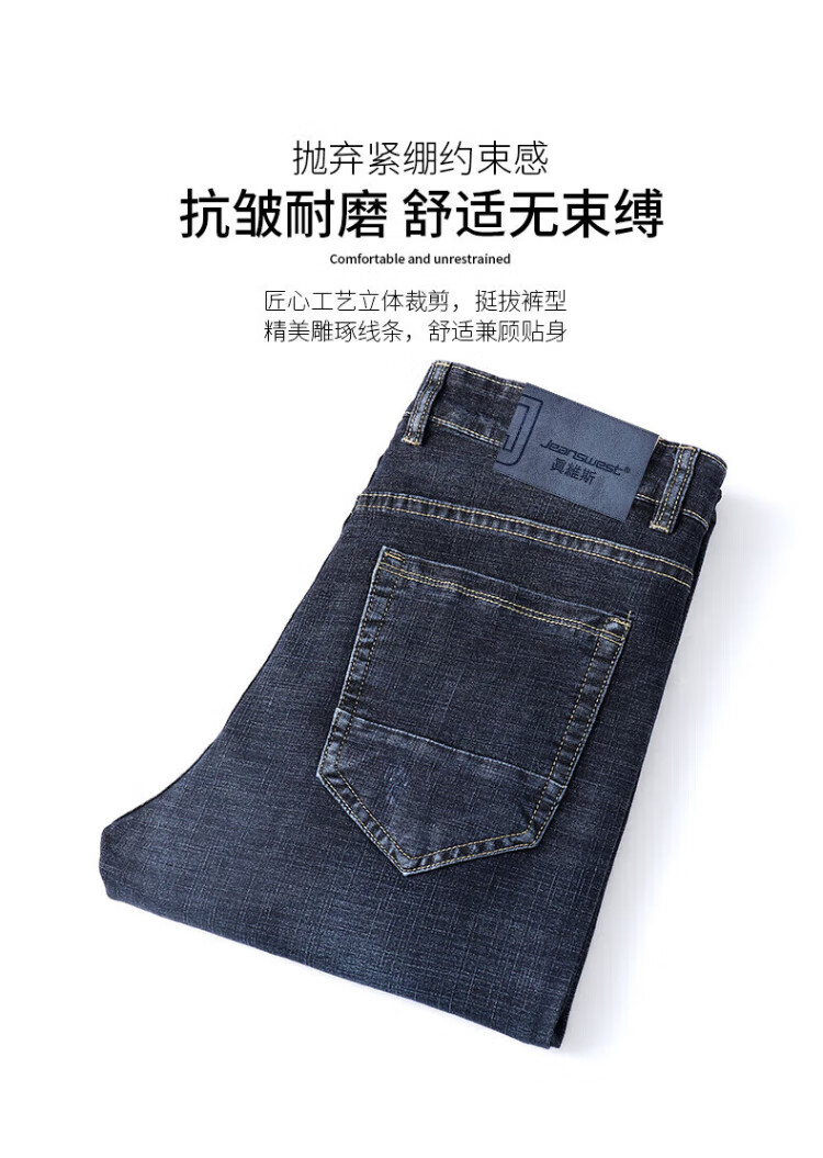 JEANSWEST jeans men's 2025 autumn and winter light business straight slim denim trousers men's blue regular 34