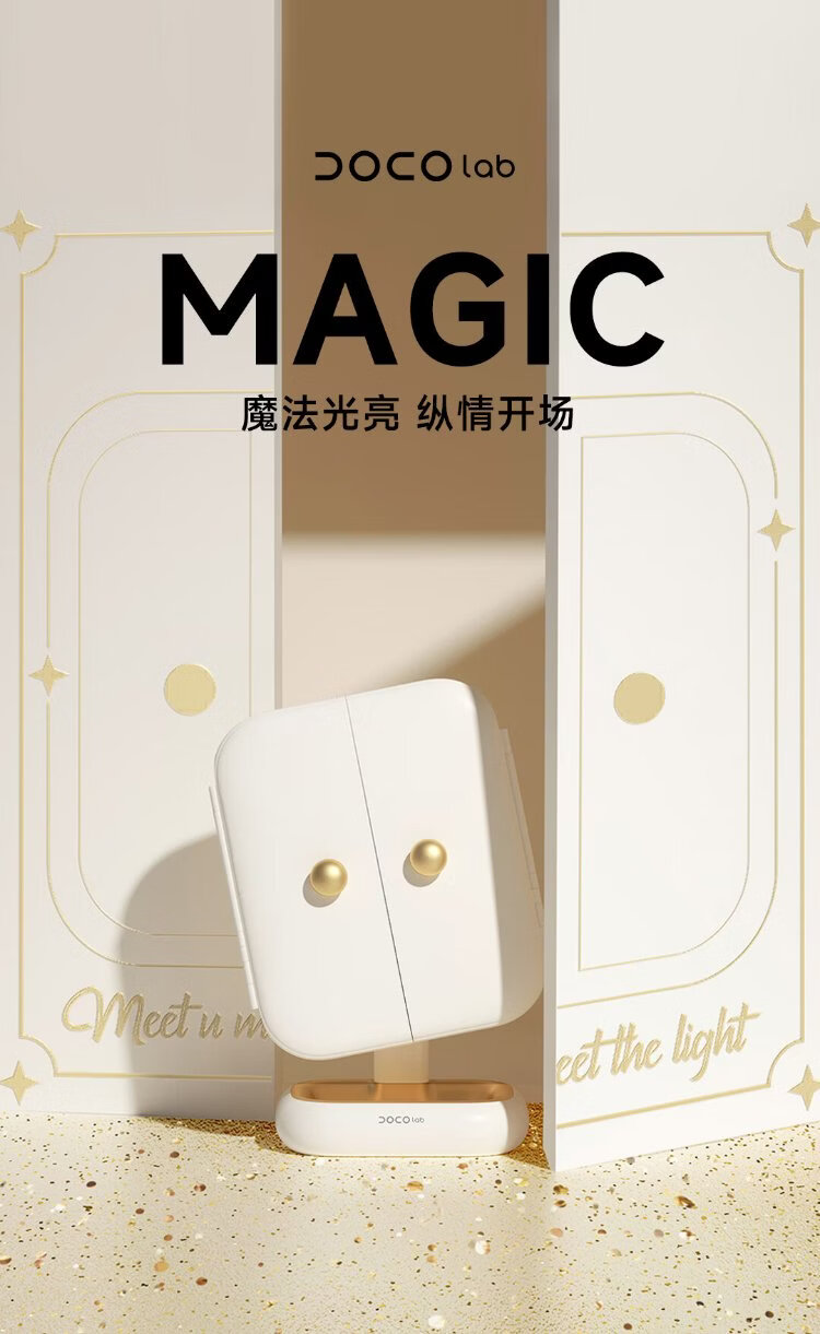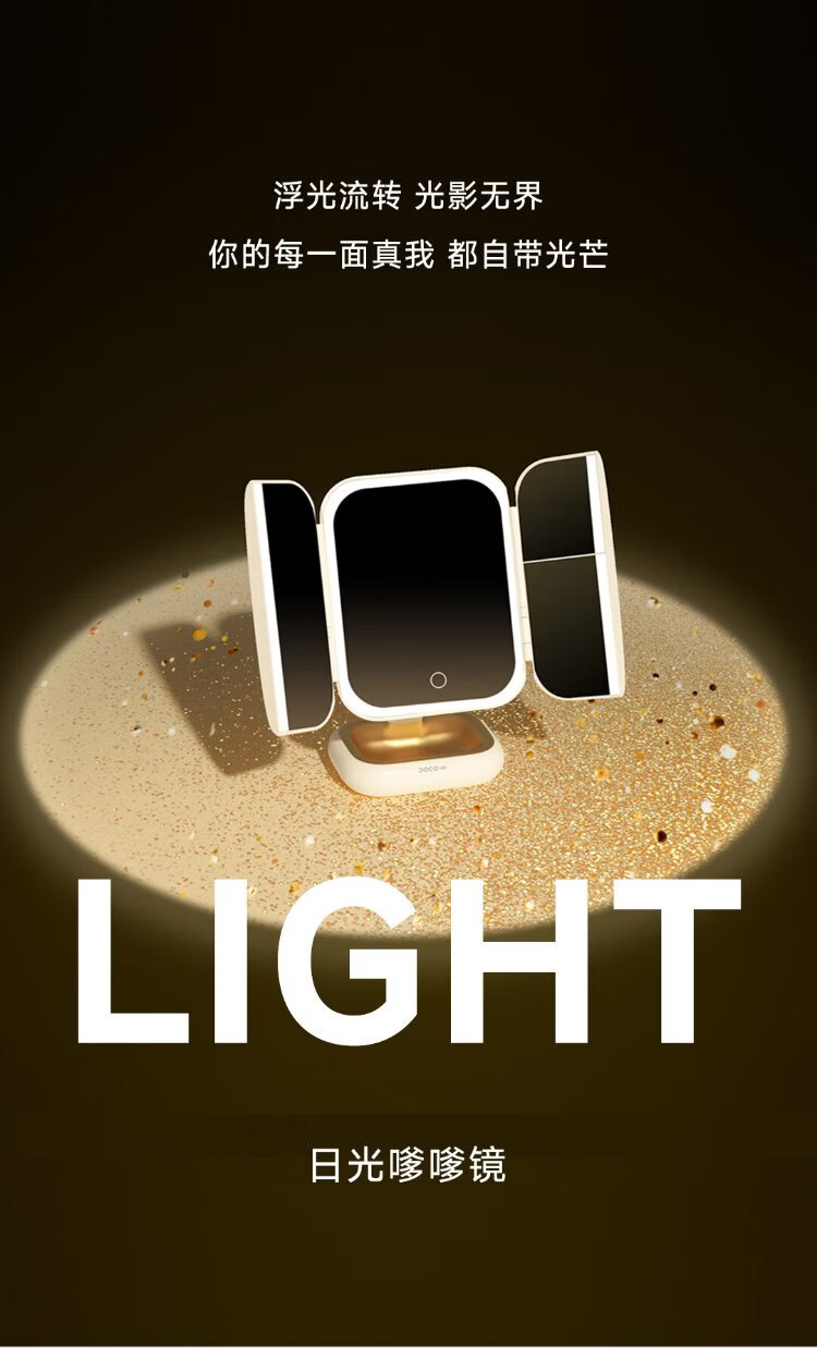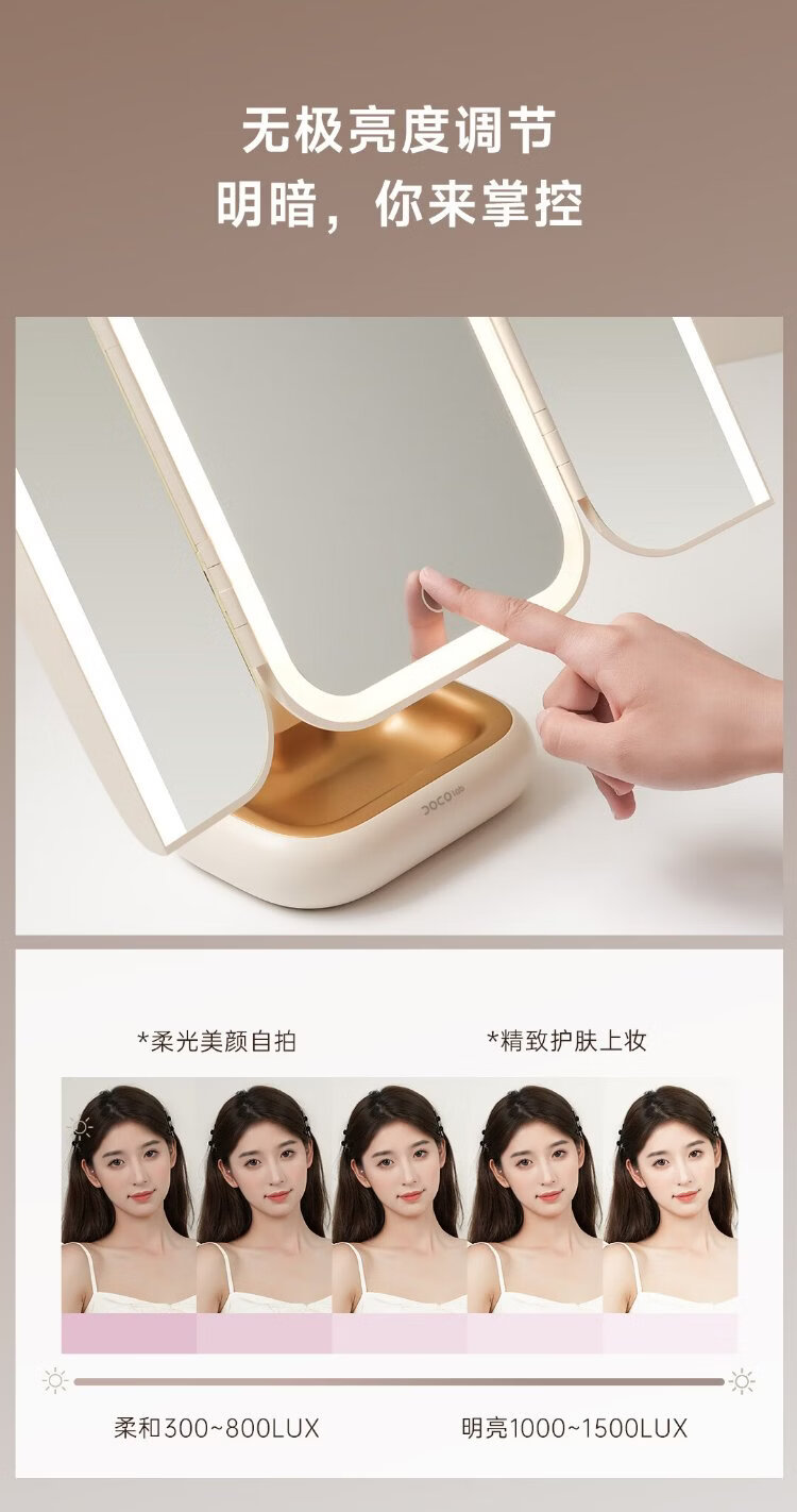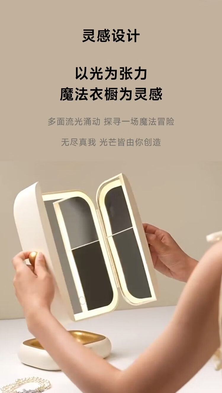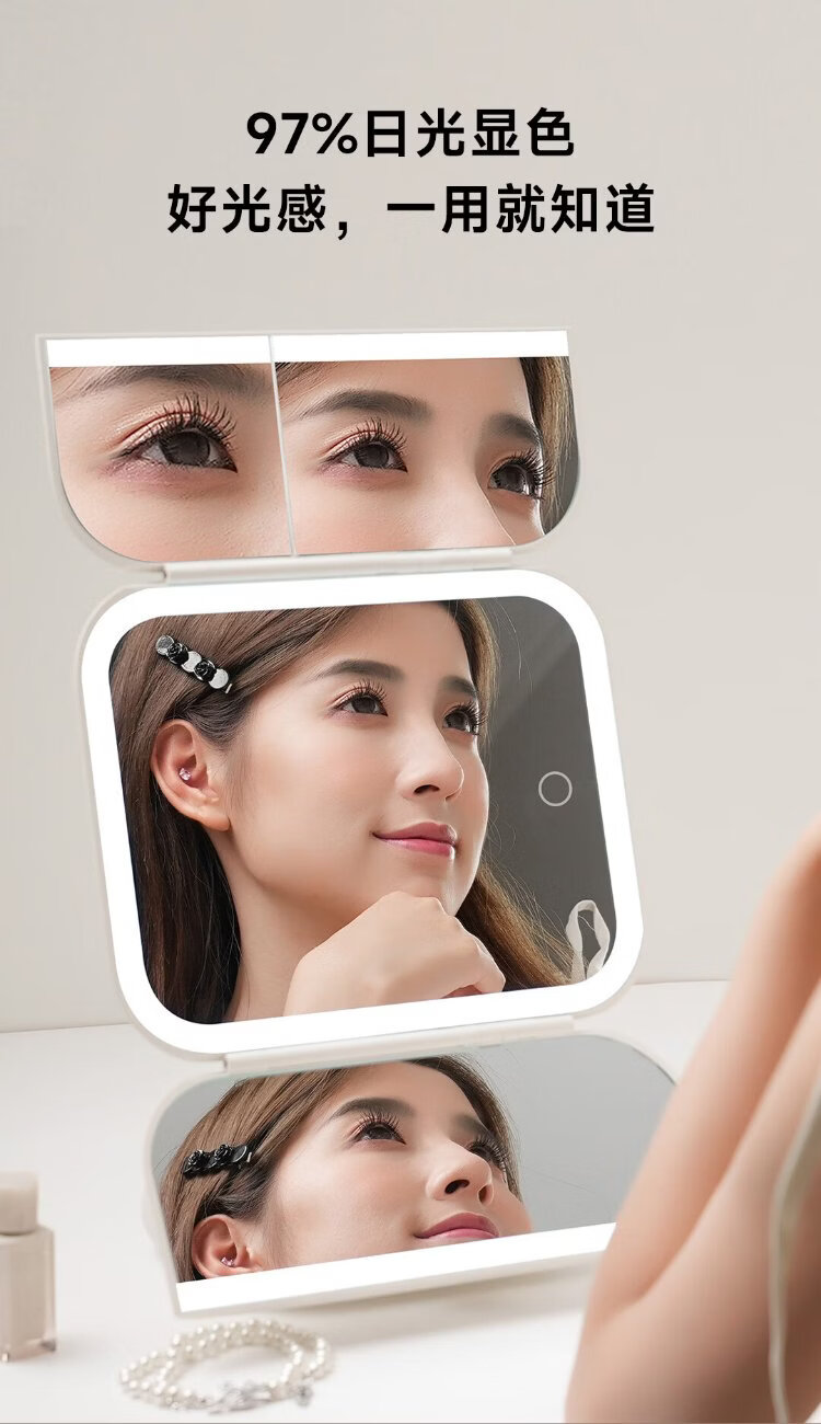DOCO LAB mirror makeup mirror with light led foldable magnifying makeup mirror dormitory bedroom dressing table desktop large high-definition smart beauty mirror birthday and New Year gift for girlfriend