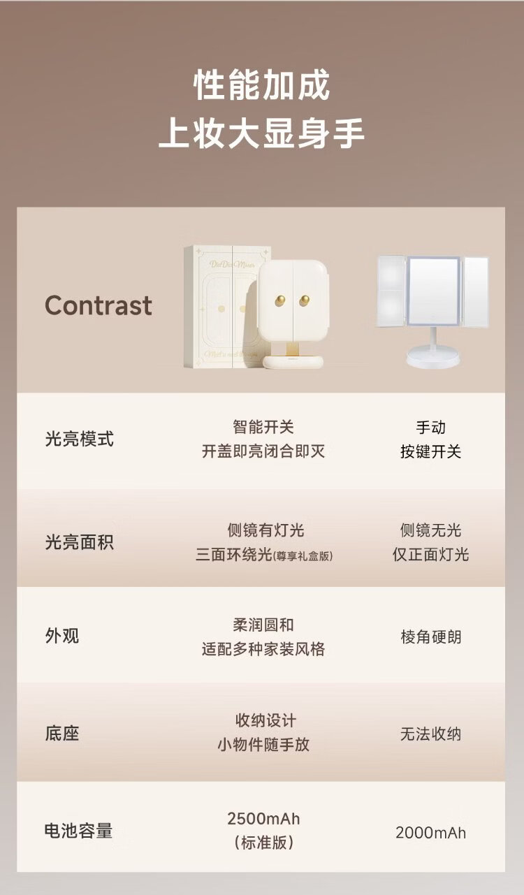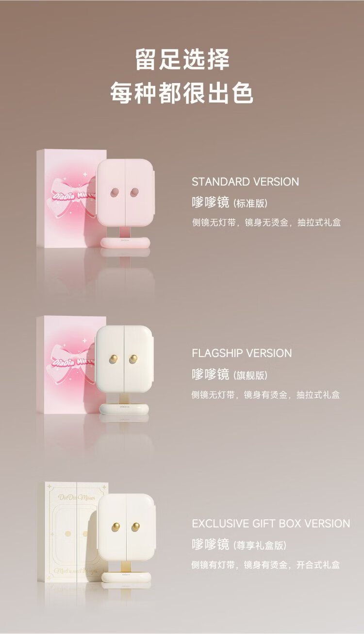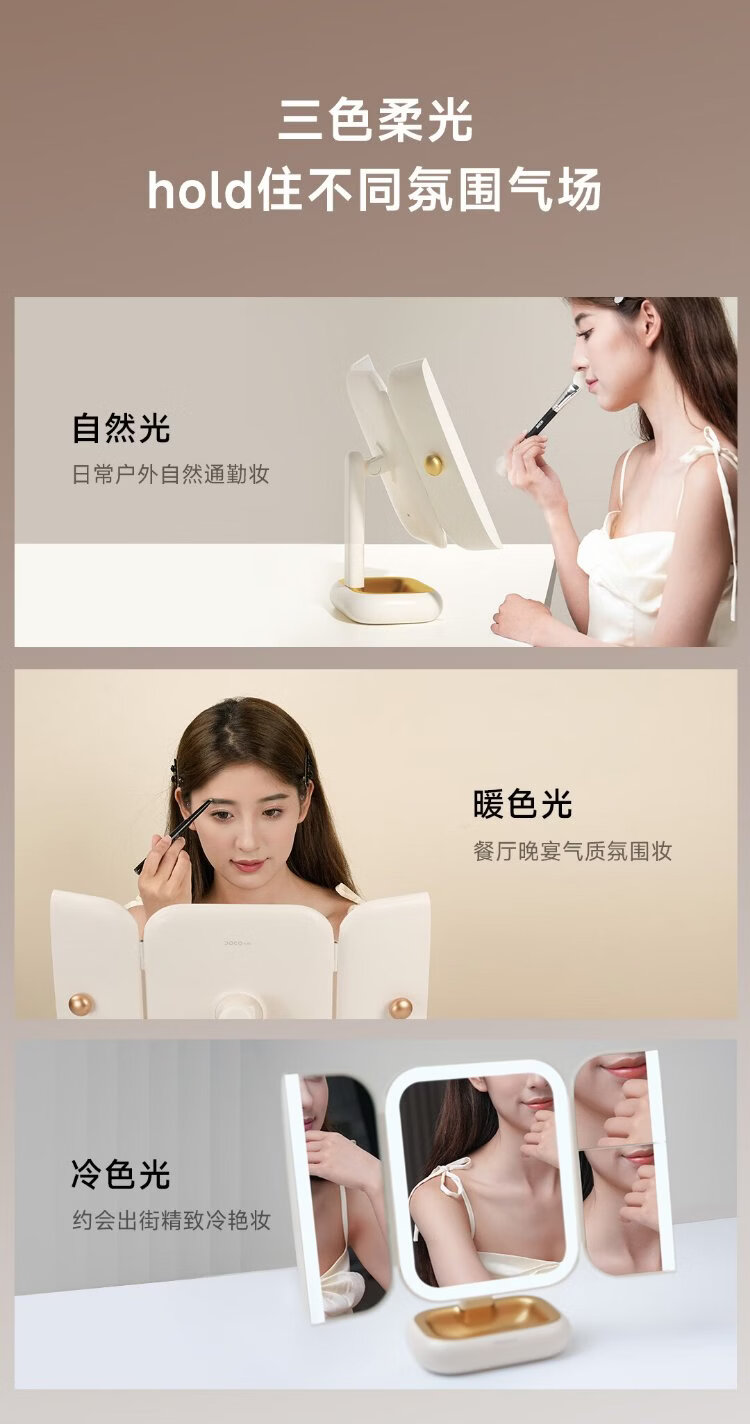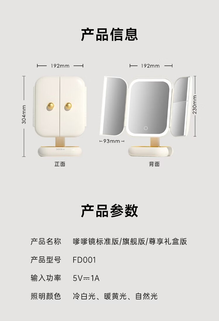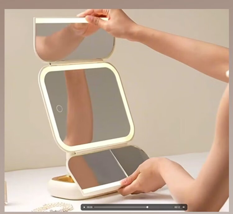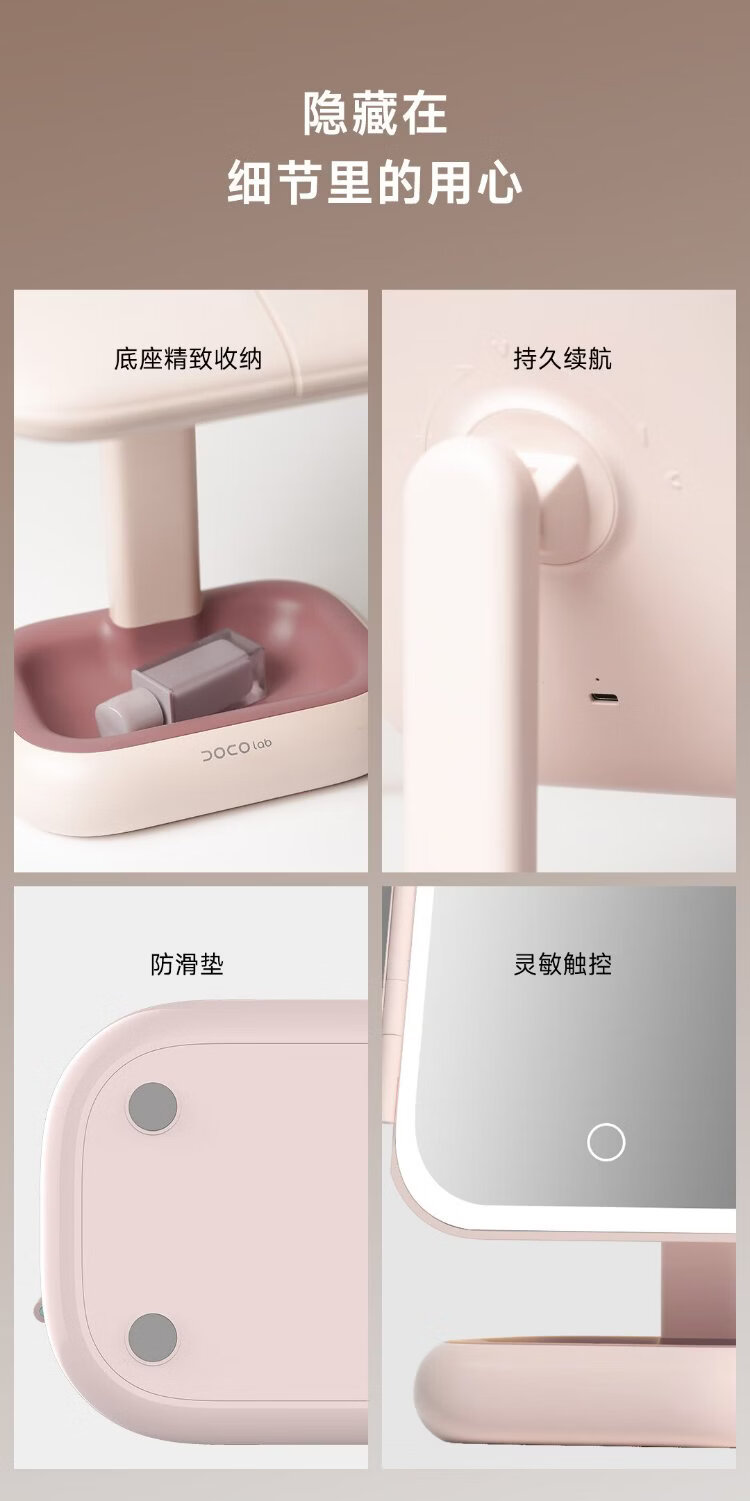 DOCO LAB mirror makeup mirror with light led foldable magnifying makeup mirror dormitory bedroom dressing table desktop large high-definition smart beauty mirror birthday and New Year gift for girlfriend