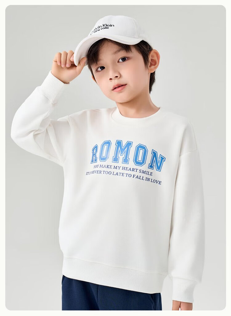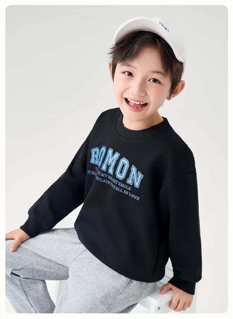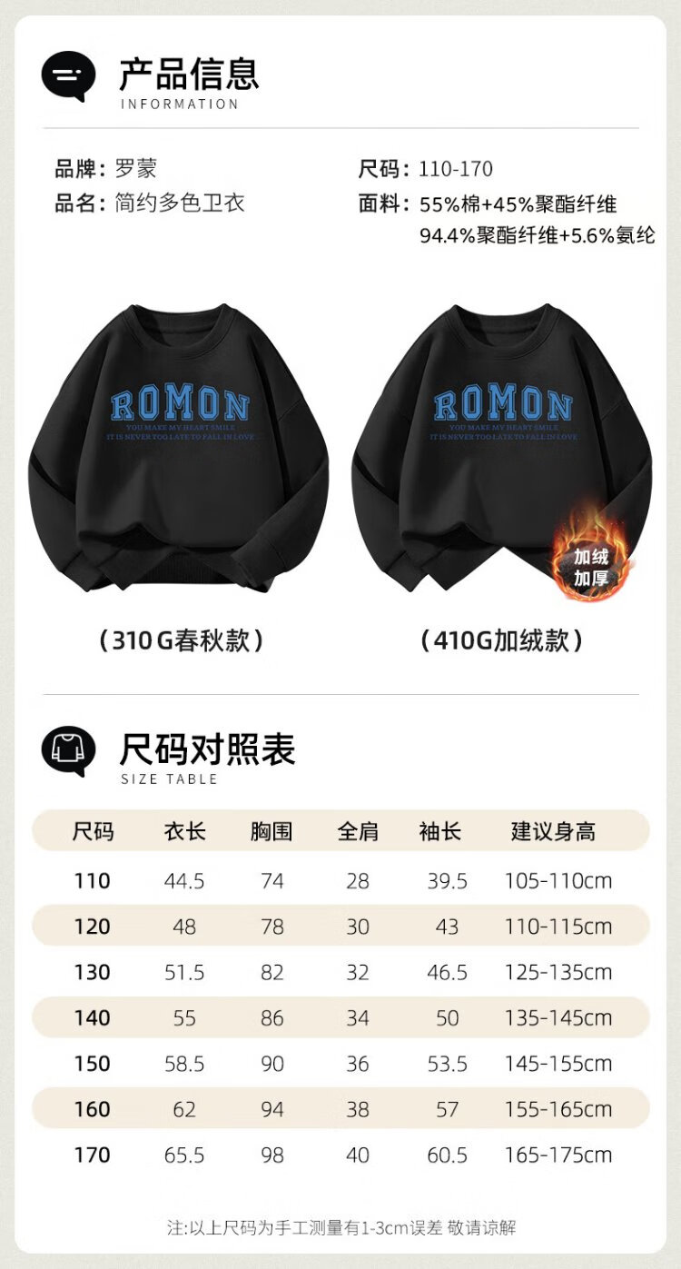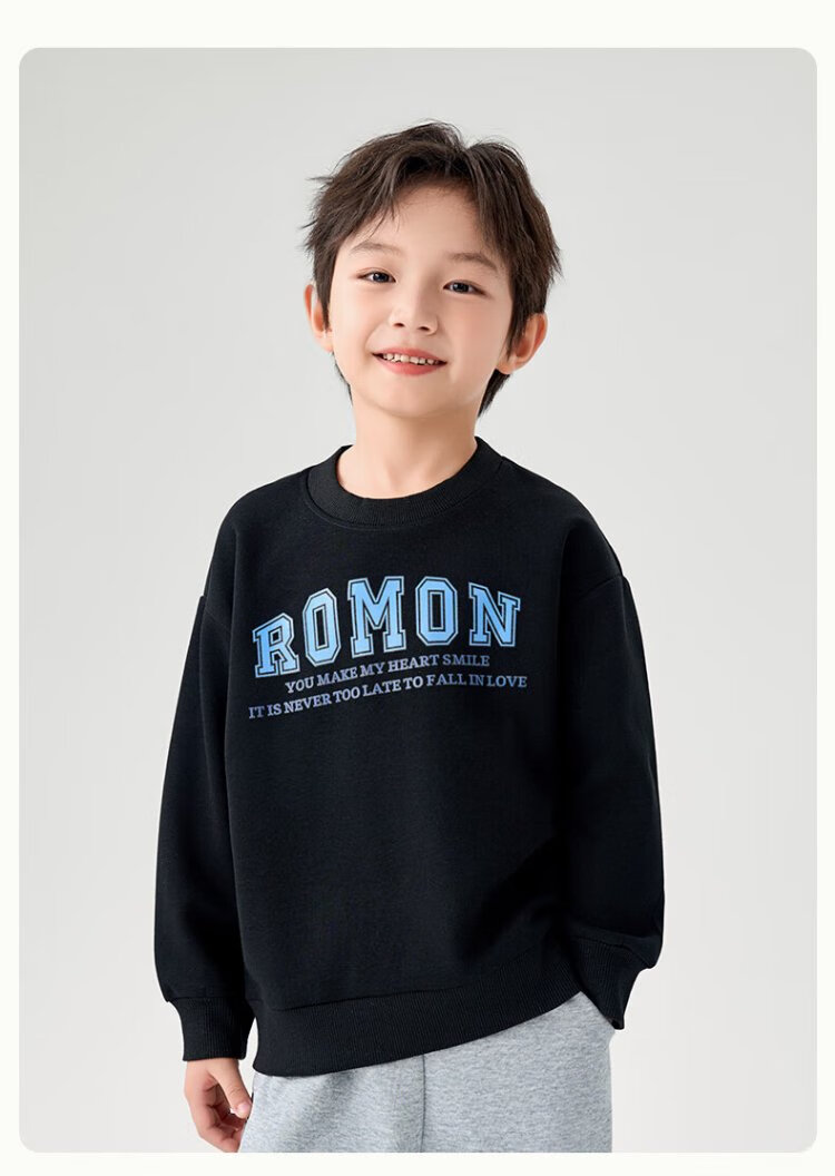 Romon children's sweatshirt spring style style tops for boys and girls, big boys and girls, versatile fashionable casual sportswear black 140