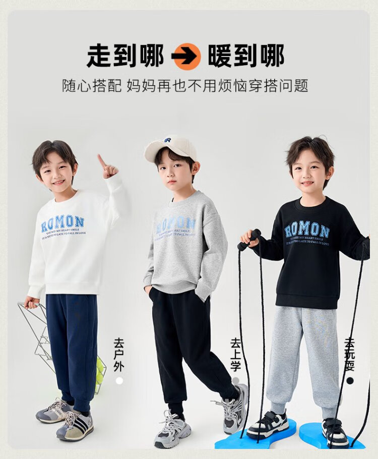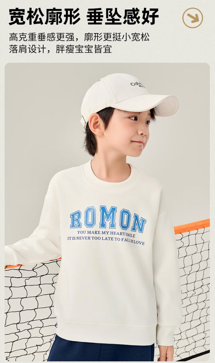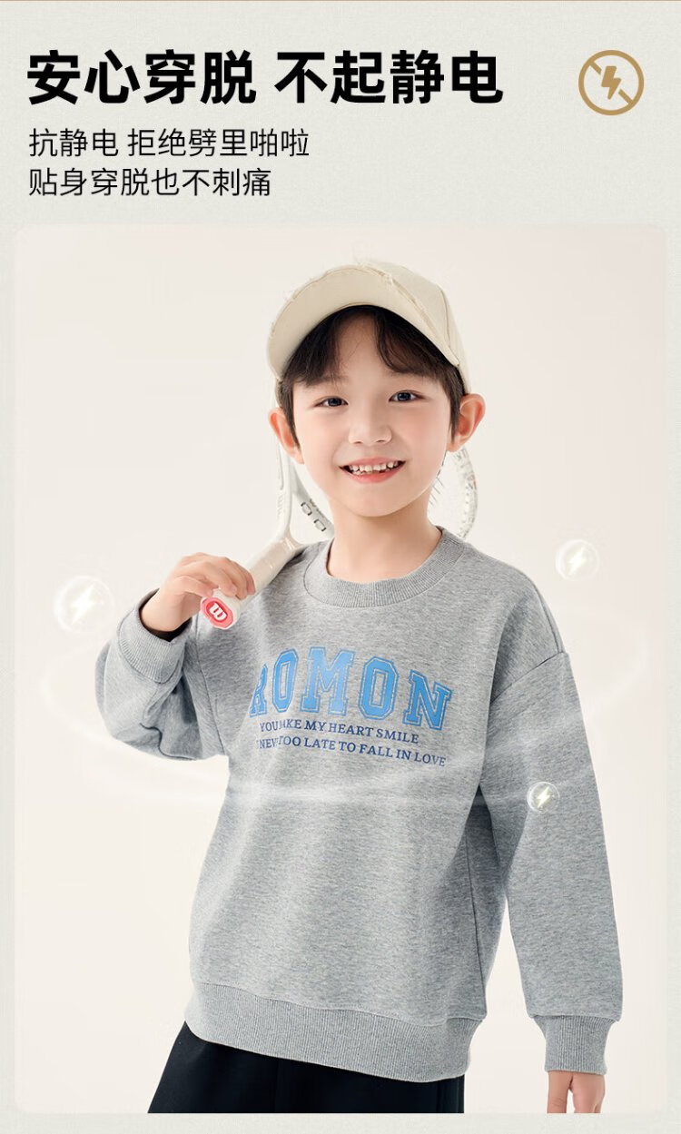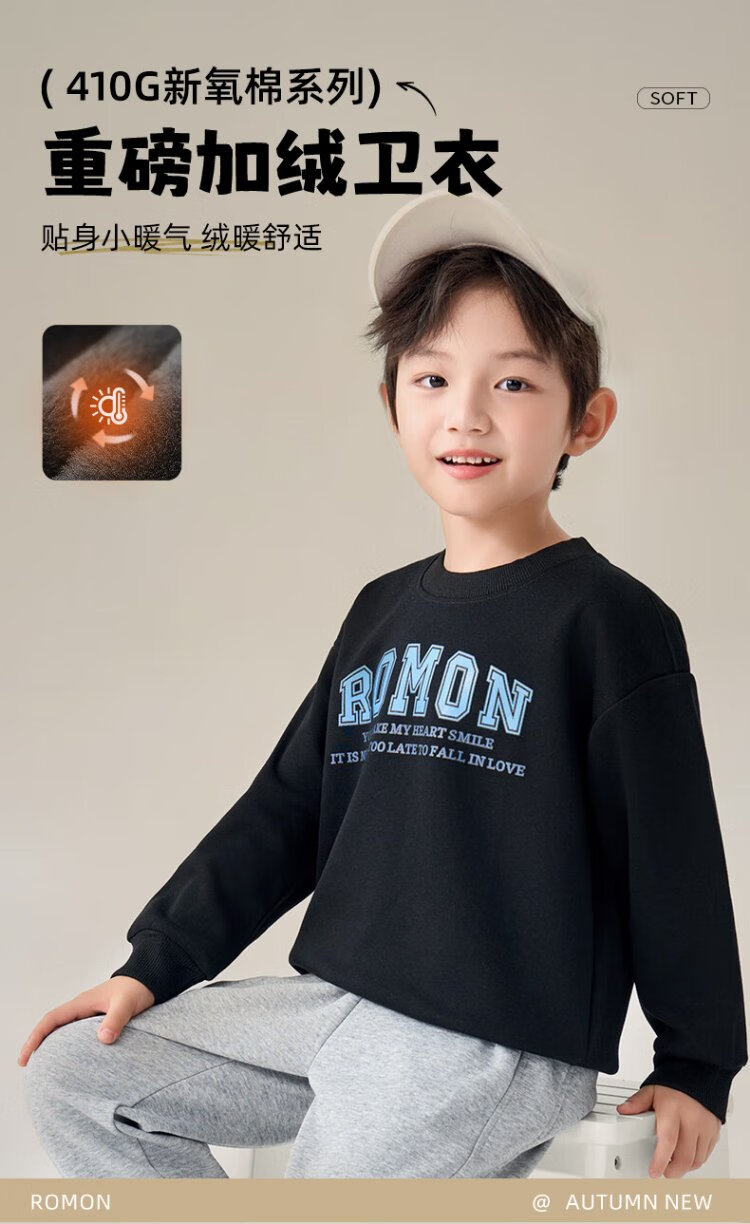 Romon children's sweatshirt spring style style tops for boys and girls, big boys and girls, versatile fashionable casual sportswear black 140