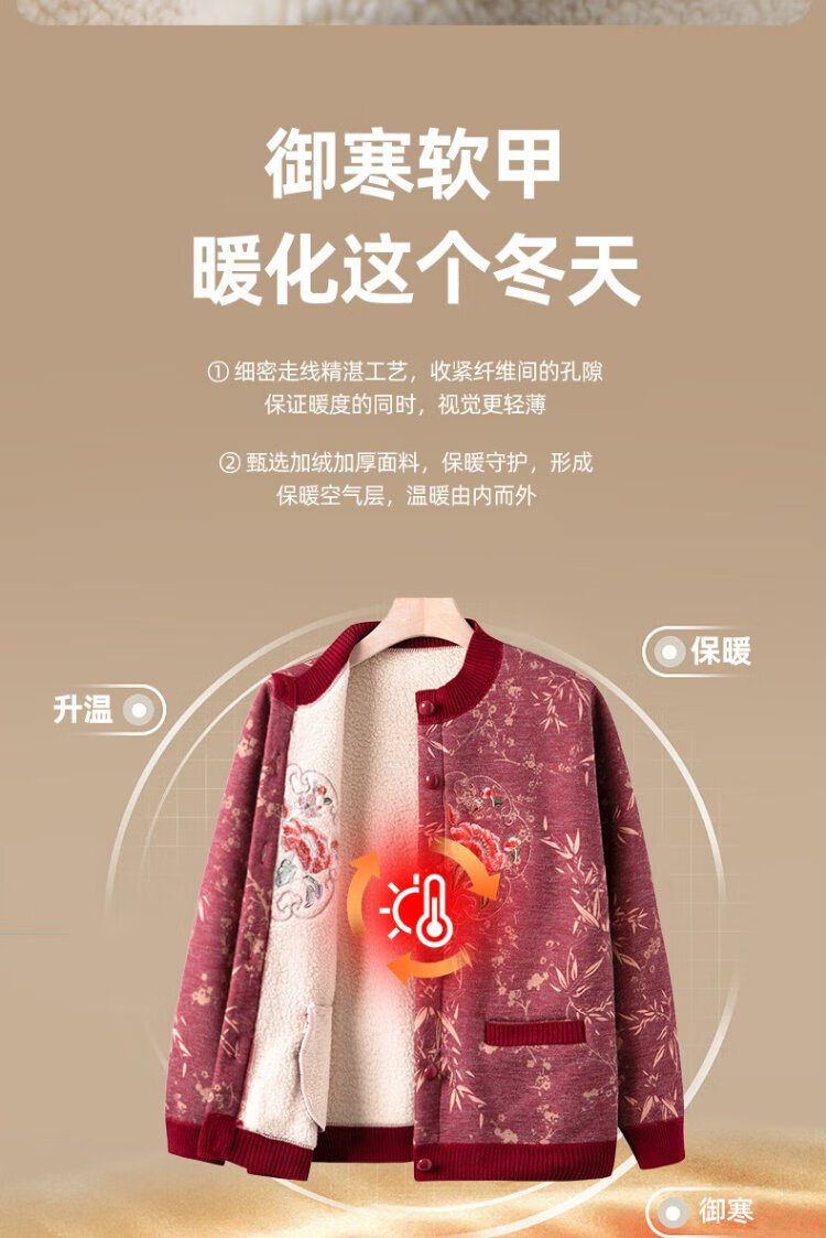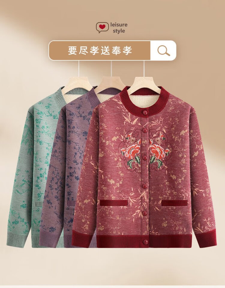Fengxiao elderly mother's autumn and winter coat 2024 new middle-aged and elderly women's winter 60-year-old and 70-year-old lady's tops with velvet to keep warm
