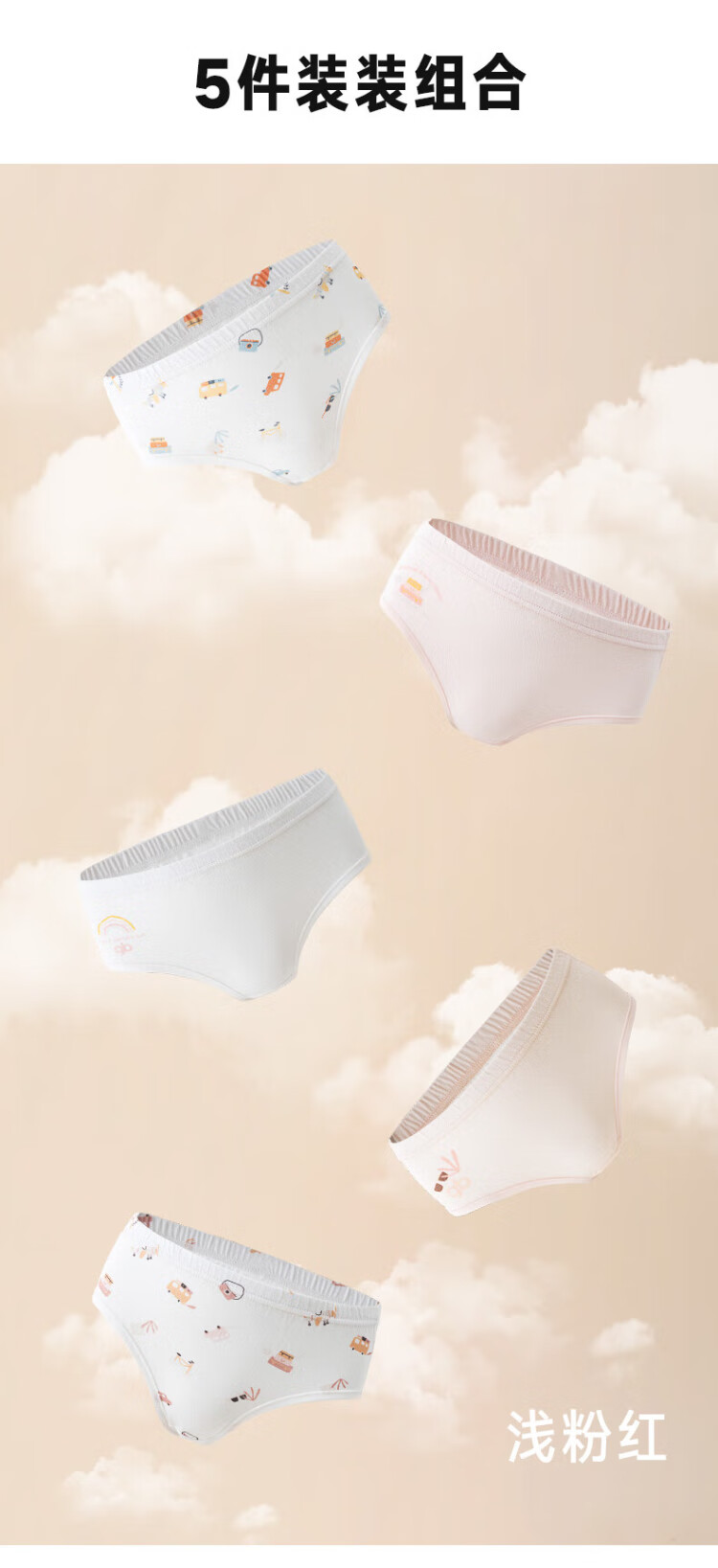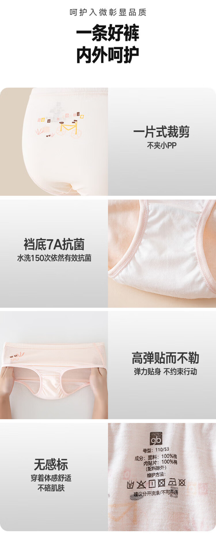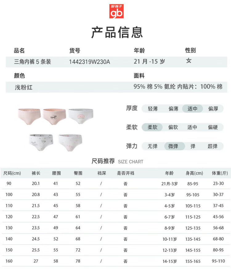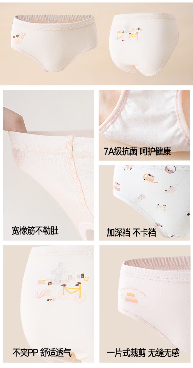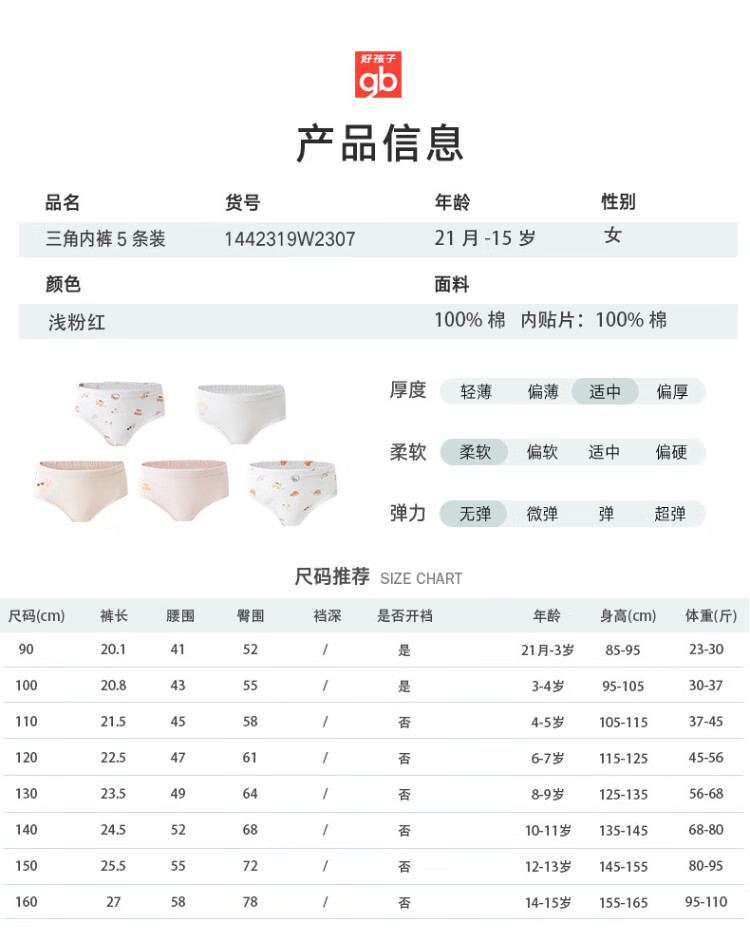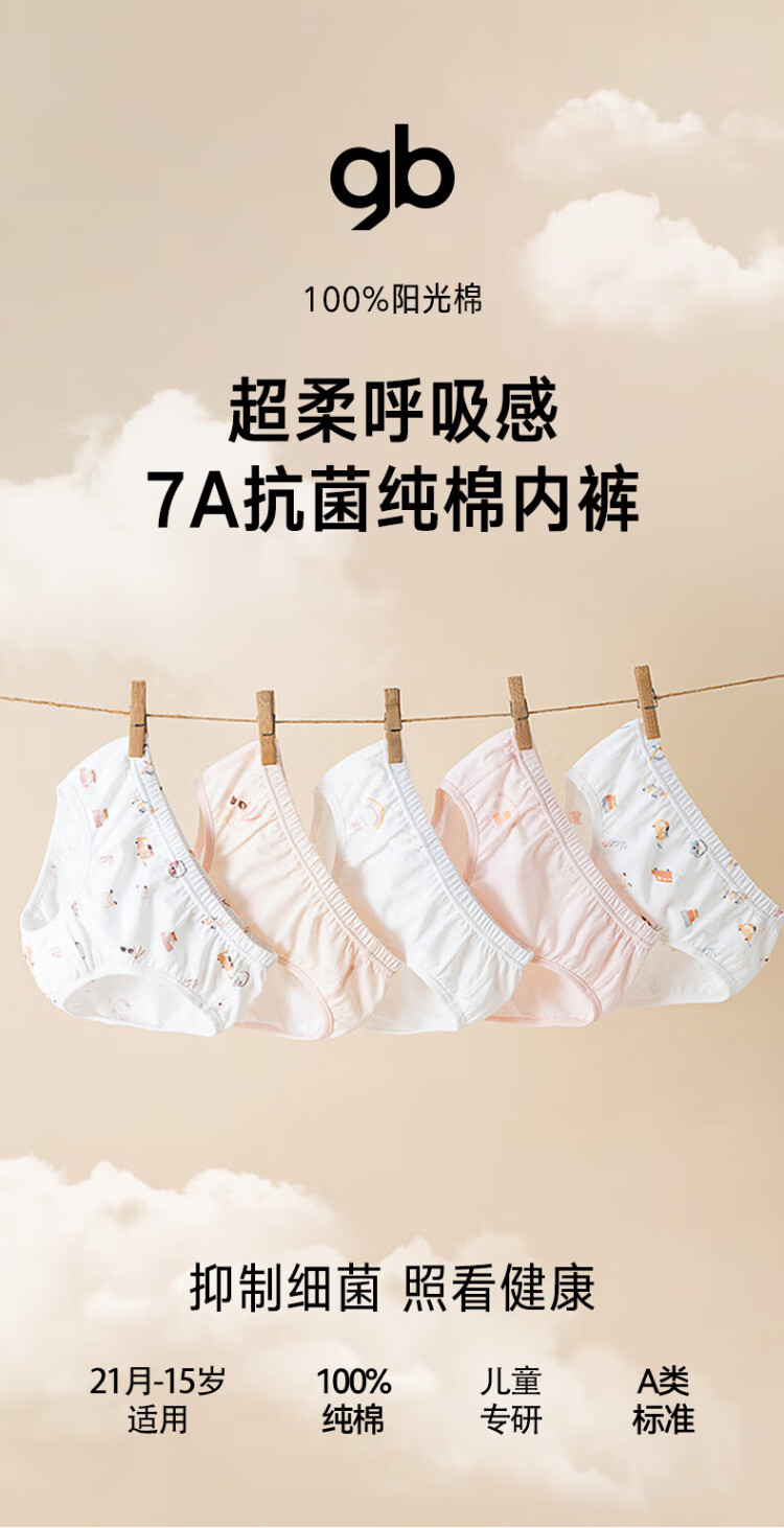 Goodbaby girls' pure cotton underwear, girls' lightweight type A briefs, girls' summer 7A antibacterial underwear, 5-pack