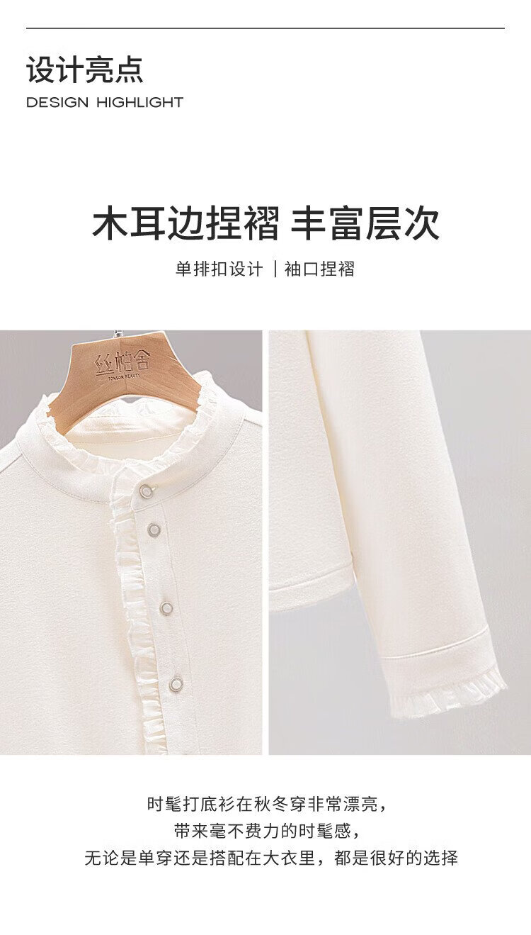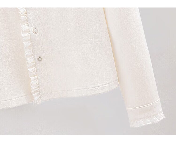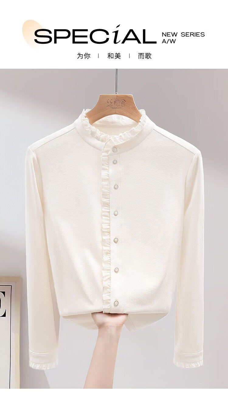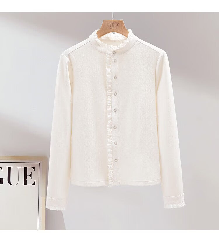 Cypress ear-hemmed bottoming shirt 2026 spring new women's simple commuting single-breasted long-sleeved T-shirt