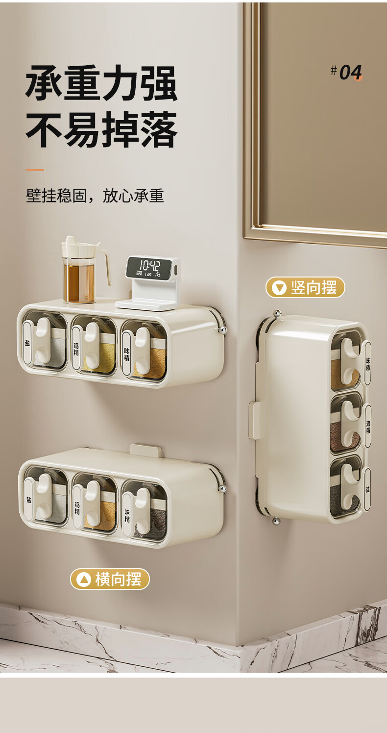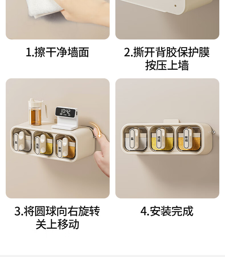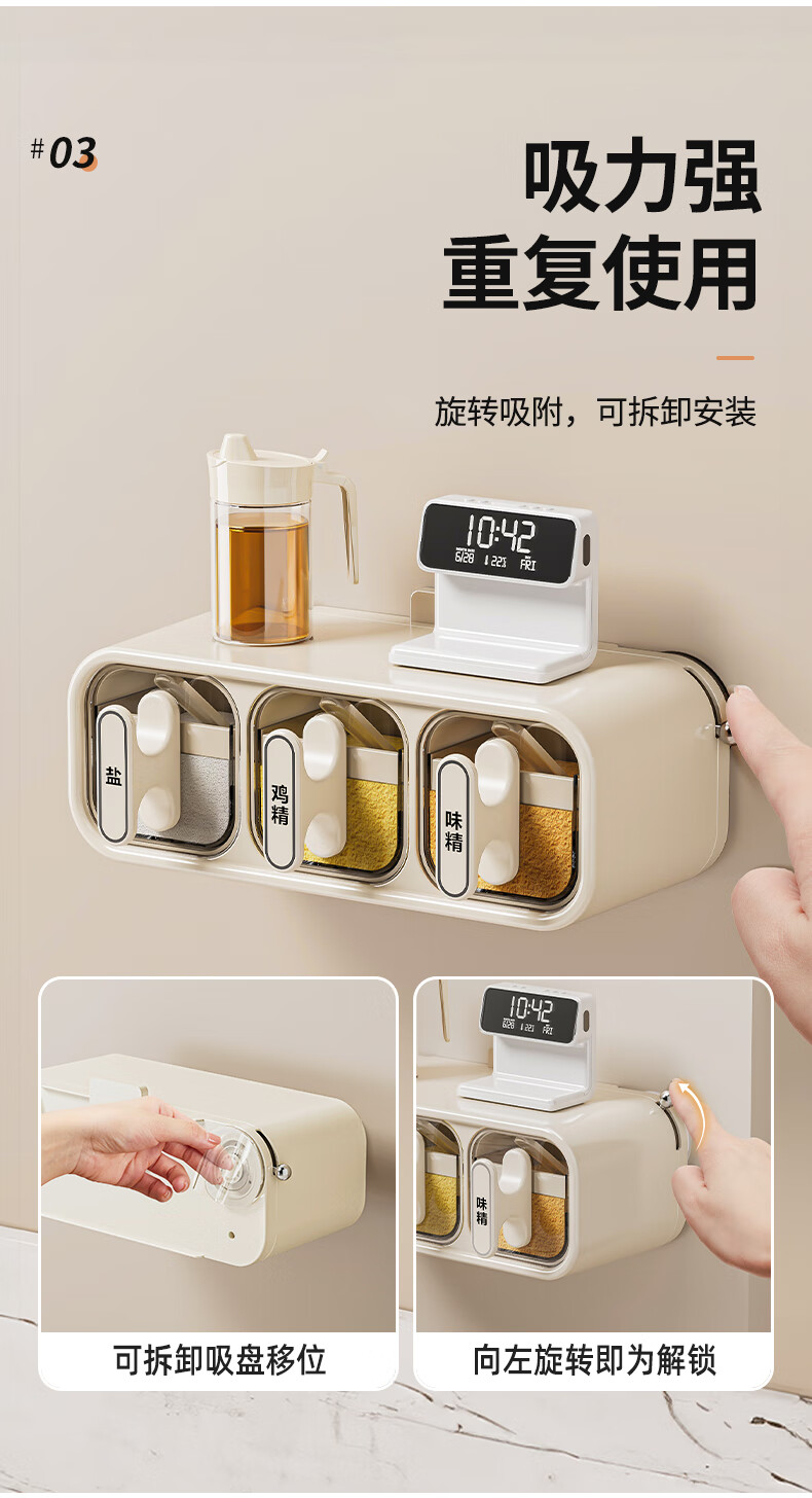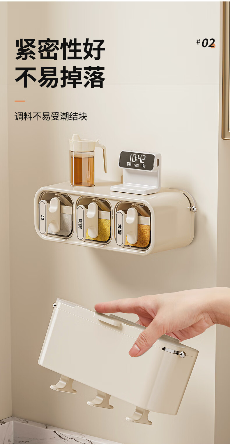 Added suction cup seasoning box wall-mounted seasoning jar kitchen household set moisture-proof salt jar seasoning storage box