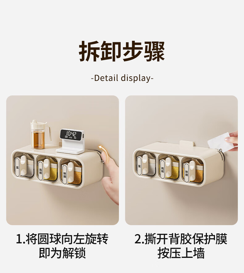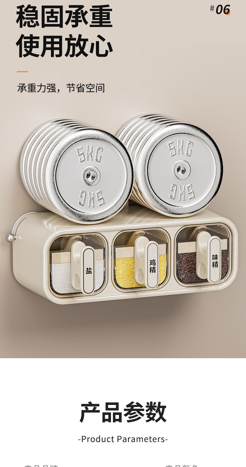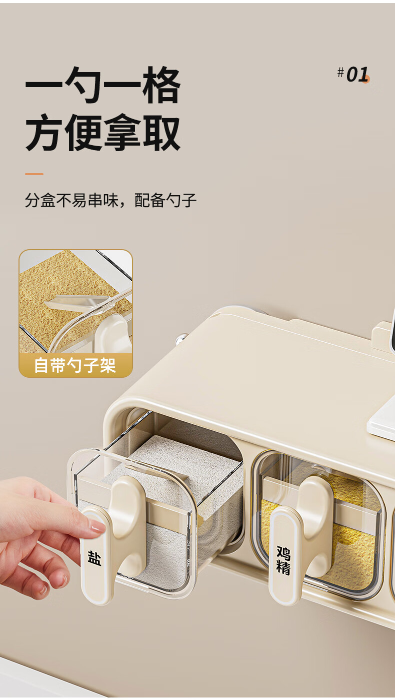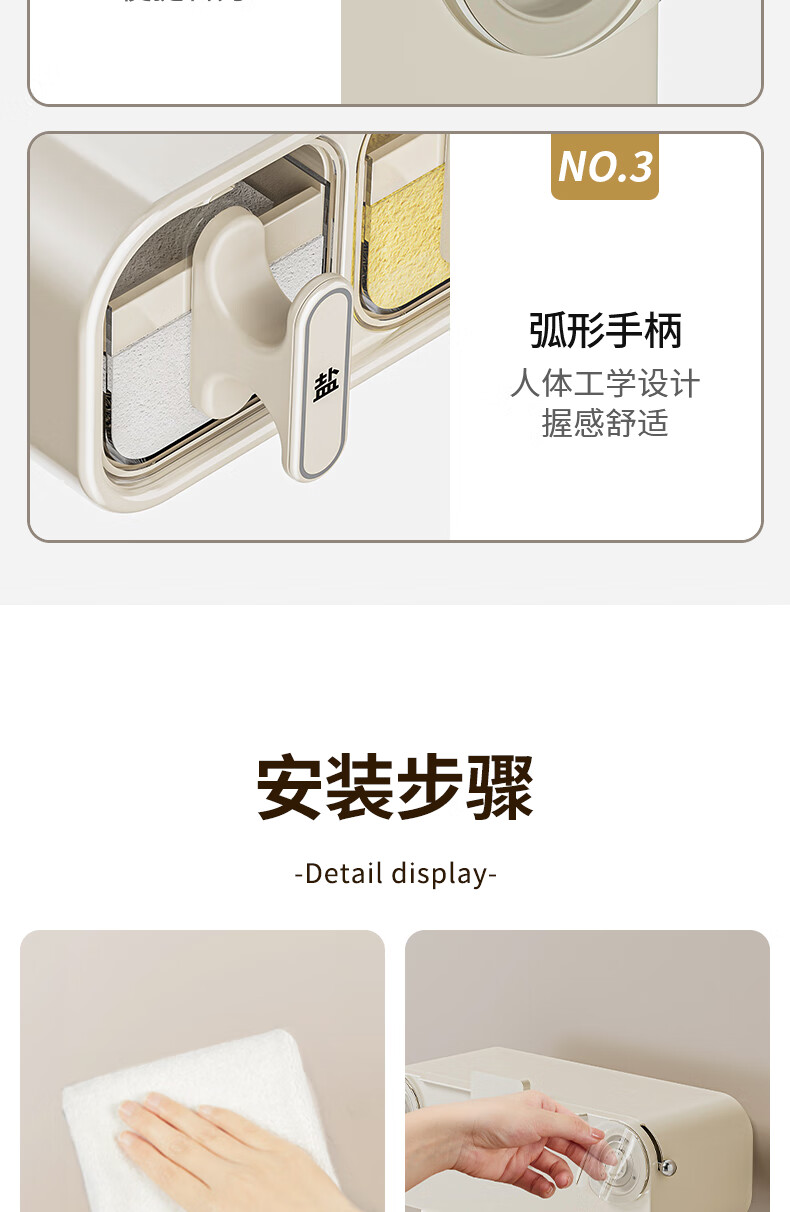 Added suction cup seasoning box wall-mounted seasoning jar kitchen household set moisture-proof salt jar seasoning storage box