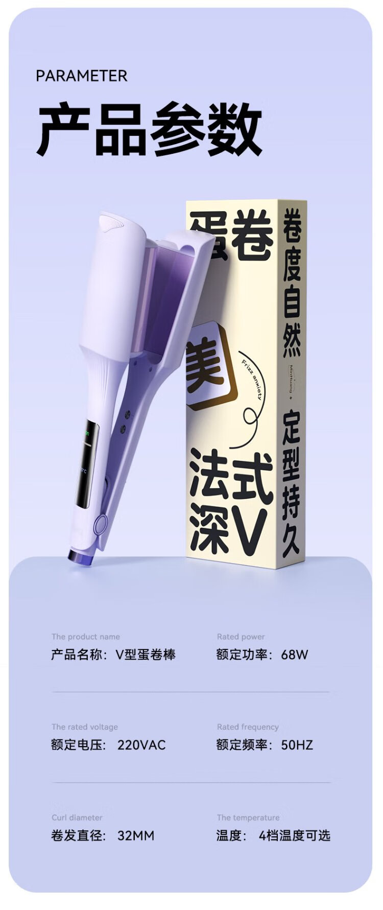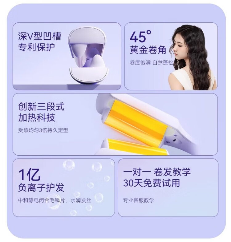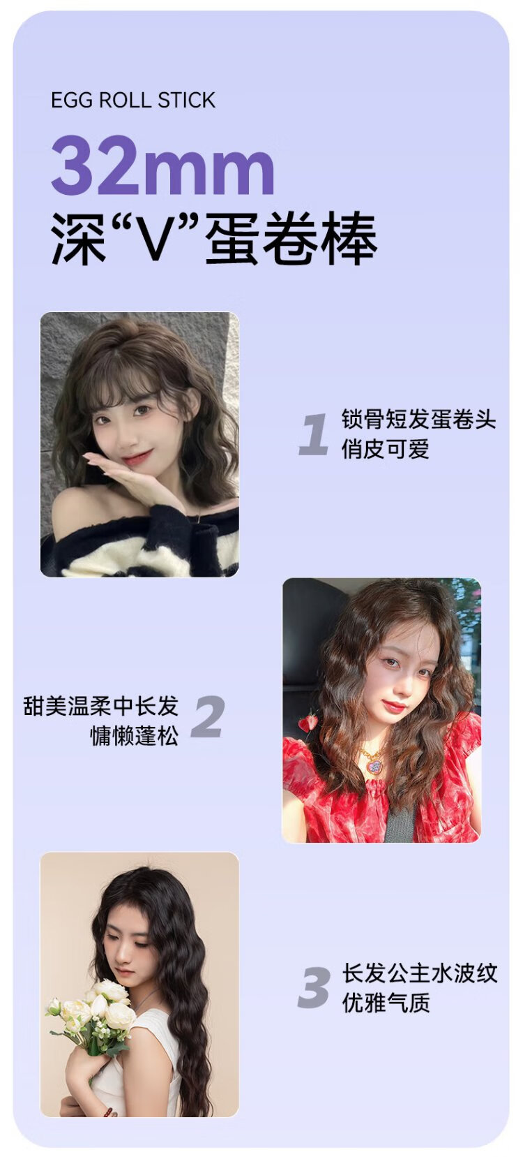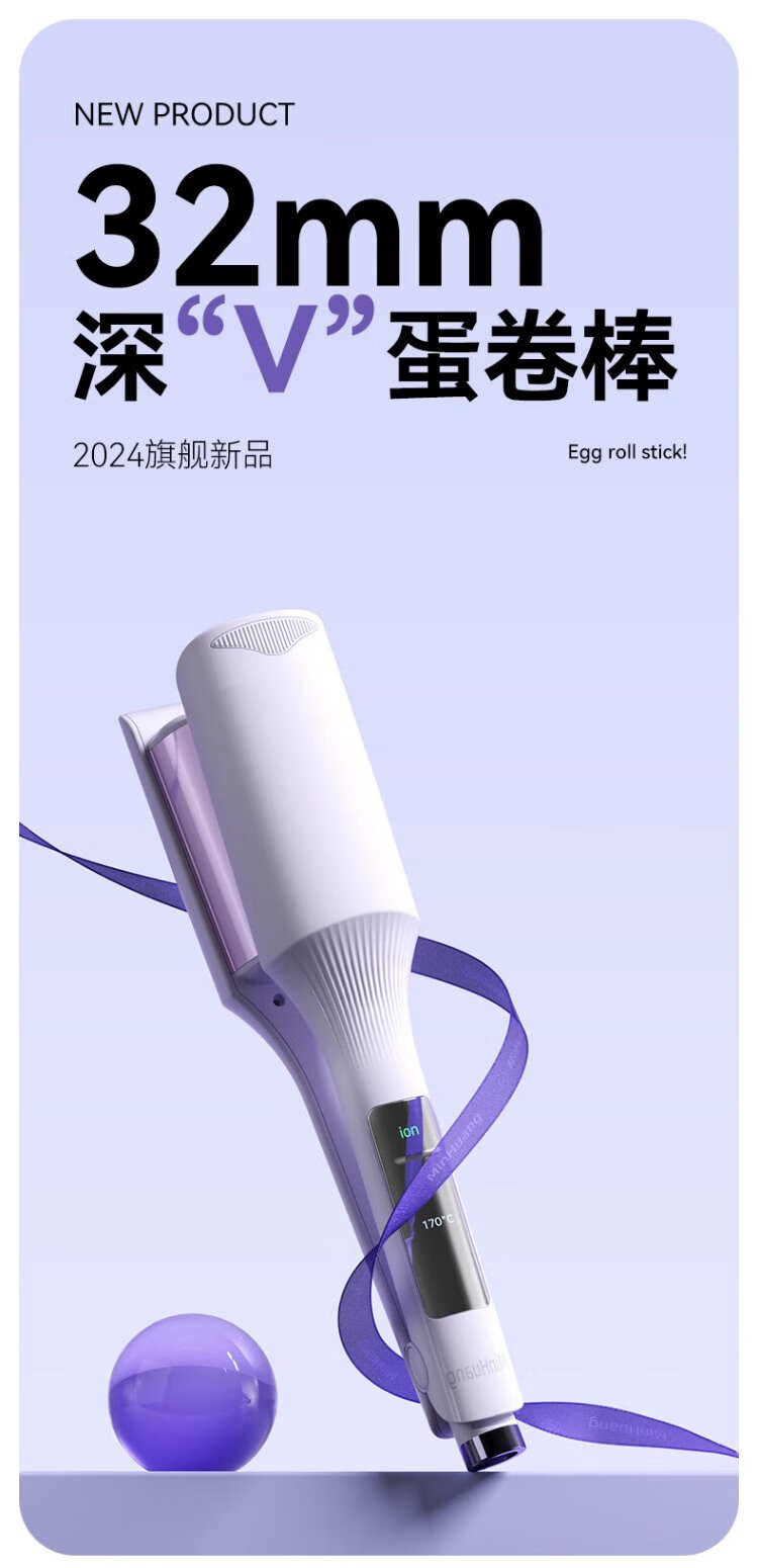 MinHuang (MinHuang) 32MM deep V egg roll iron negative ion curling iron French egg roll egg roll curling iron egg roll VI purple