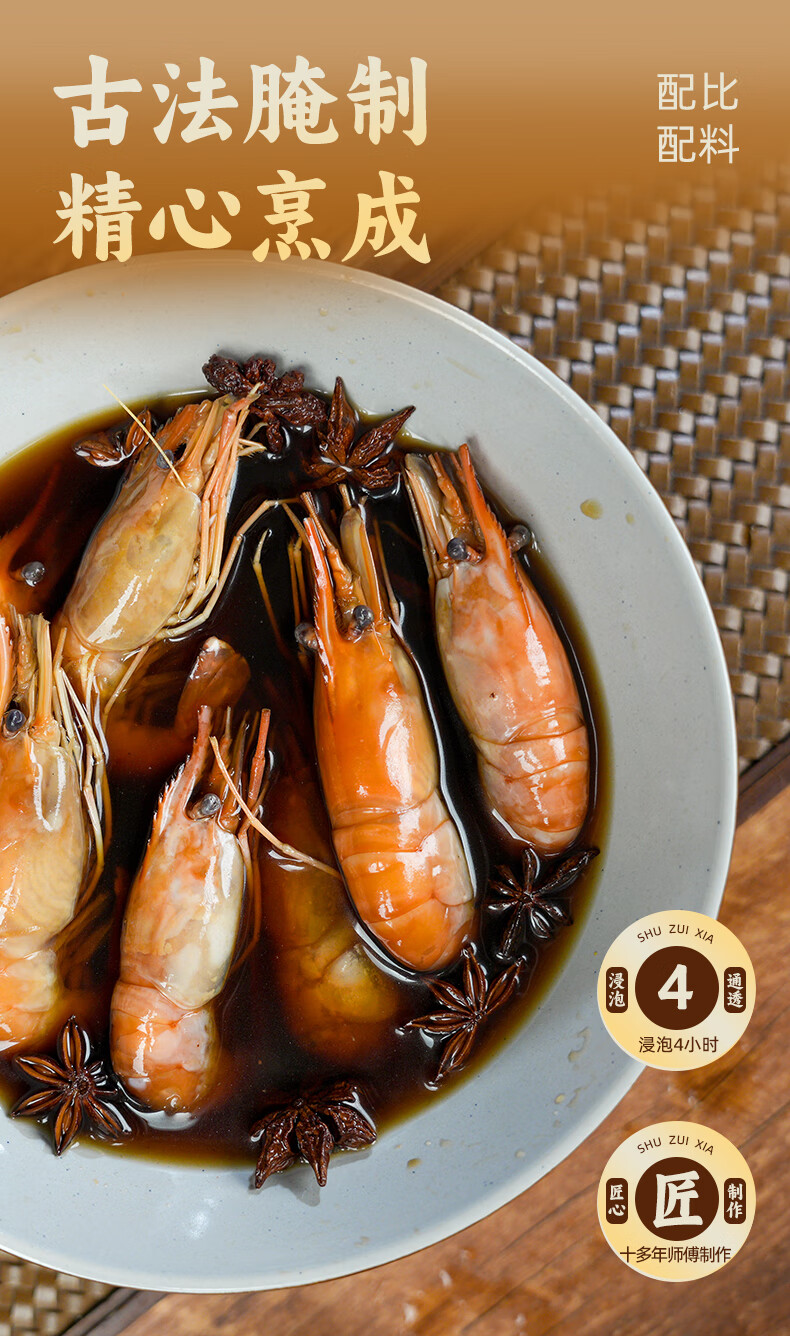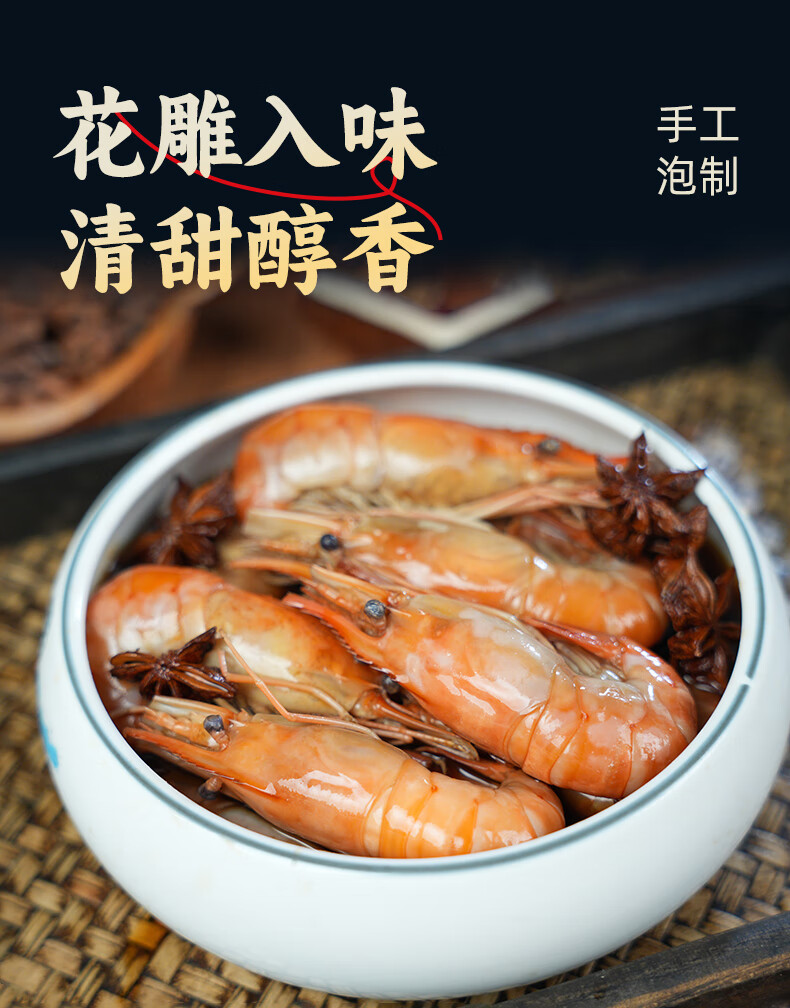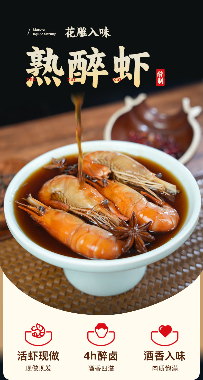 Go to Fresh Kee Cooked Drunken Macrobrachium rosenbergii, Ready-to-Eat Drunken Sweet Shrimp, Non-raw Pickled Frozen Camping Ingredients 13-16 pieces/box 600g