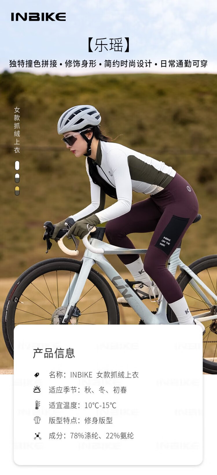 INBIKE windproof cycling jacket fleece warm autumn and winter long-sleeved women's top road mountain bike stone green M
