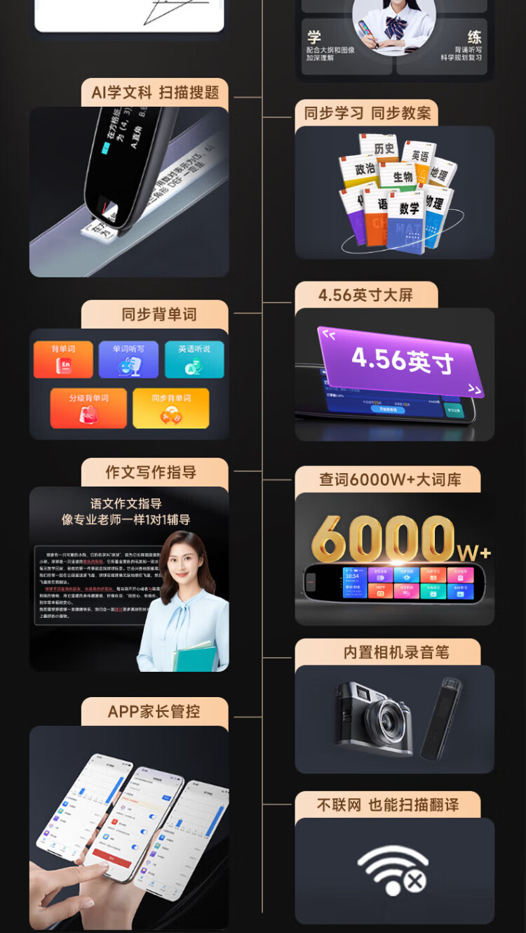 Haojixing English reading pen 4.56-inch large screen learning machine scanning dictionary translation pen universal synchronous textbook for all subjects primary school junior high school high school offline