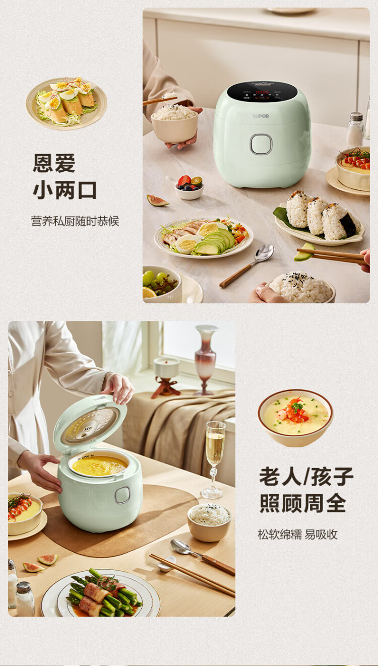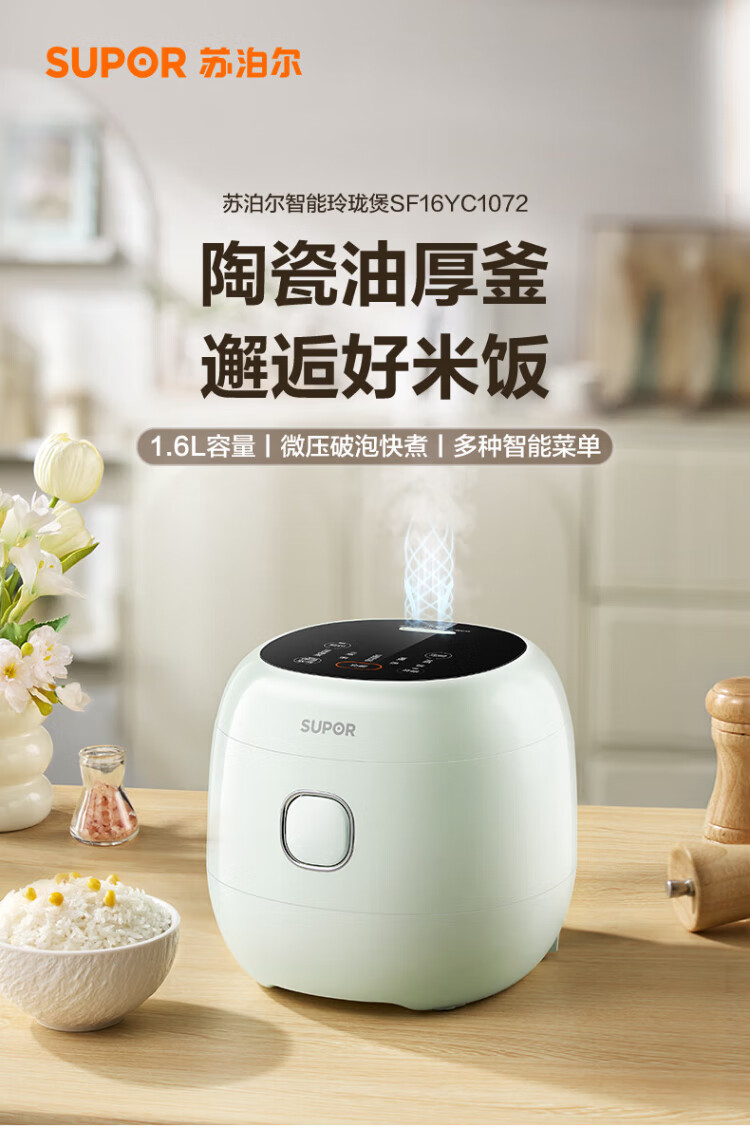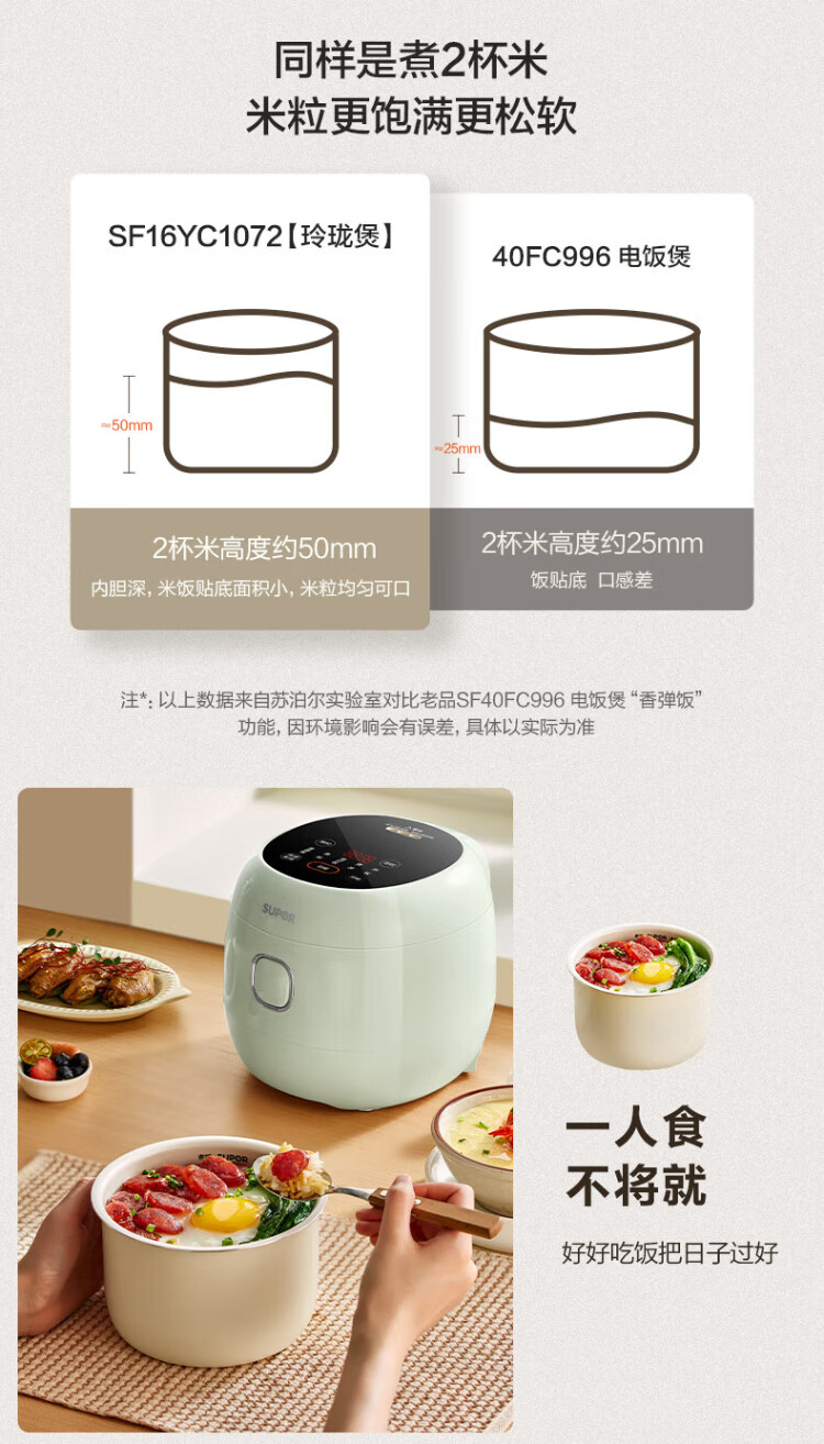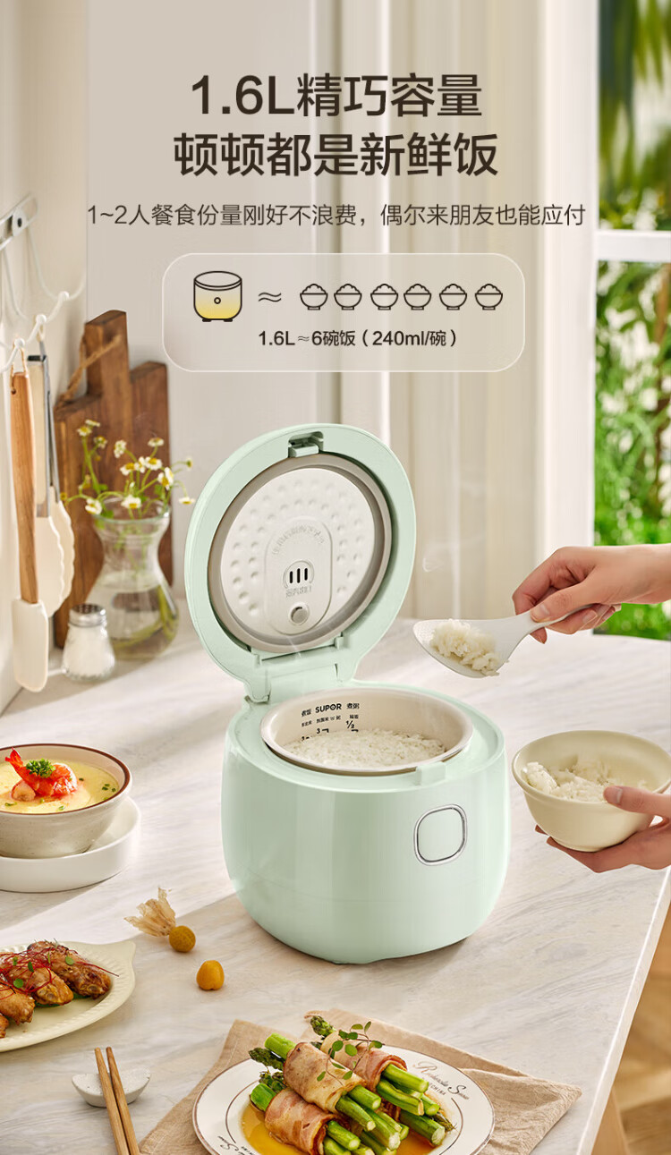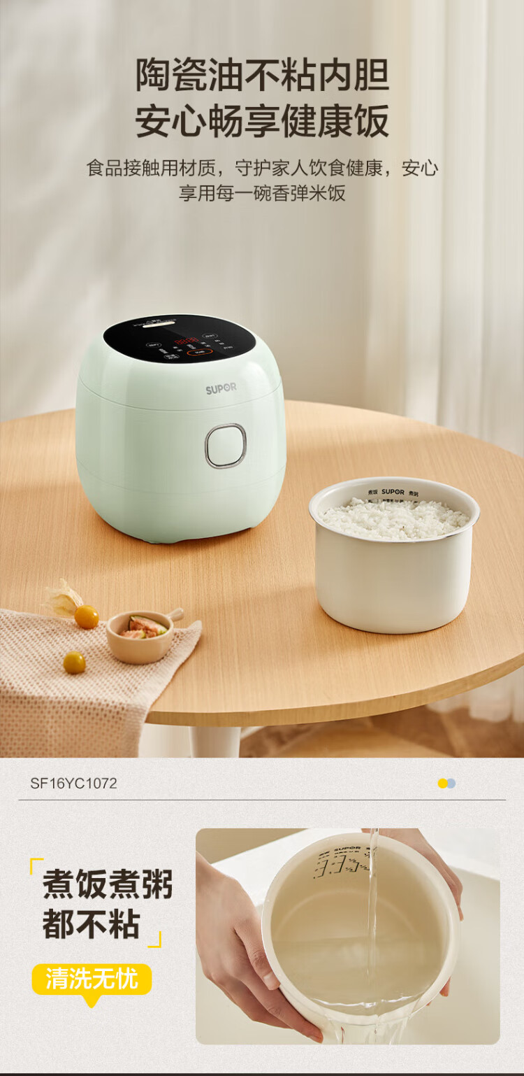 SUPOR small rice cooker 1.6 liters ceramic inner pot rice cooker 1-2 people dormitory small electric cooker household non-stick cooker smart multi-function mini micro-pressure rice cooker SF16YC1072
