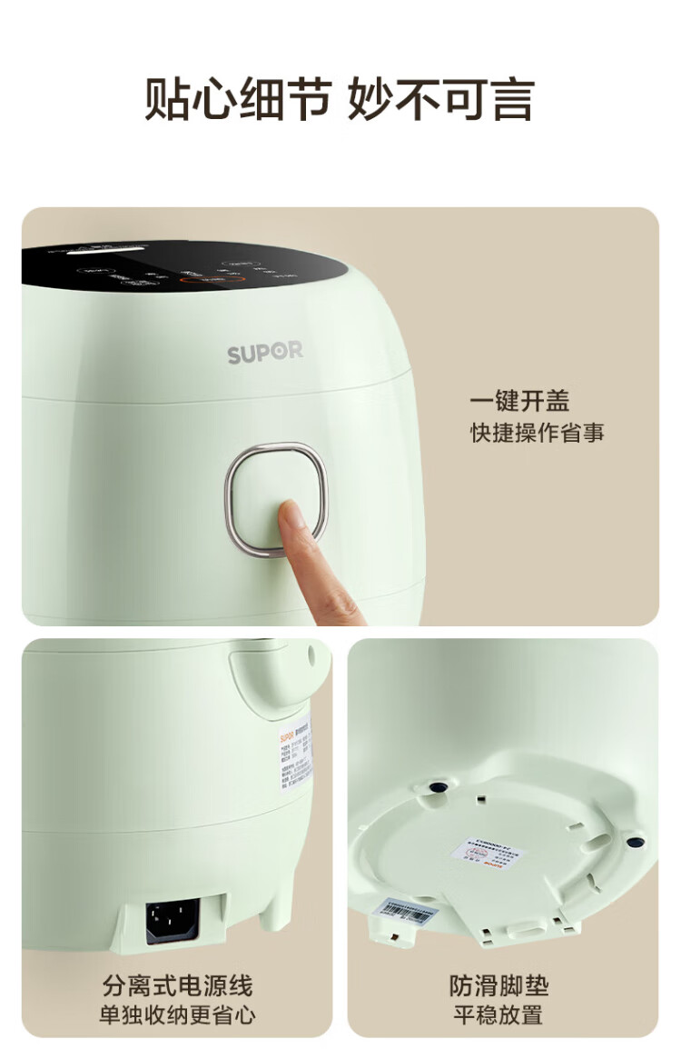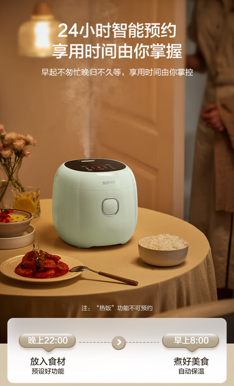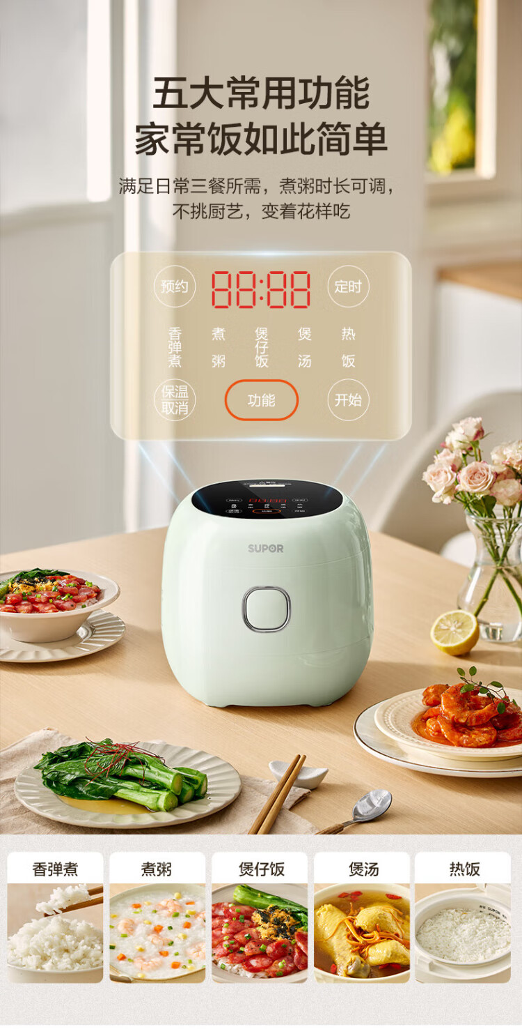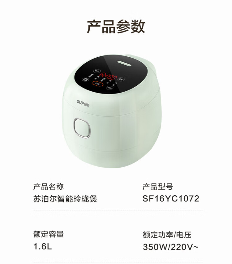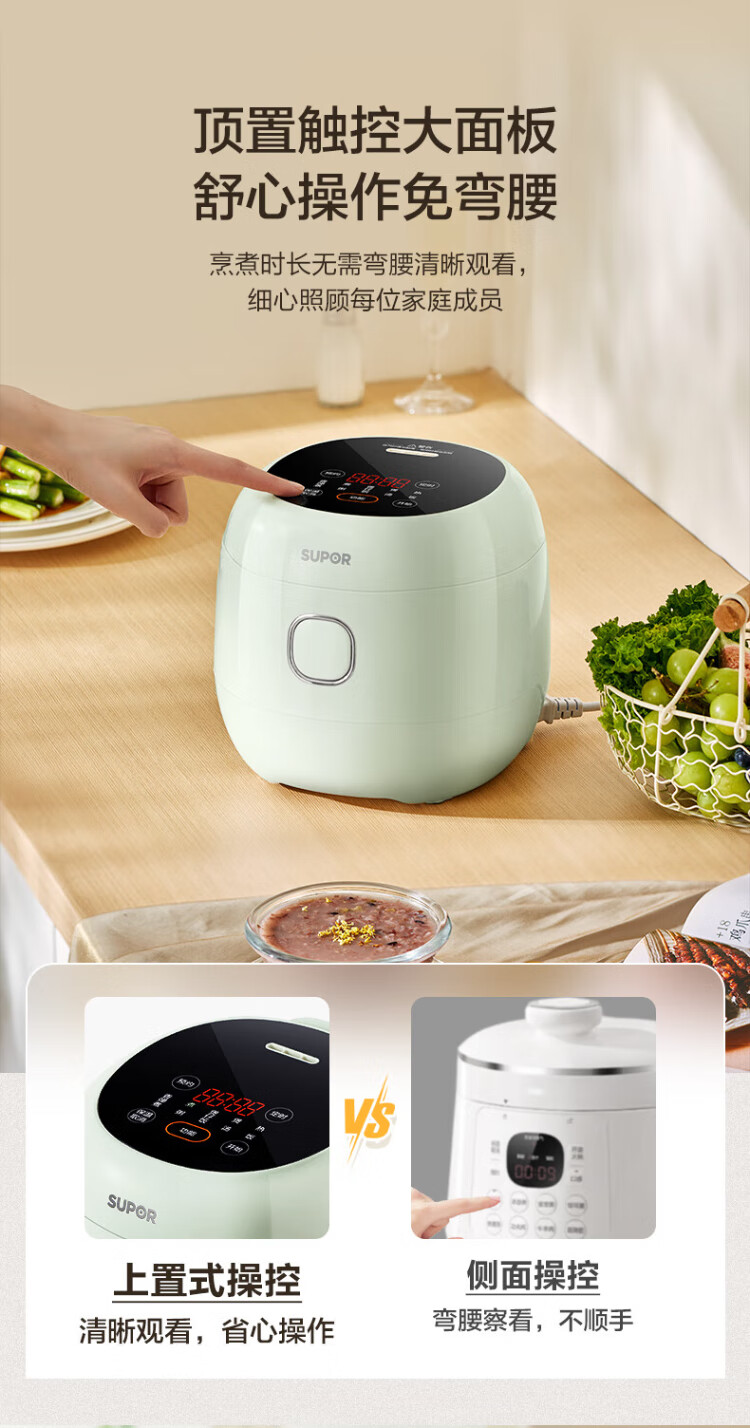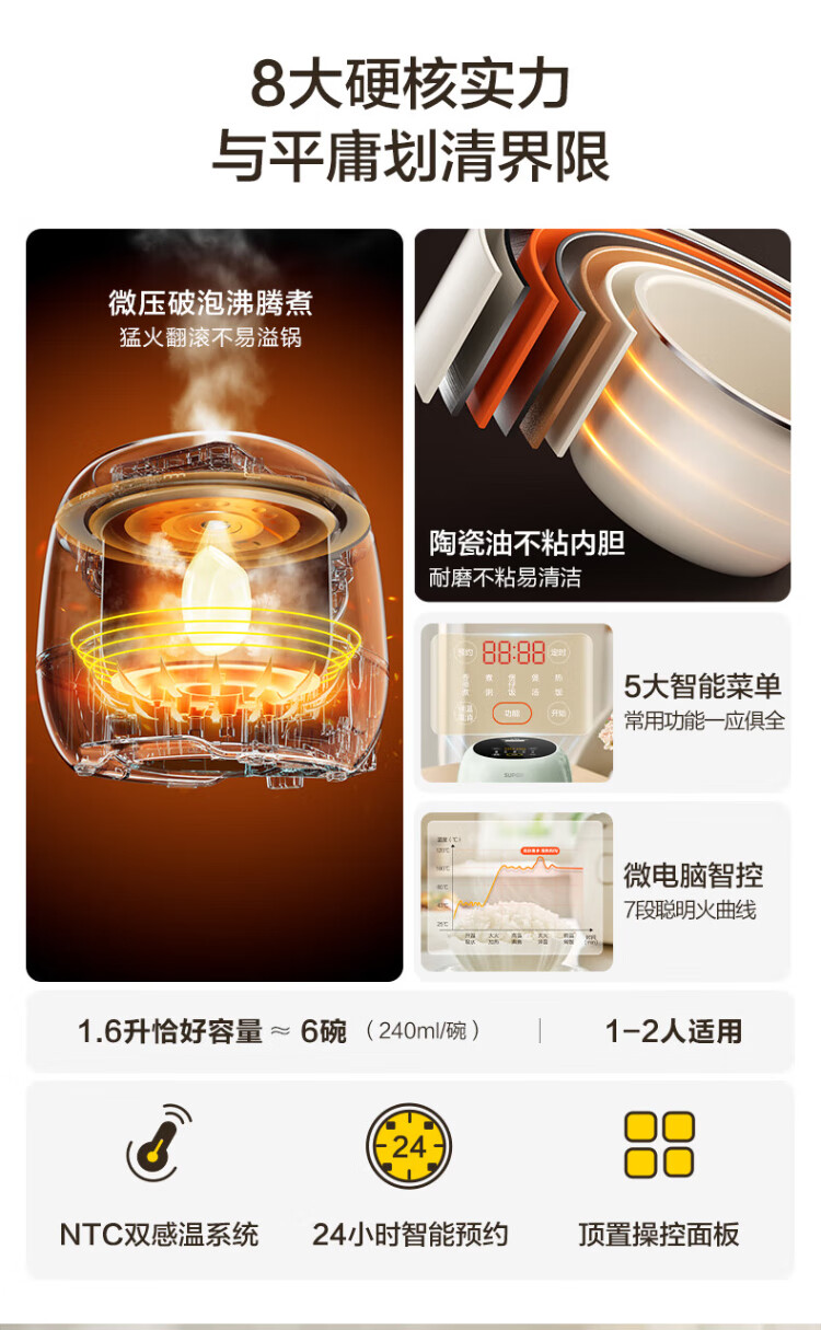 SUPOR small rice cooker 1.6 liters ceramic inner pot rice cooker 1-2 people dormitory small electric cooker household non-stick cooker smart multi-function mini micro-pressure rice cooker SF16YC1072