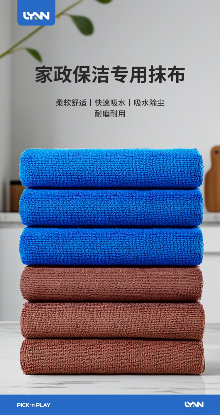 LYNN rags, car wash towels, housekeeping cleaning rags 30*30cm, 6 glass rags