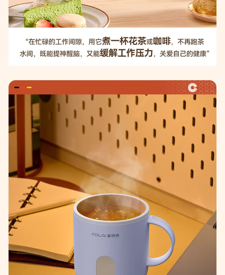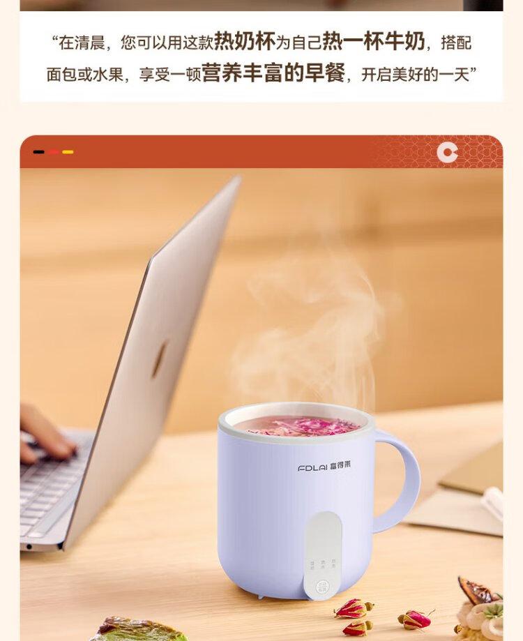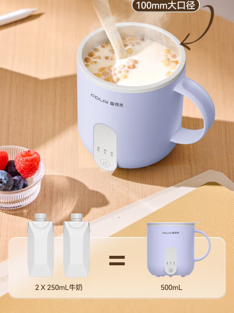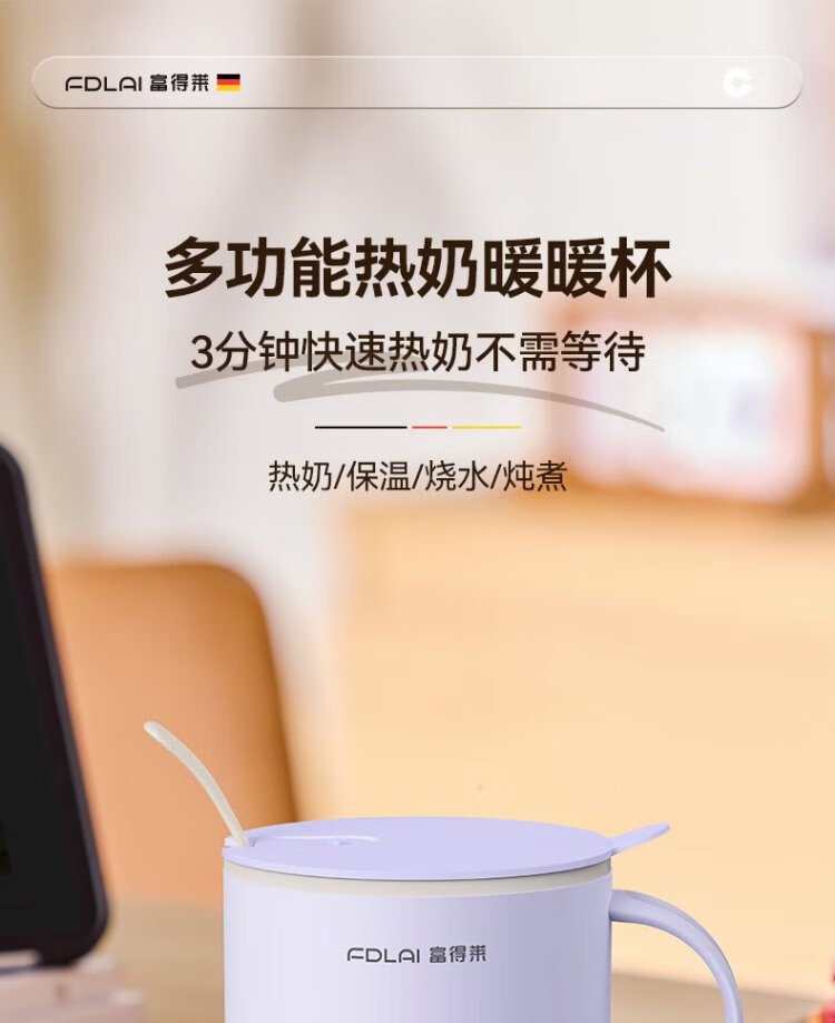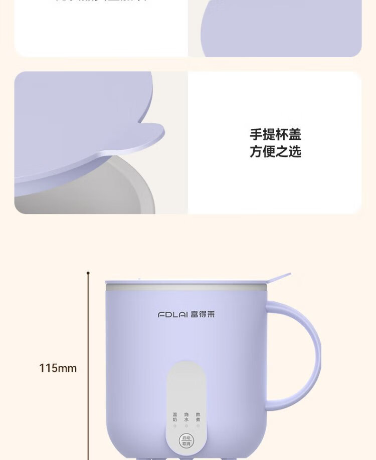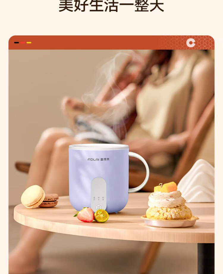 Fudelai health pot, hot milk cup, mini fully automatic constant temperature for one person, office stew, boiling water and tea all-in-one machine, heating and warming cup artifact, purple 0.5L