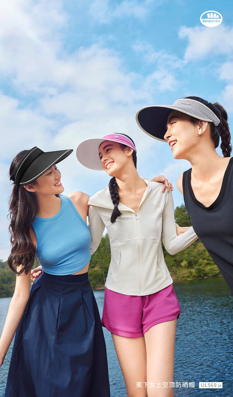Beneunder sun protection hat women's vinyl empty top hat sun hat anti-UV face-covering sun hat BM569 black