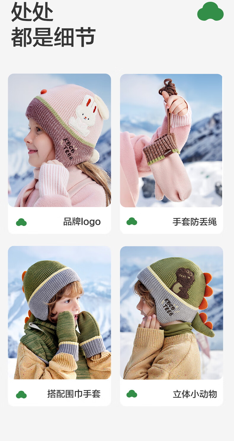 Kocotreekk tree children's hat heated and warm autumn and winter boys and girls knitted wool baby ear protection hat