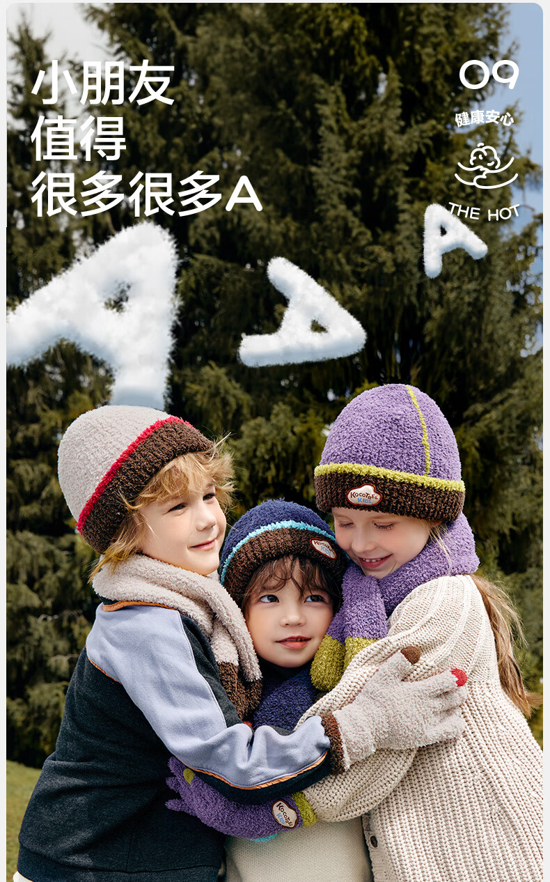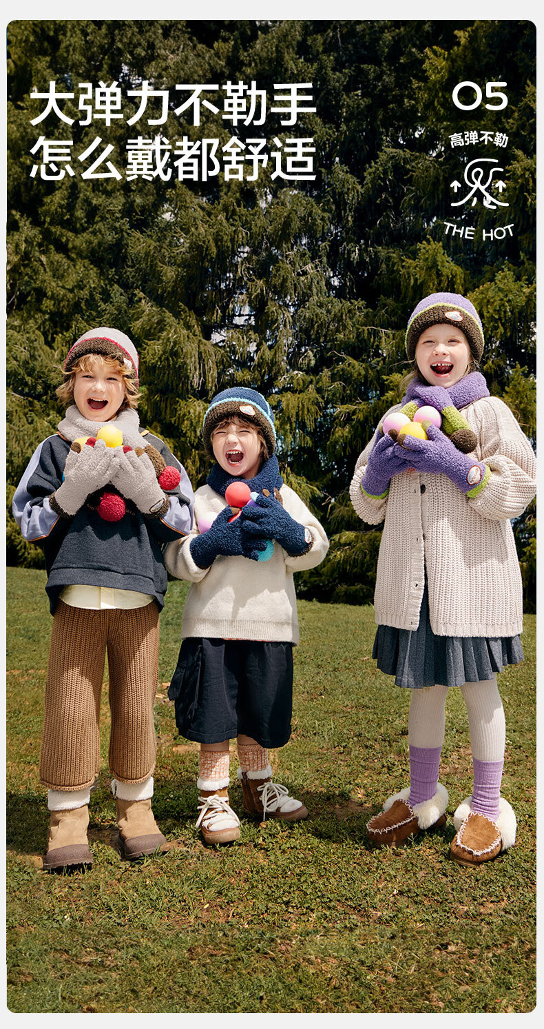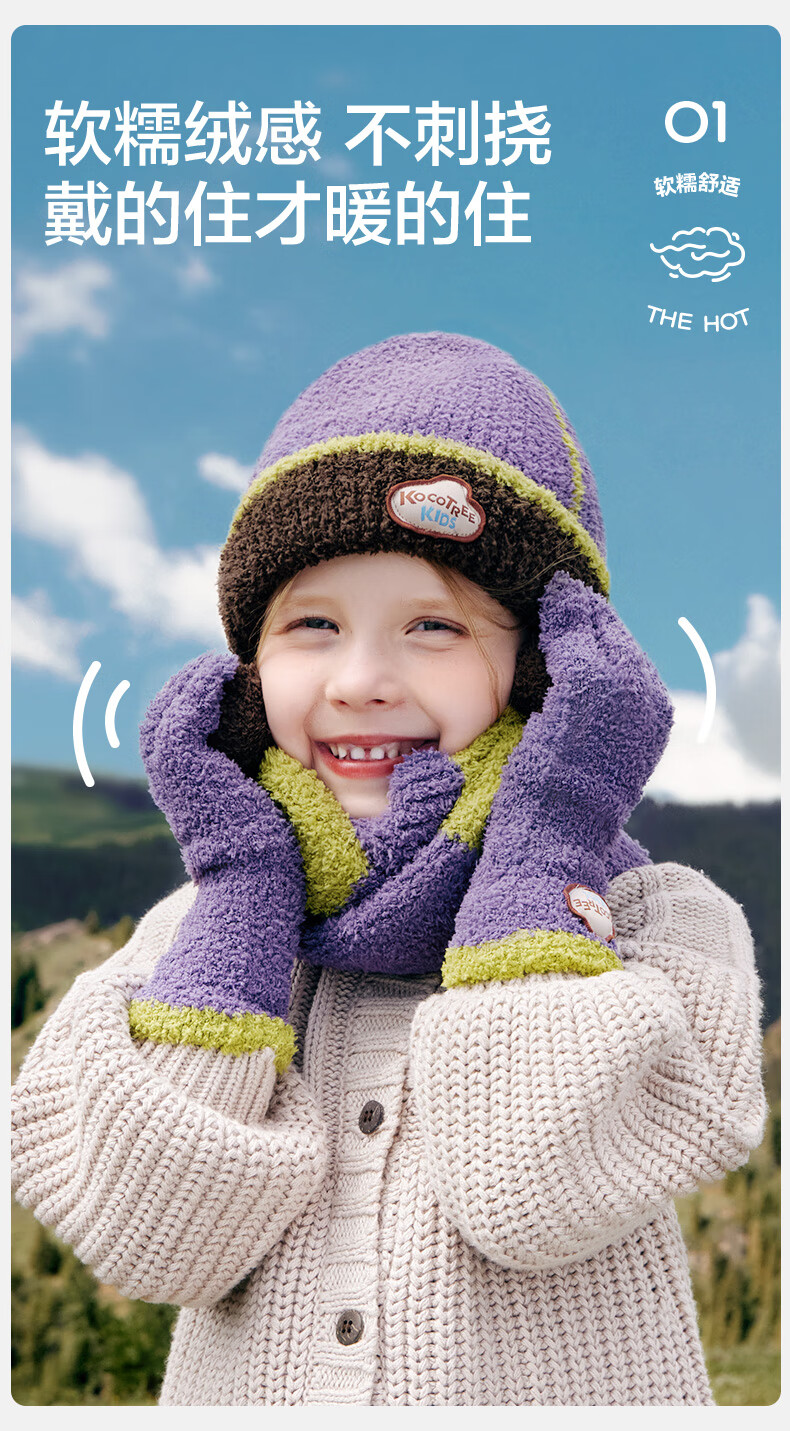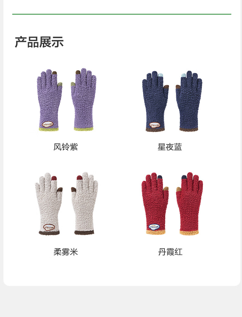 Kocotree New Year's gift kk tree children's gloves warm plus velvet thickened soft waxy color-blocked five-finger gloves touch screen blue