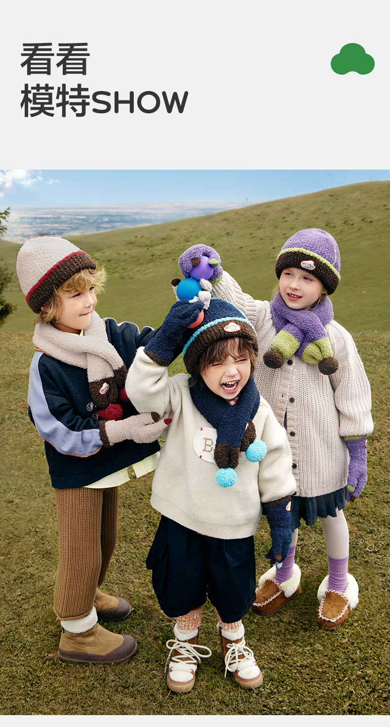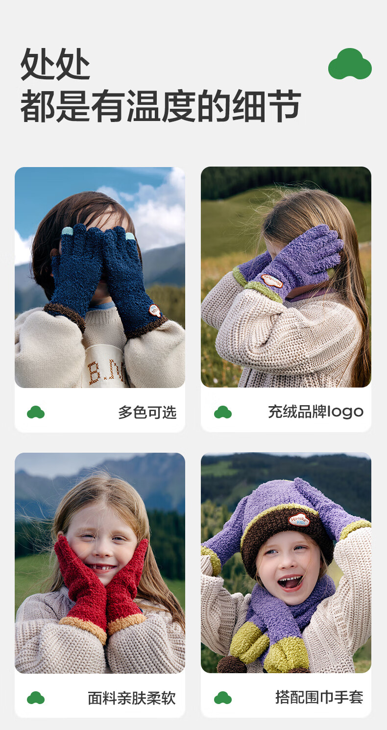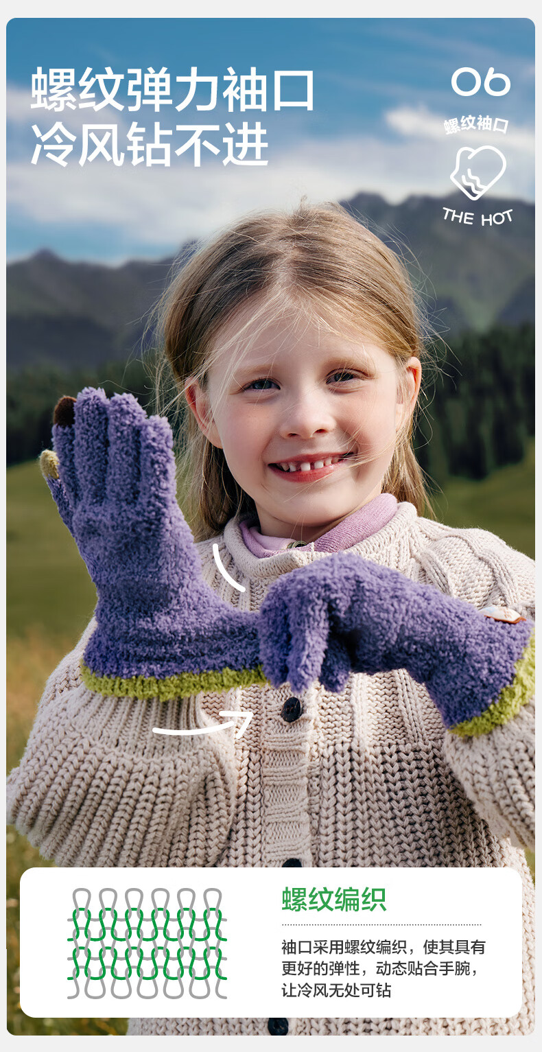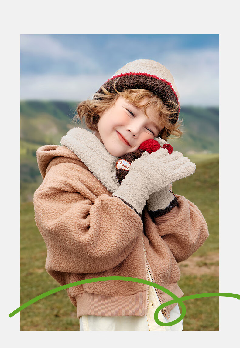 Kocotree New Year's gift kk tree children's gloves warm plus velvet thickened soft waxy color-blocked five-finger gloves touch screen blue
