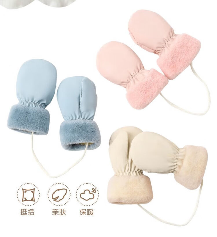 Nido Bear children's gloves baby plus velvet gloves boys and girls three-proof fabric gloves baby gloves winter