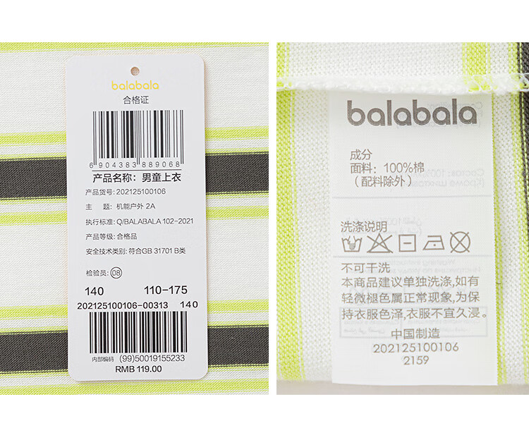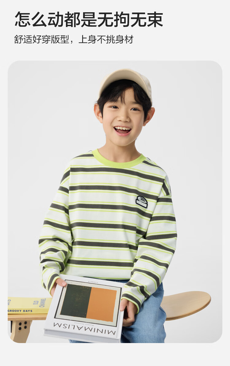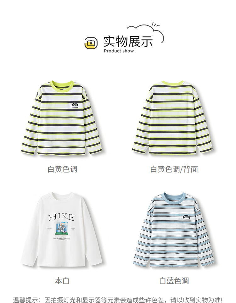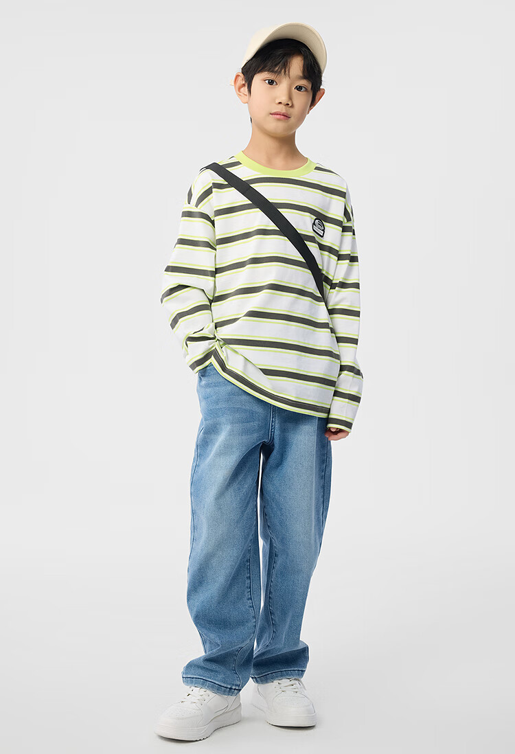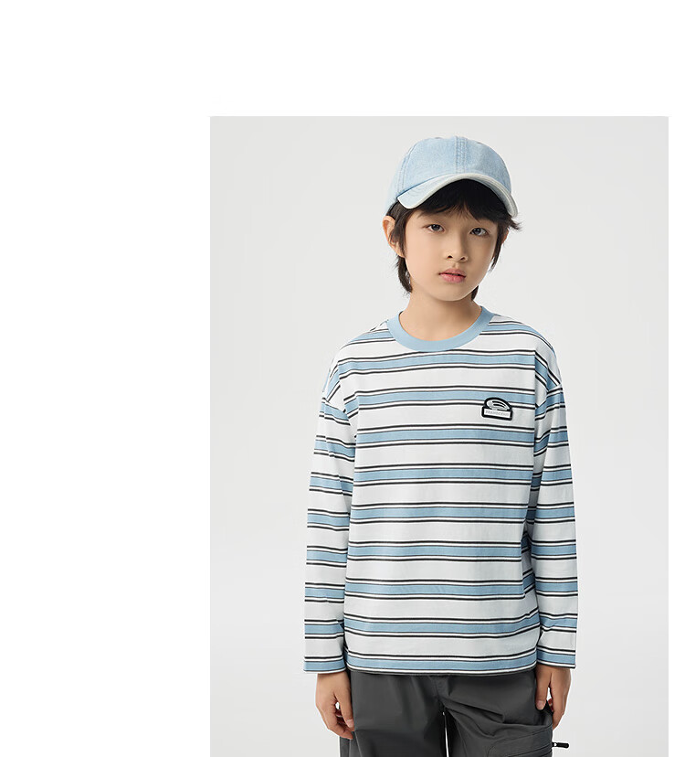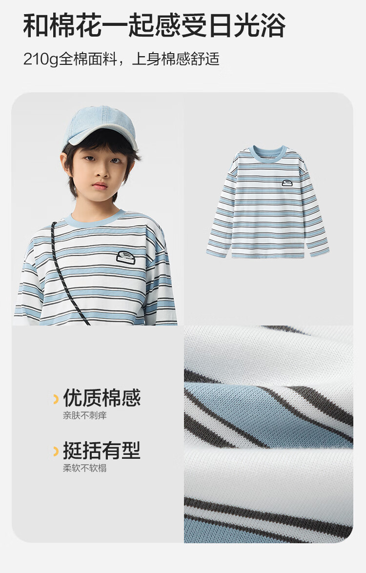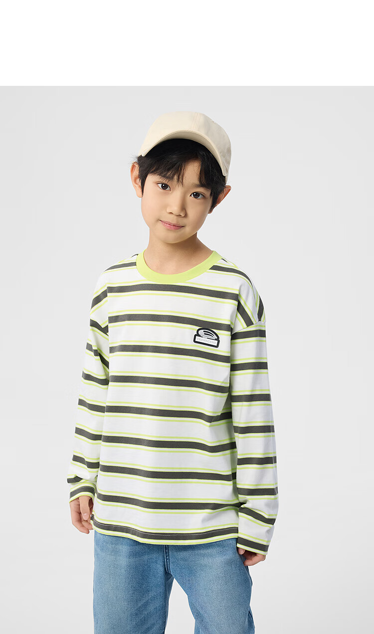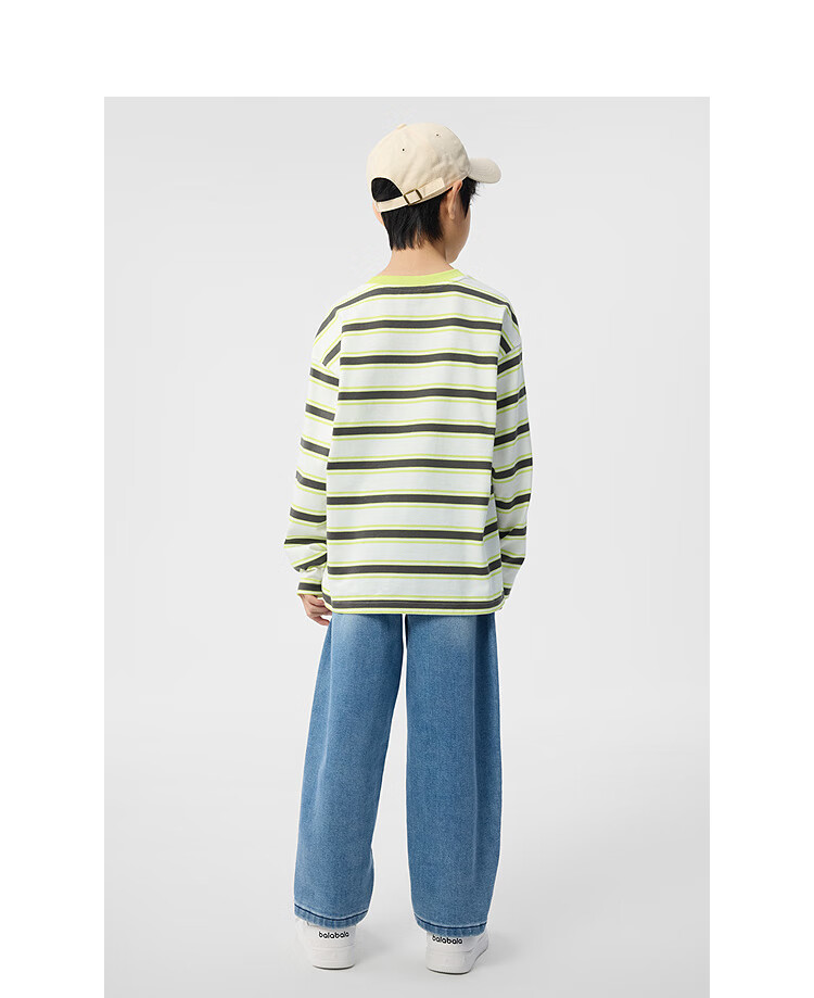 Balabala children's clothing boys' T-shirt children's 2025 spring new long-sleeved top striped shopping mall same style 202125100106