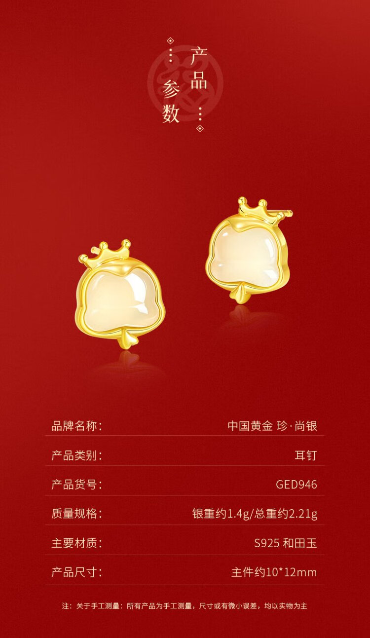 Zhen Shang Silver China Gold S925 Camellia Silver Earrings Women's Earrings Ornament Birthday Gift for Girlfriend Wife Mom