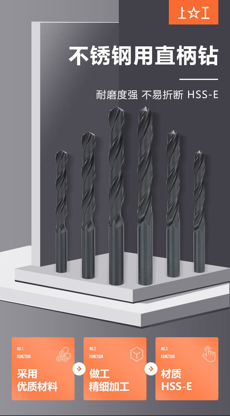 Shanggong 10-piece set of stainless steel special straight handle twist drill bits 4.2mm HSS-E cobalt-containing high-speed steel drill bits plum blossom drill bits