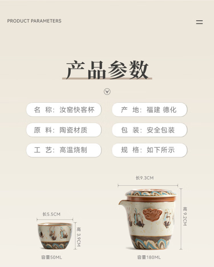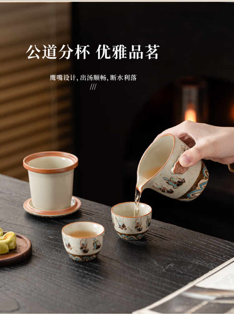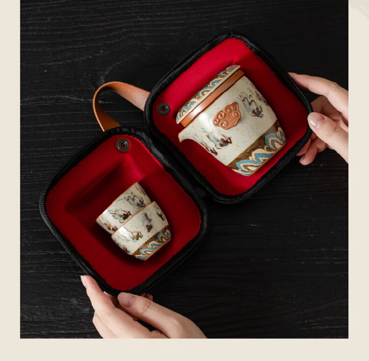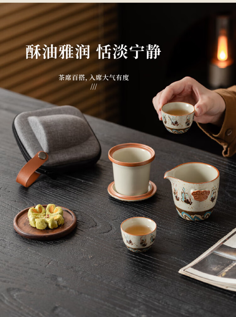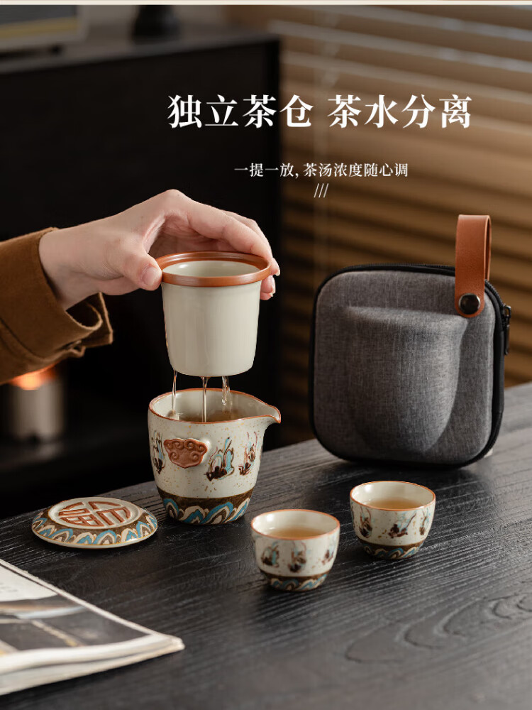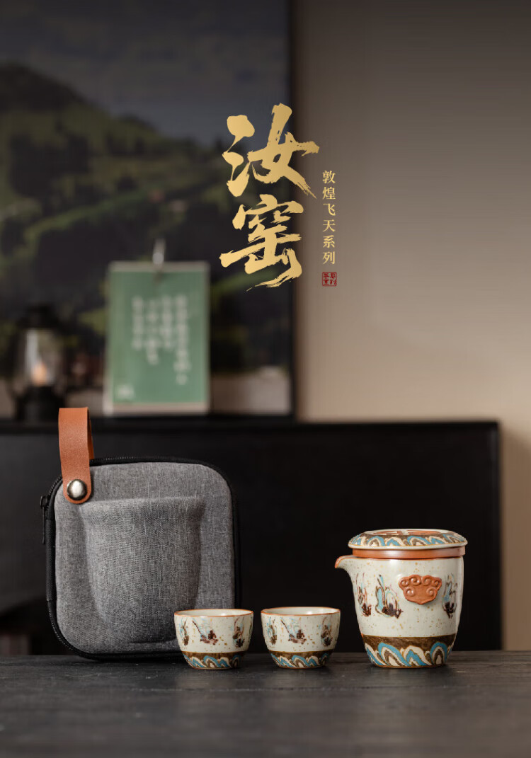 Xinyu Li Dunhuang Ru Kiln Travel Tea Set Portable Outdoor Quick Cup Ceramic Souvenir Men's Gift Souvenir