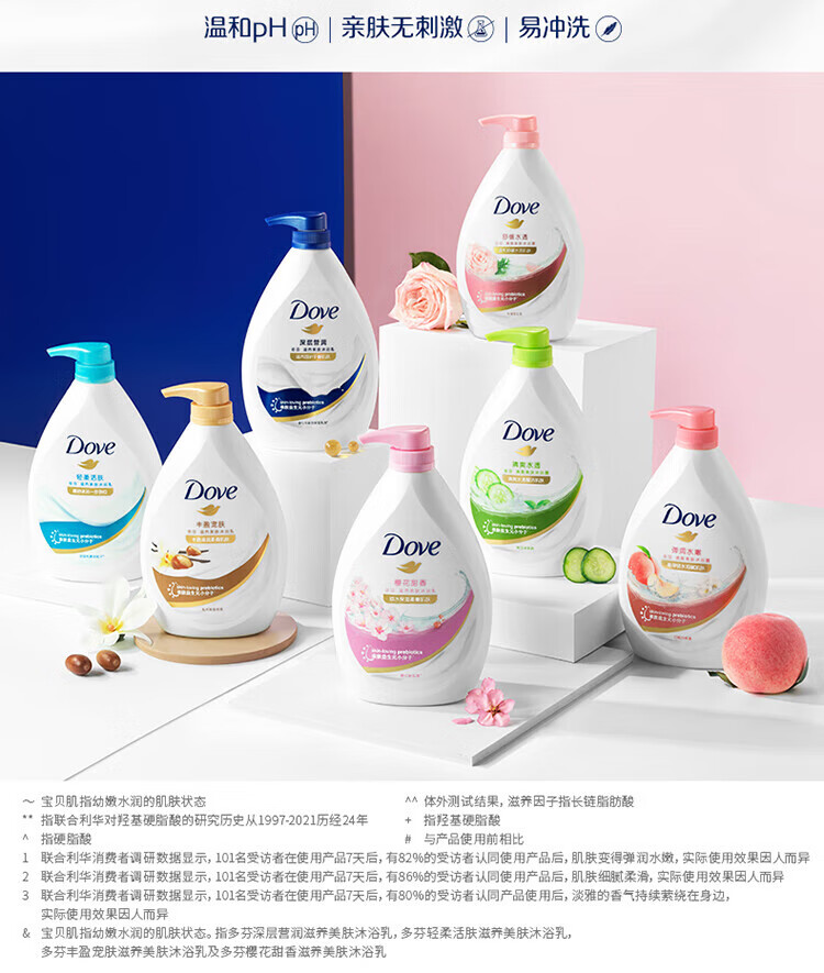 Dove Refreshing, Moisturizing and Beautifying Shower Gel 850g, Gentle Cleansing and Softening + Essence 100g*1