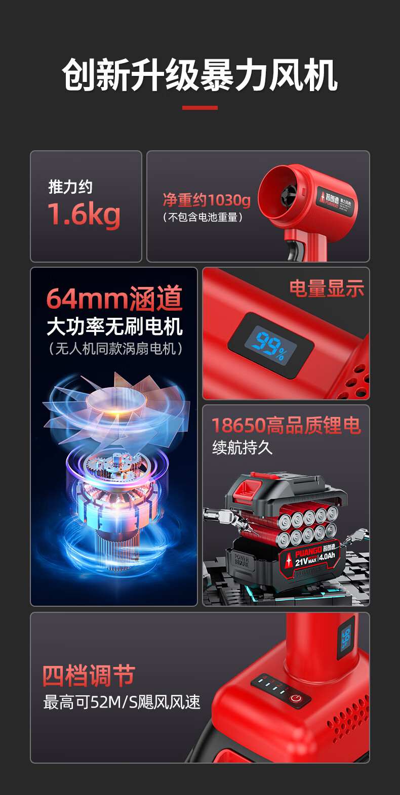 Plande brushless violent hair dryer high-power household turbine snow blower lithium battery ducted fan powerful blower industrial