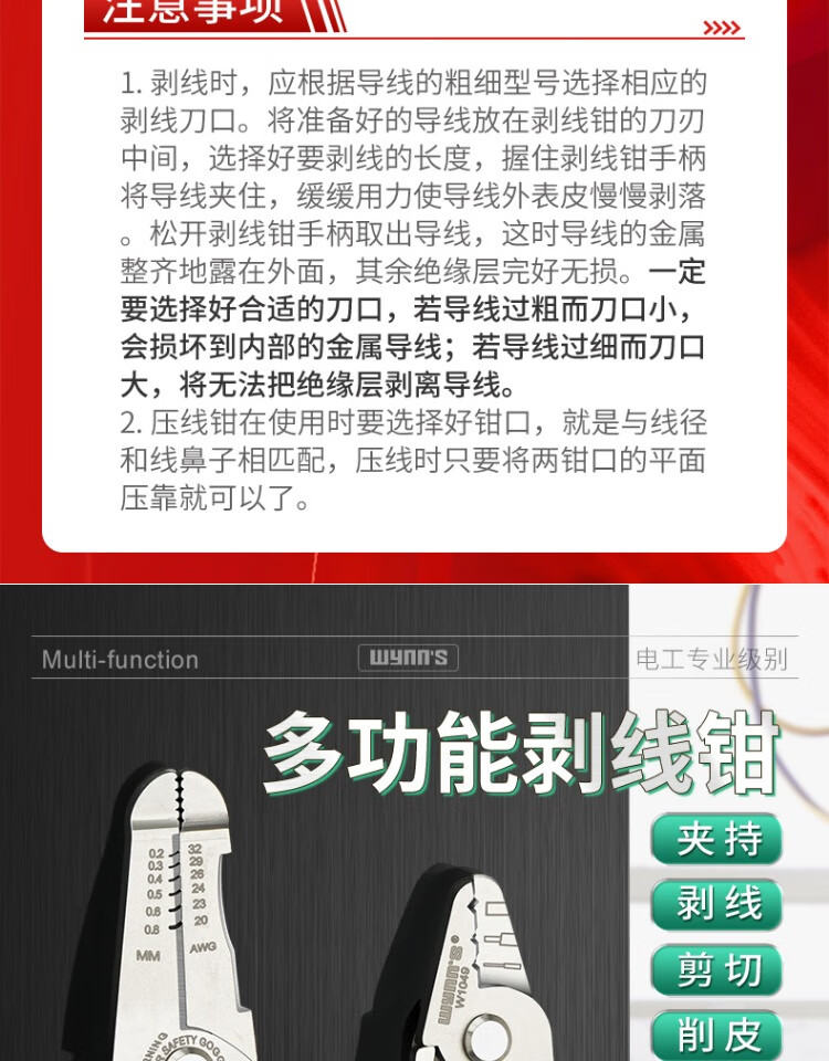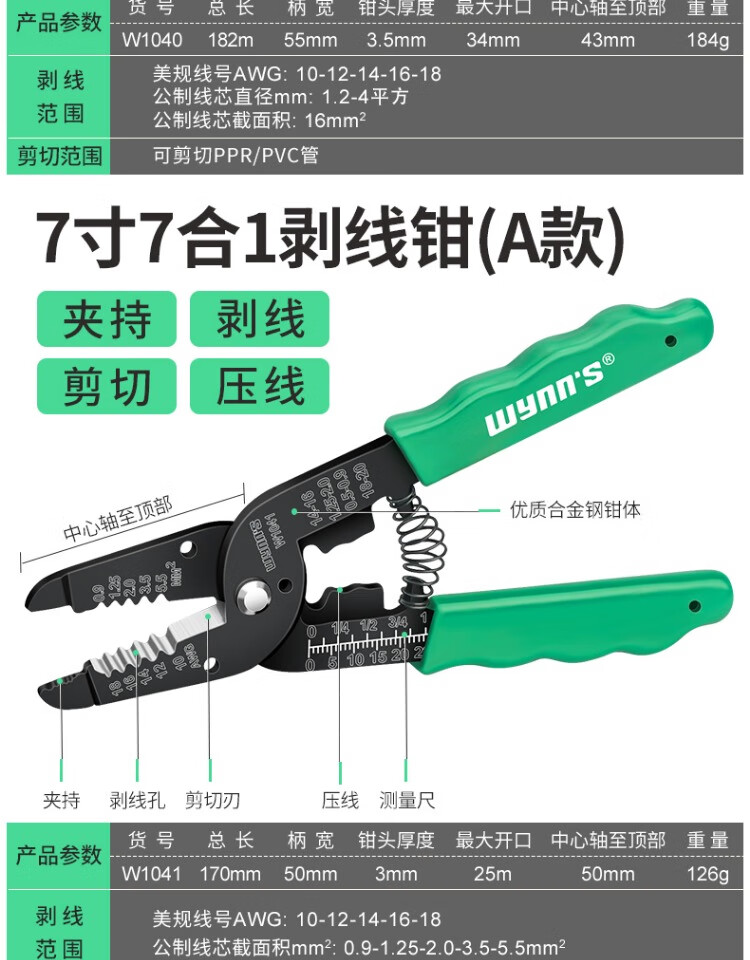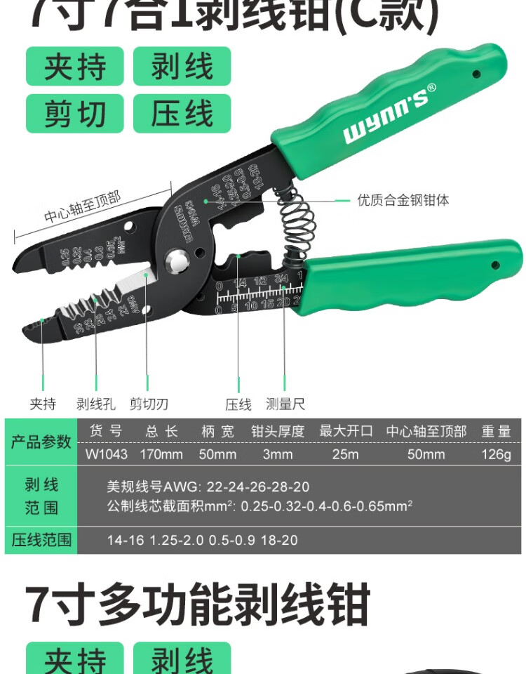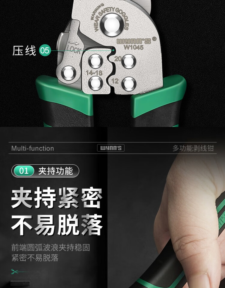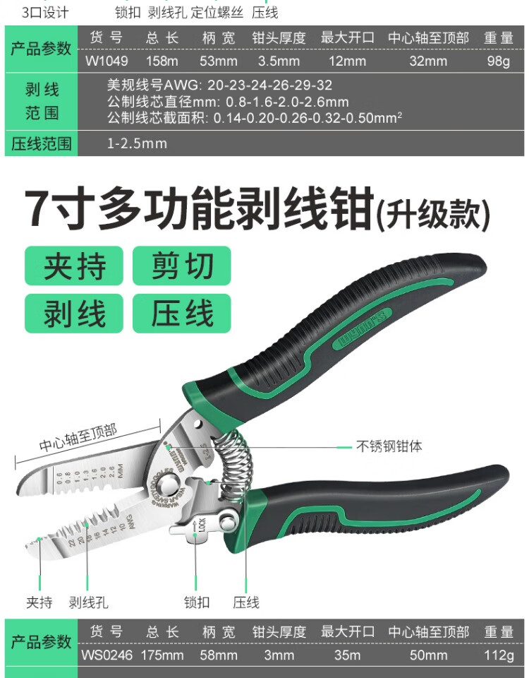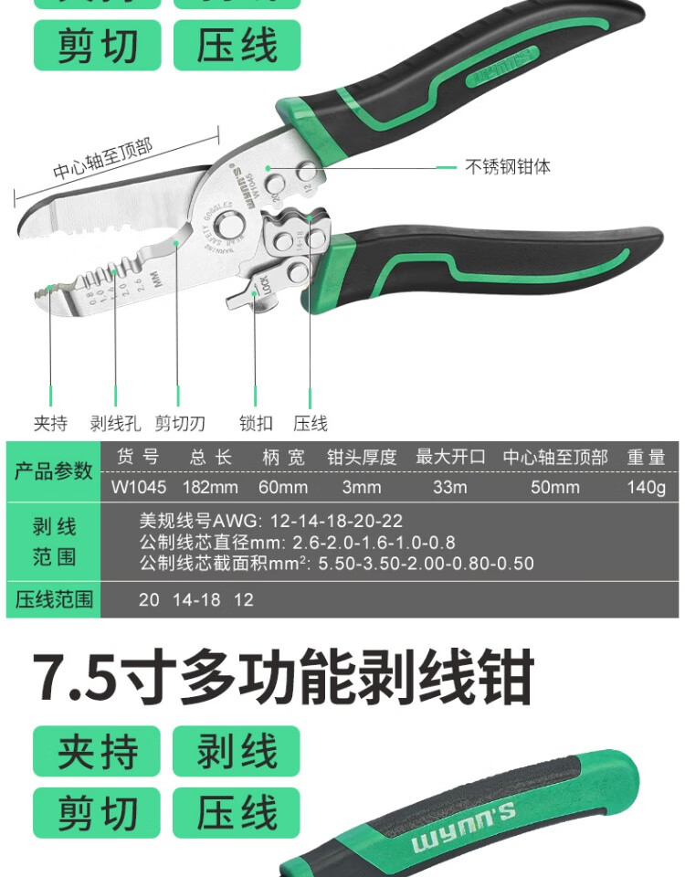 Power Lion Wire Stripping Pliers Home Electrician's Pliers with Blade 7-speed Multi-Function Wire Pulling, Cutting and Crimping Pliers WS0246