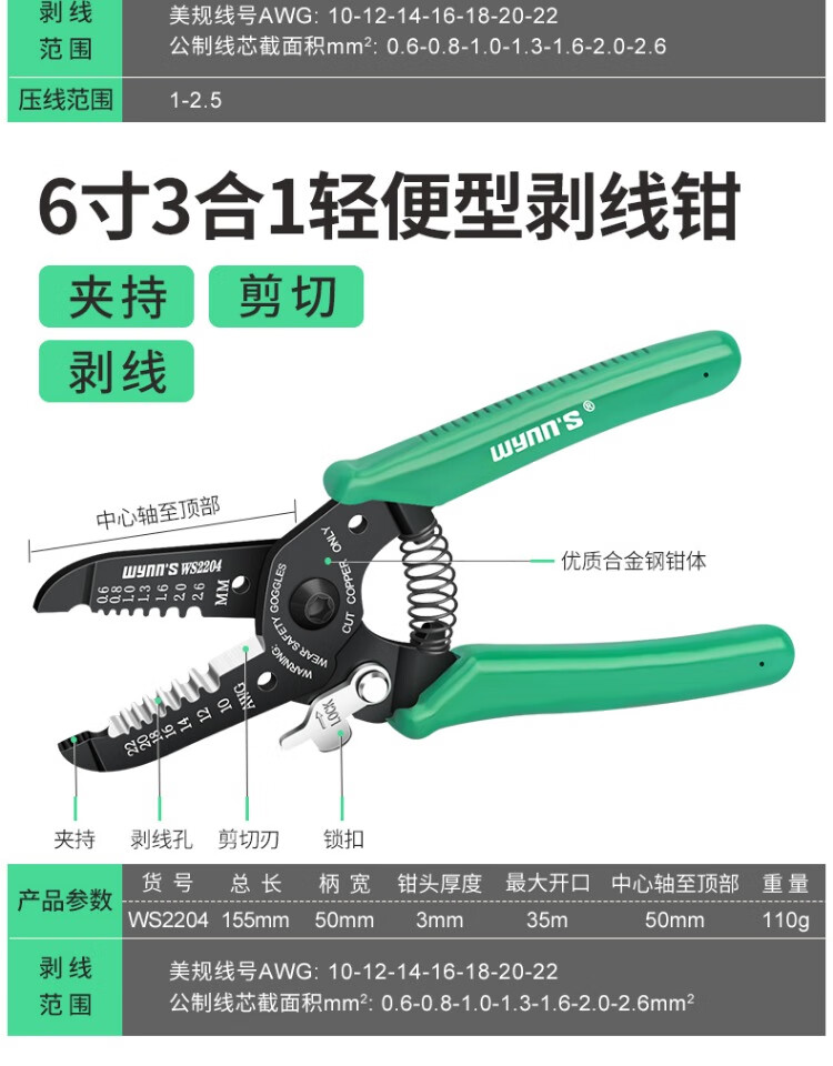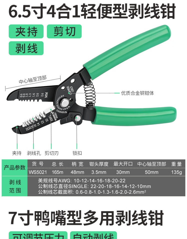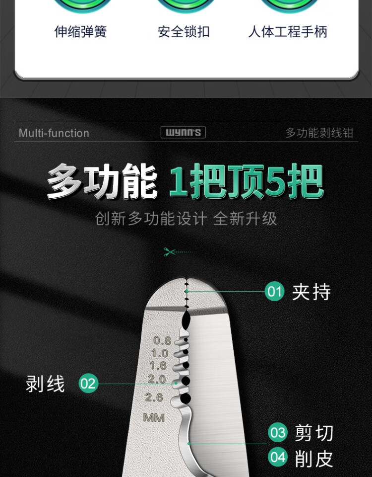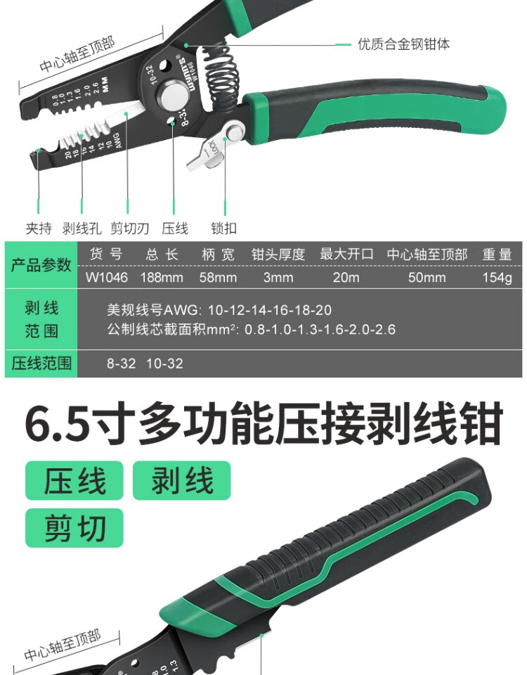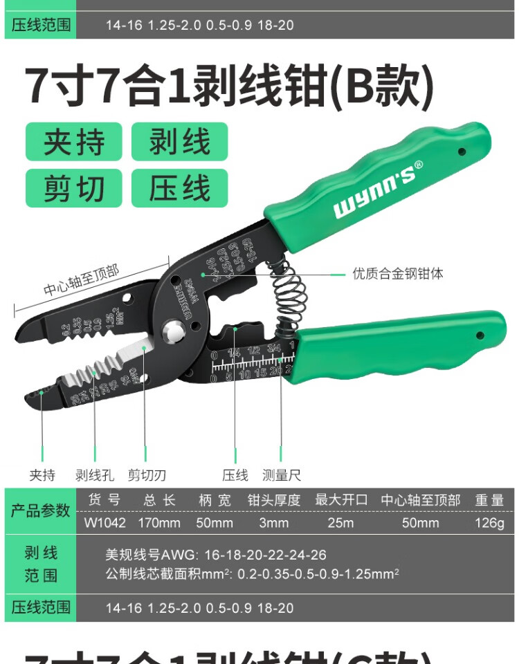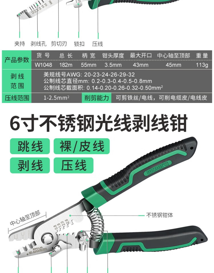 Power Lion Wire Stripping Pliers Home Electrician's Pliers with Blade 7-speed Multi-Function Wire Pulling, Cutting and Crimping Pliers WS0246