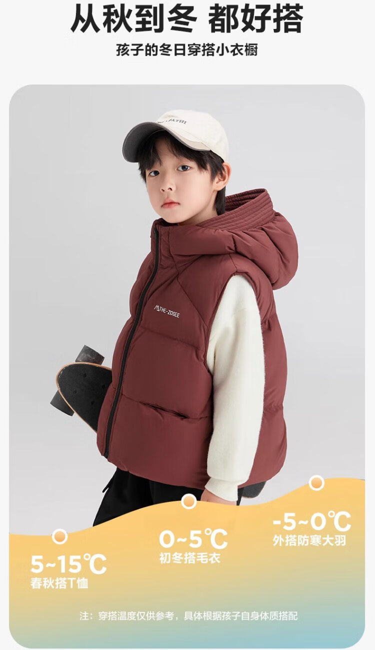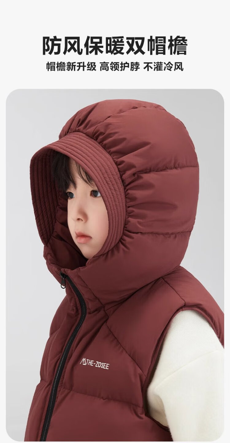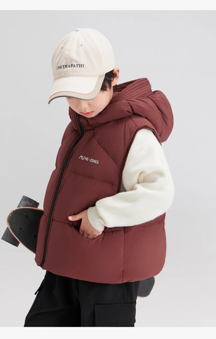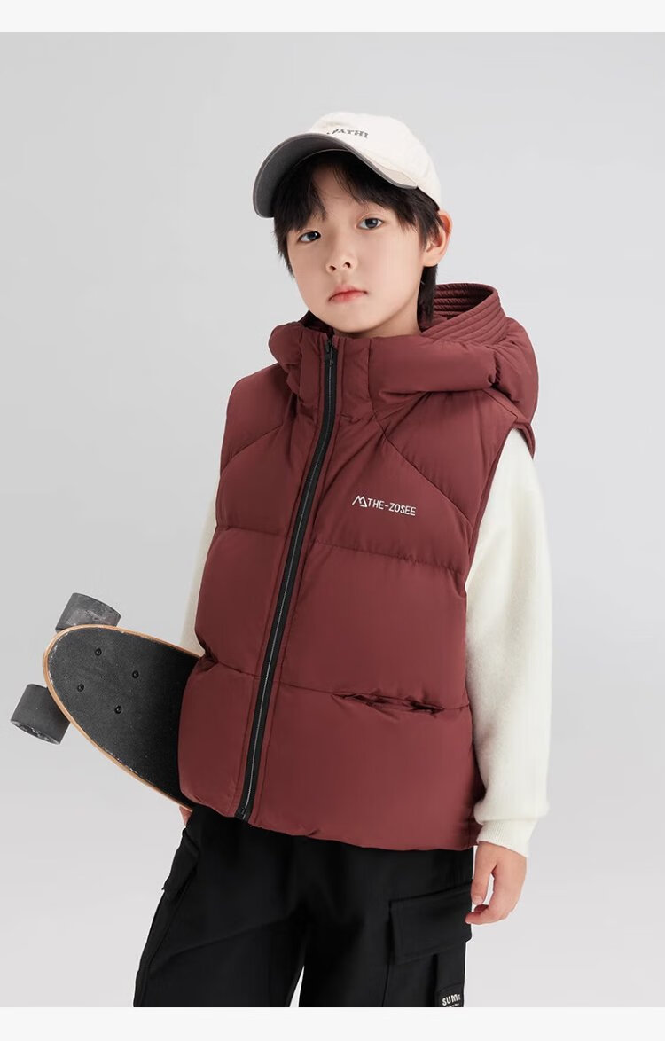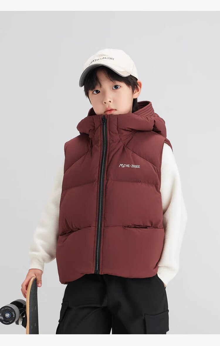 Zuoxi boys' down vest for outer wear to keep warm 2025 new children's three-proof hooded vest jacket red 120