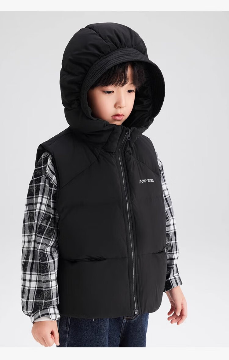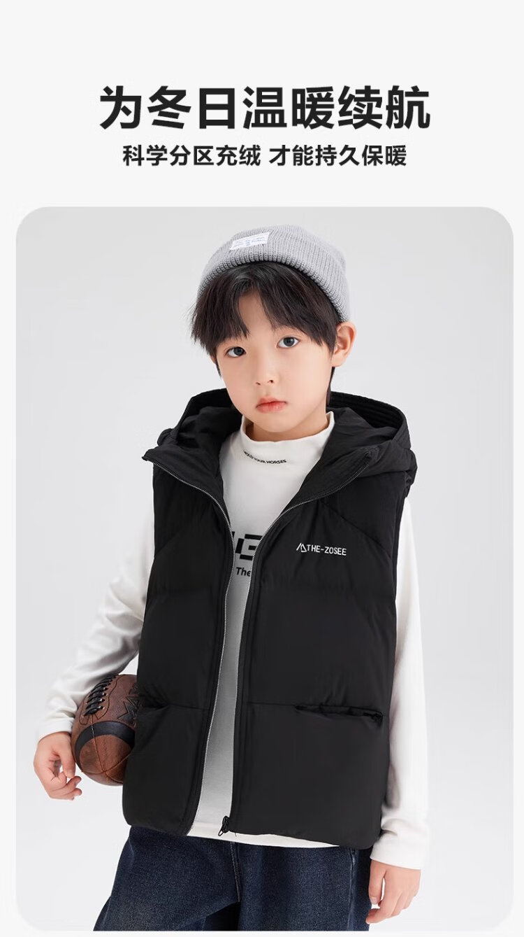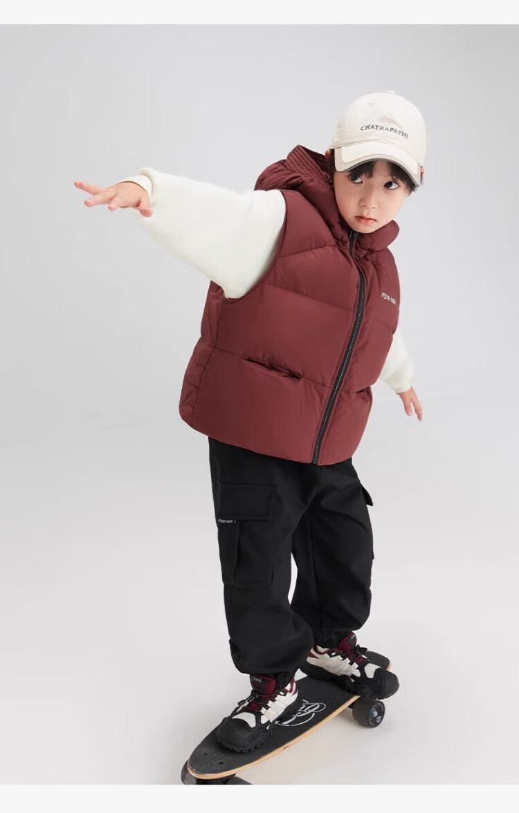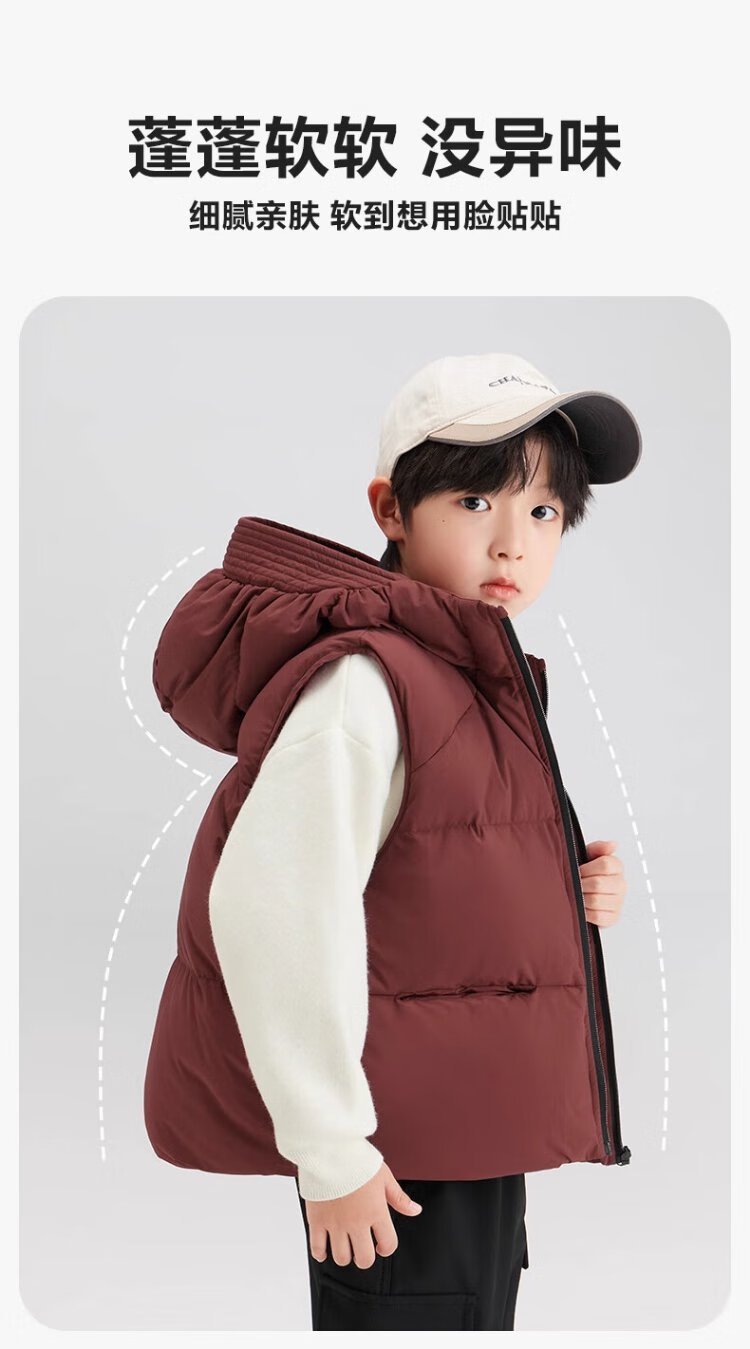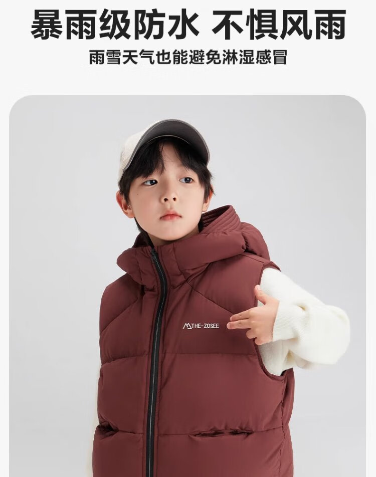 Zuoxi boys' down vest for outer wear to keep warm 2025 new children's three-proof hooded vest jacket red 120