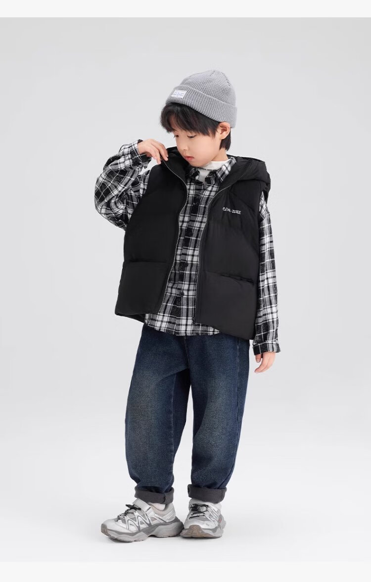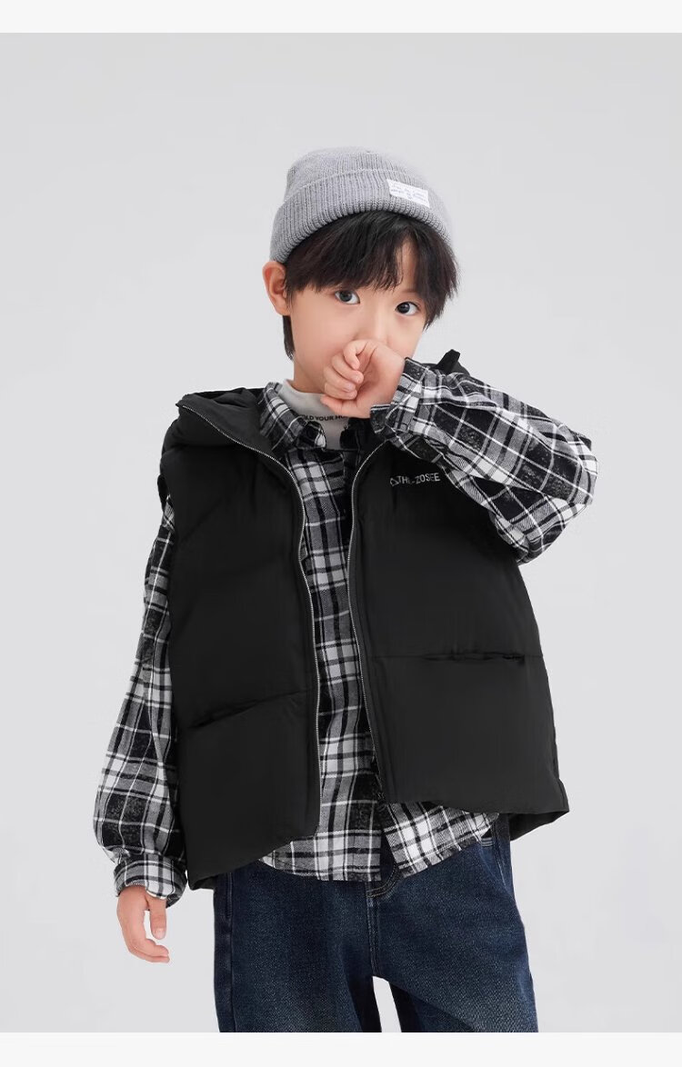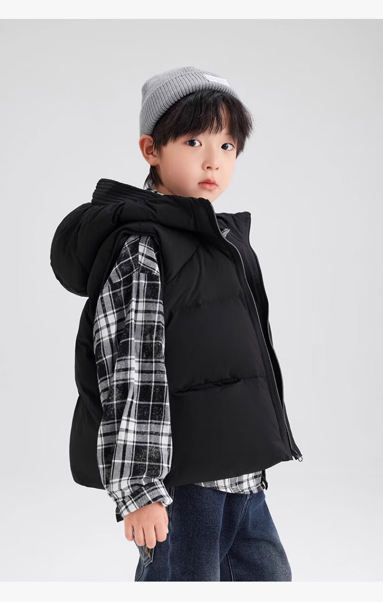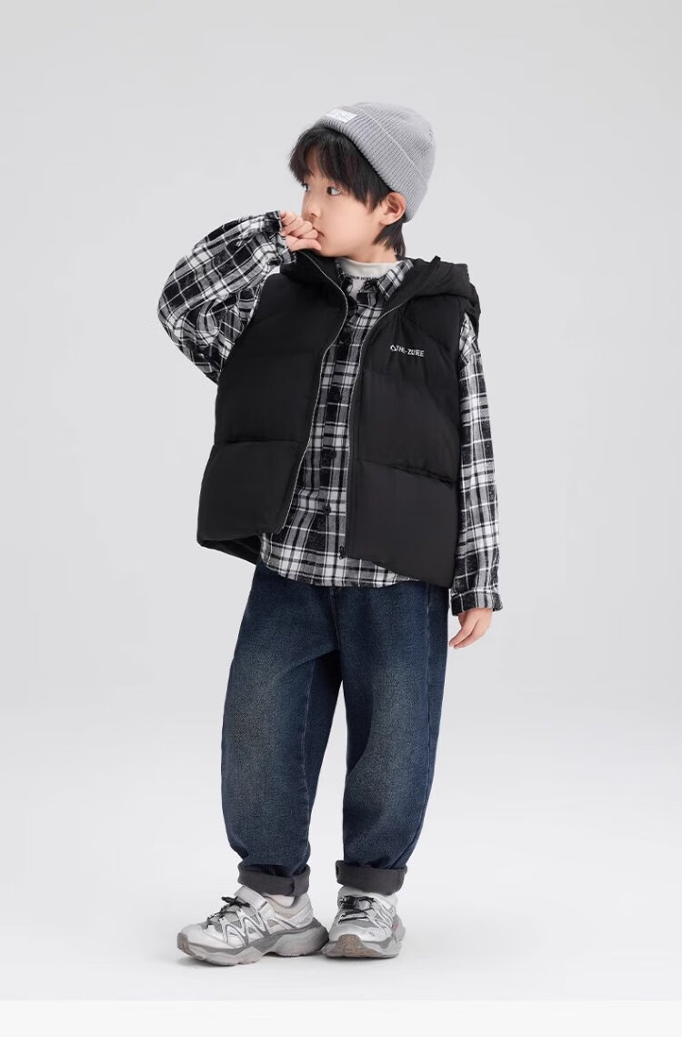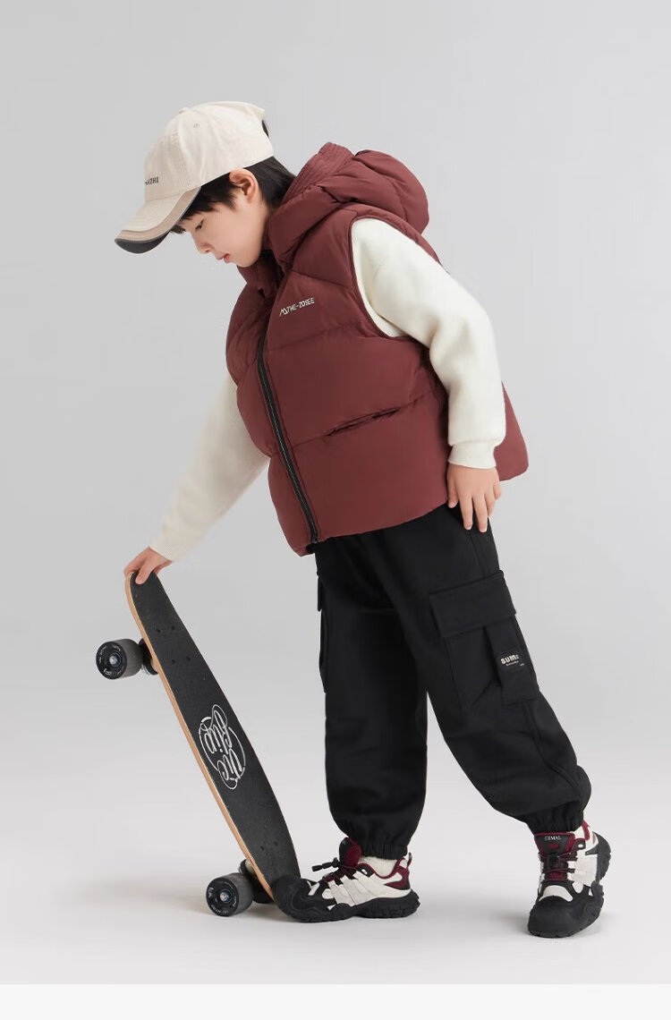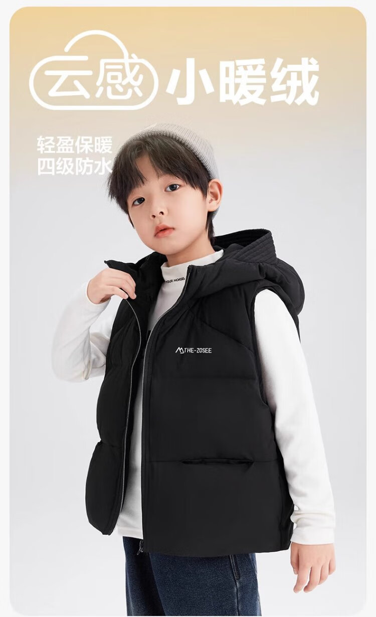 Zuoxi boys' down vest for outer wear to keep warm 2025 new children's three-proof hooded vest jacket red 120