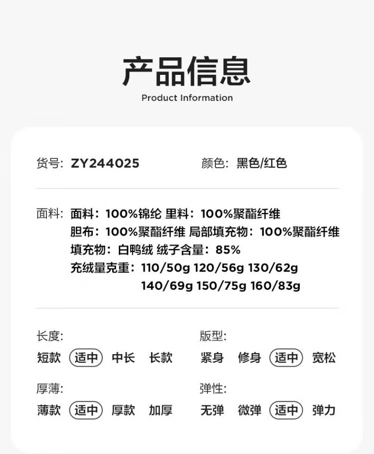 China (cm) 165 / 88-90 170 / 96-98 175 / 108-110 180 / 118-122 185 / 126-130