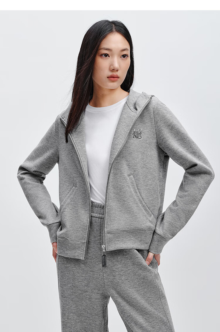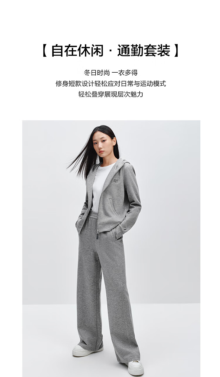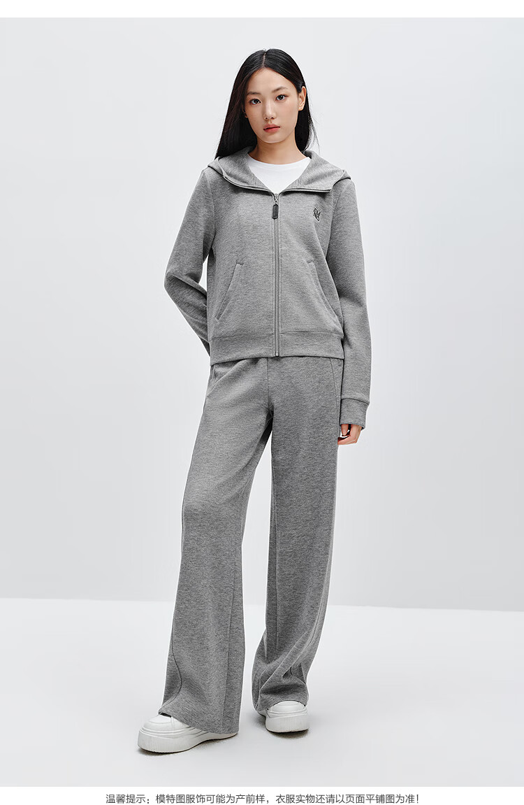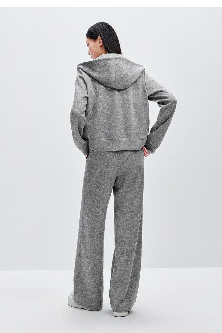 PEACEBIRD Women's Sweater Winter Zippered Thin Velvet Hooded Jacket Loose Pants Suit Gray Jacket S