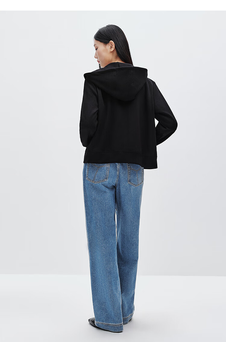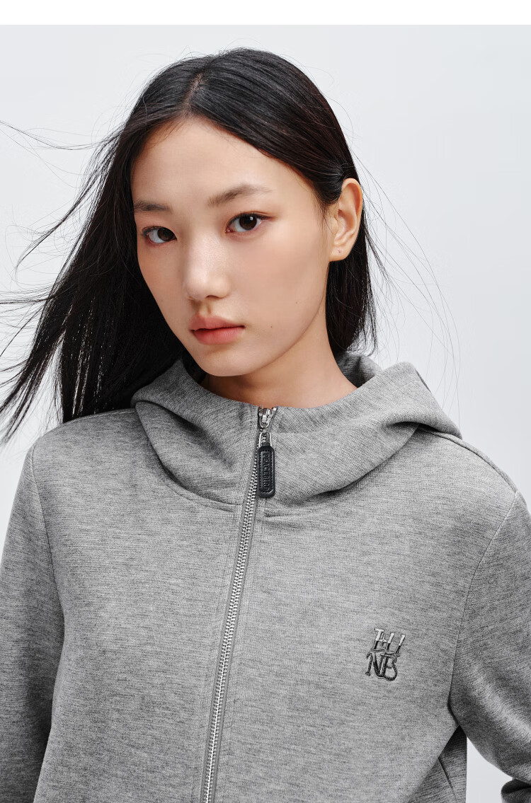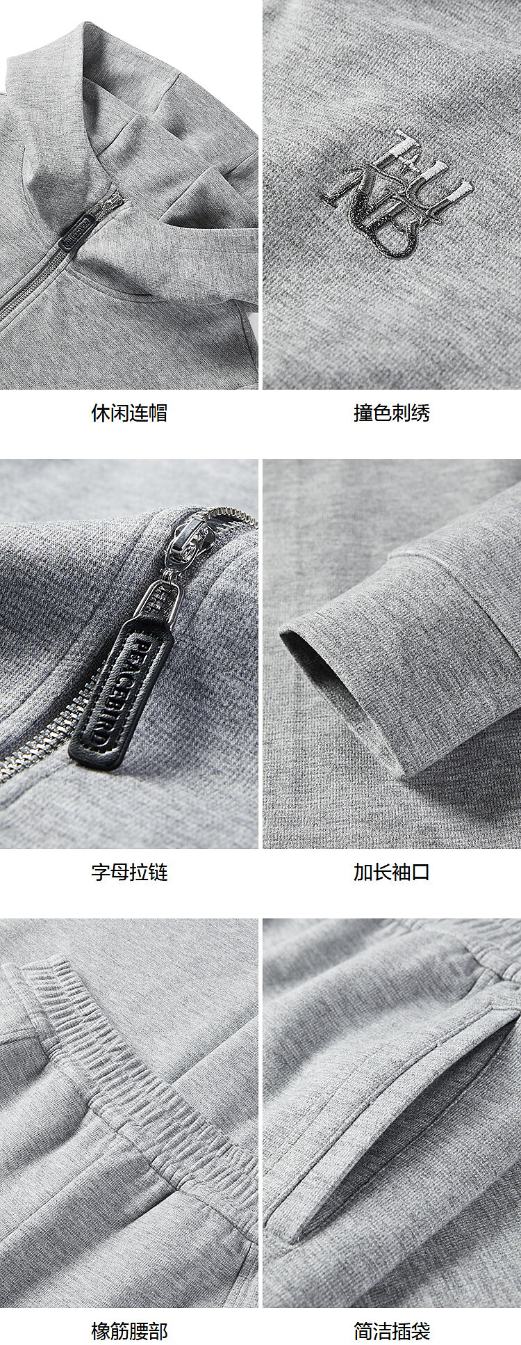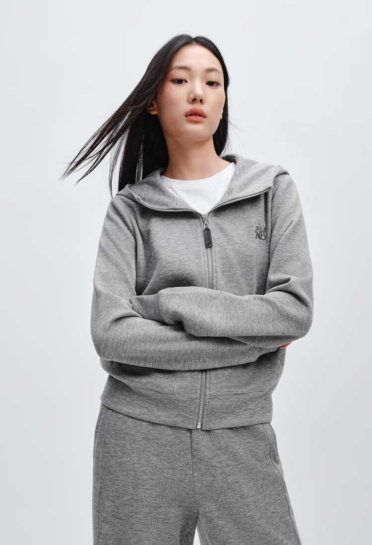 PEACEBIRD Women's Sweater Winter Zippered Thin Velvet Hooded Jacket Loose Pants Suit Gray Jacket S