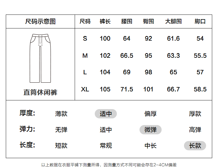 Outseam (cm) 99 cm 101.5 cm 104 cm 106.5 cm 109 cm