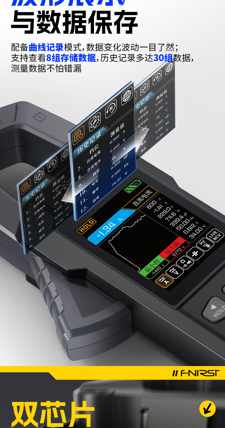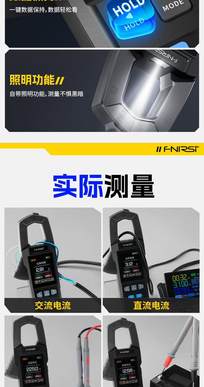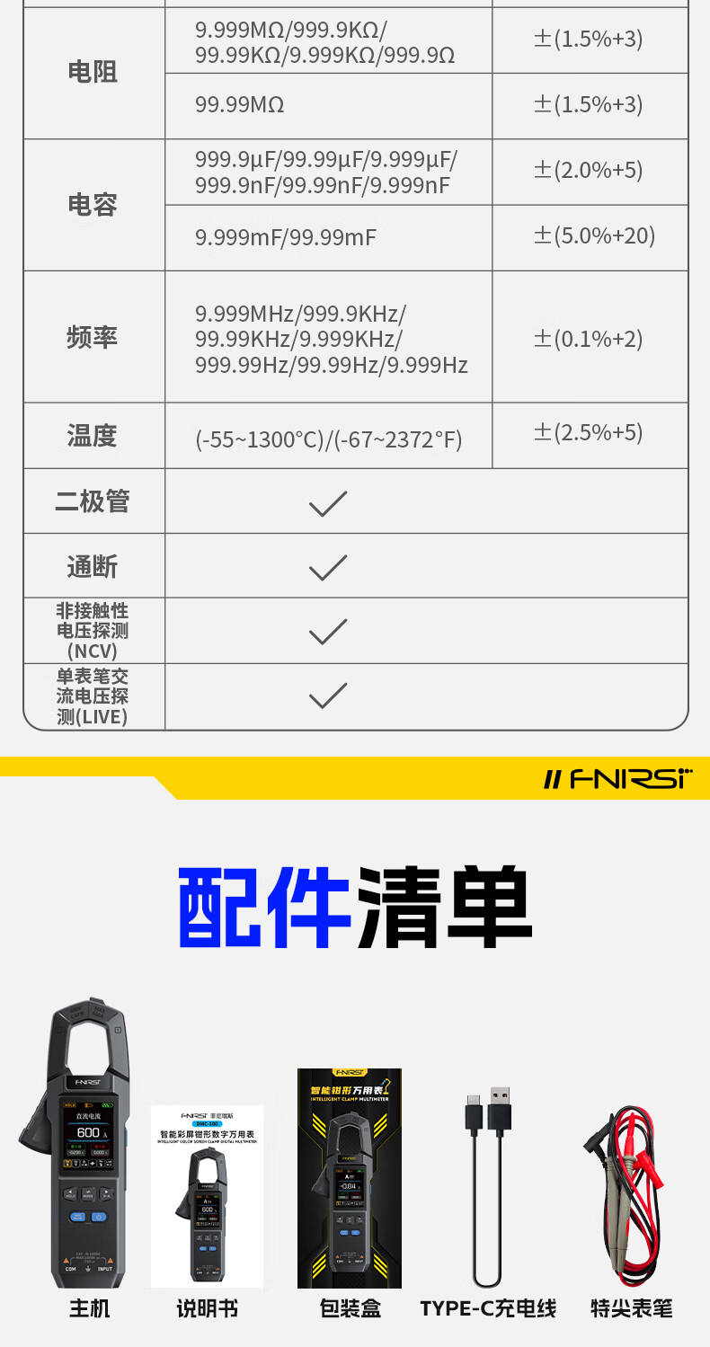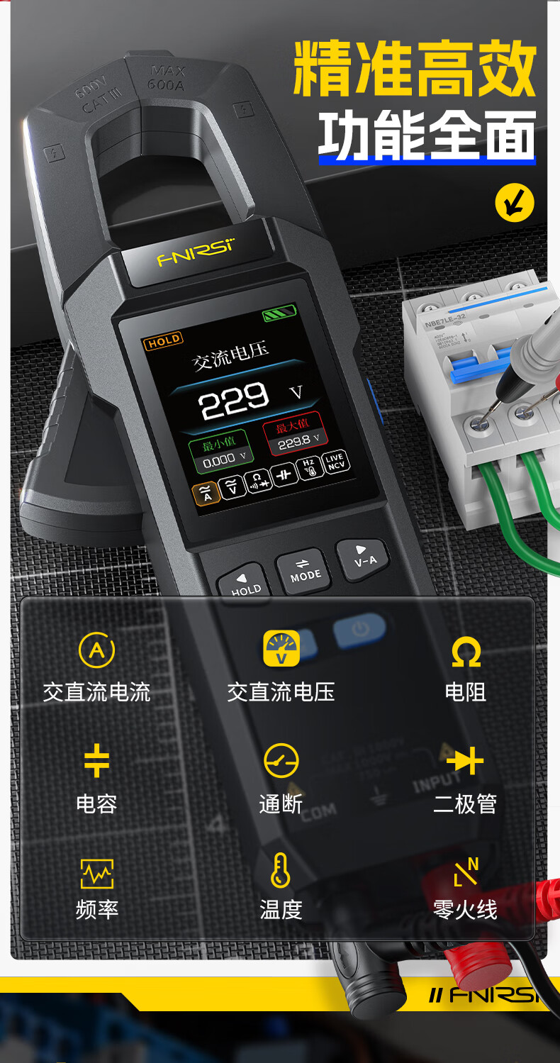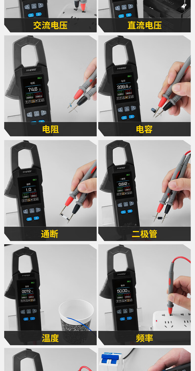FNIRSI FNIRSI clamp meter multimeter intelligent anti-burn high-precision AC and DC current voltage power capacitance resistance