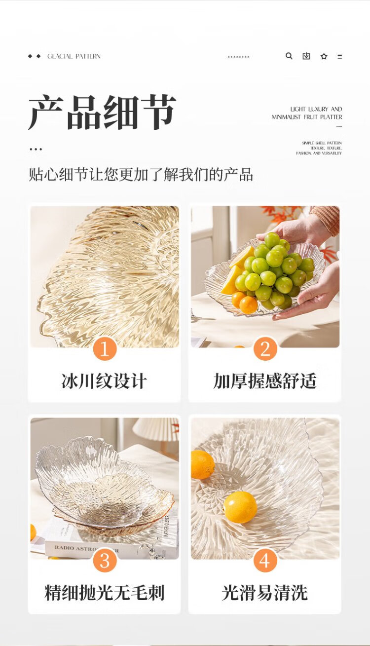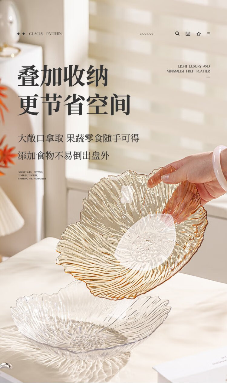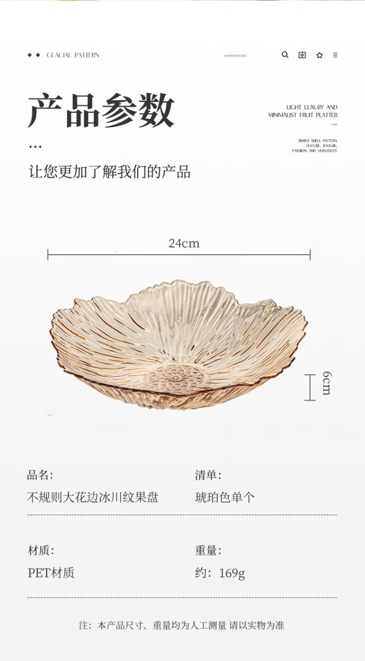Guangyi Fruit Plate Home Living Room Light Luxury Candy Nut Snacks Dried Fruit Plate Irregular Lace Amber GY1394