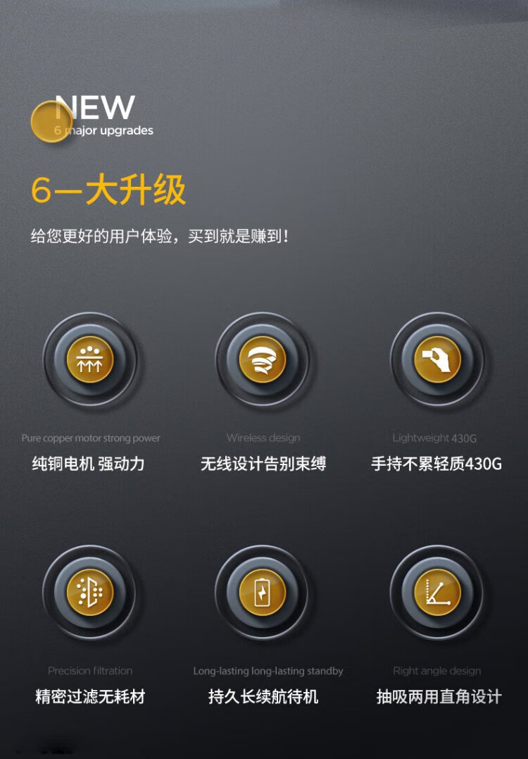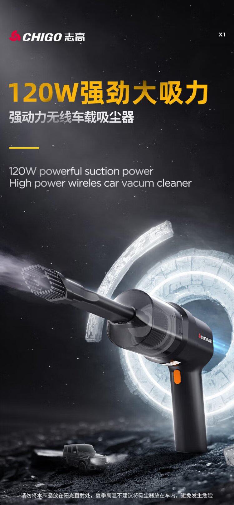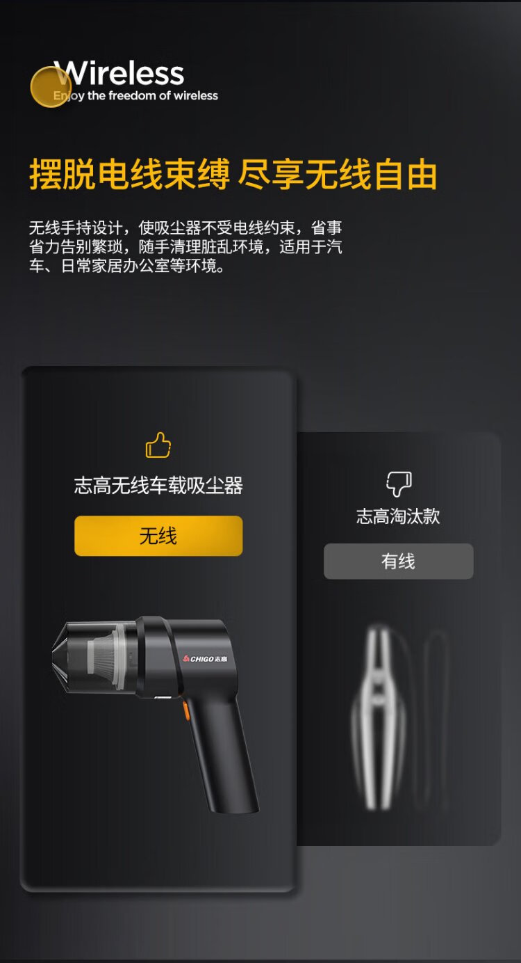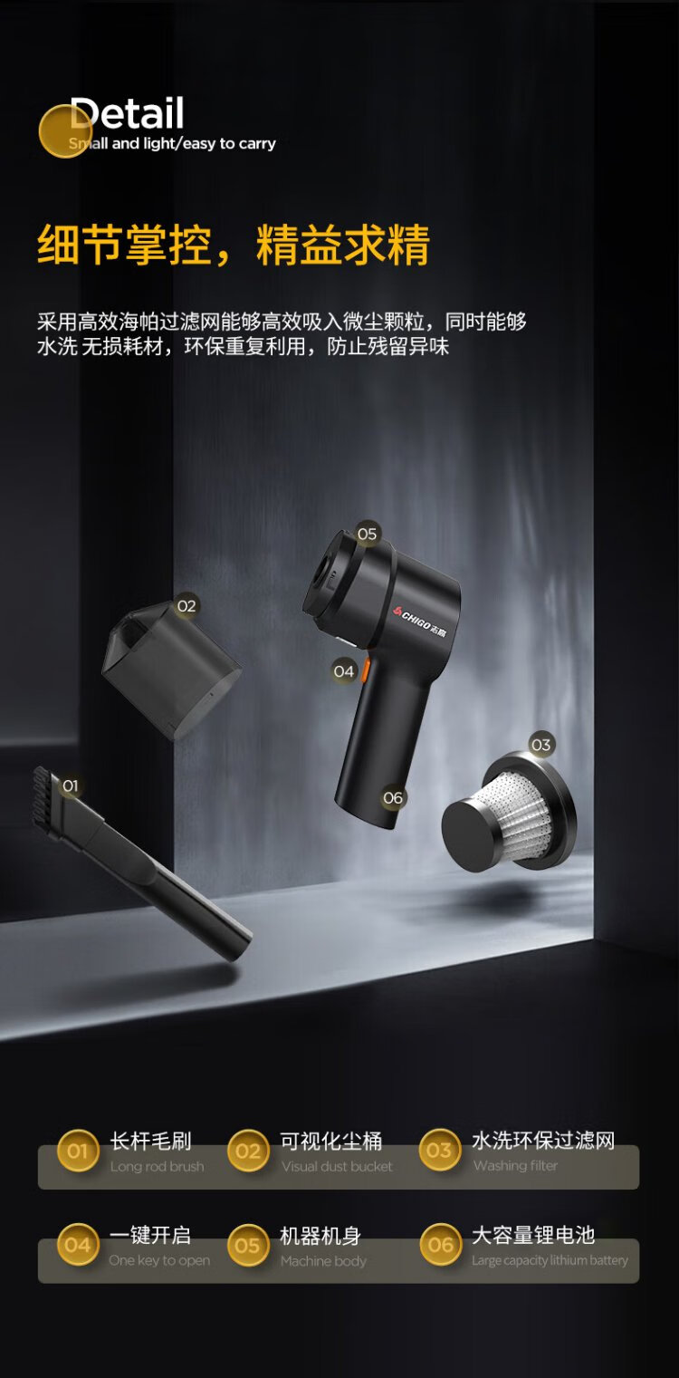 CHIGO Car Vacuum Cleaner Home High Suction Wireless Handheld Small Car Desktop Portable New Energy Dust Collector