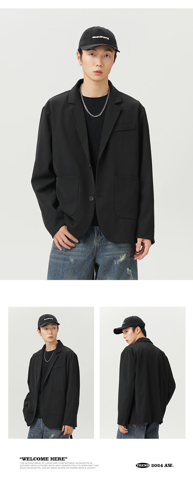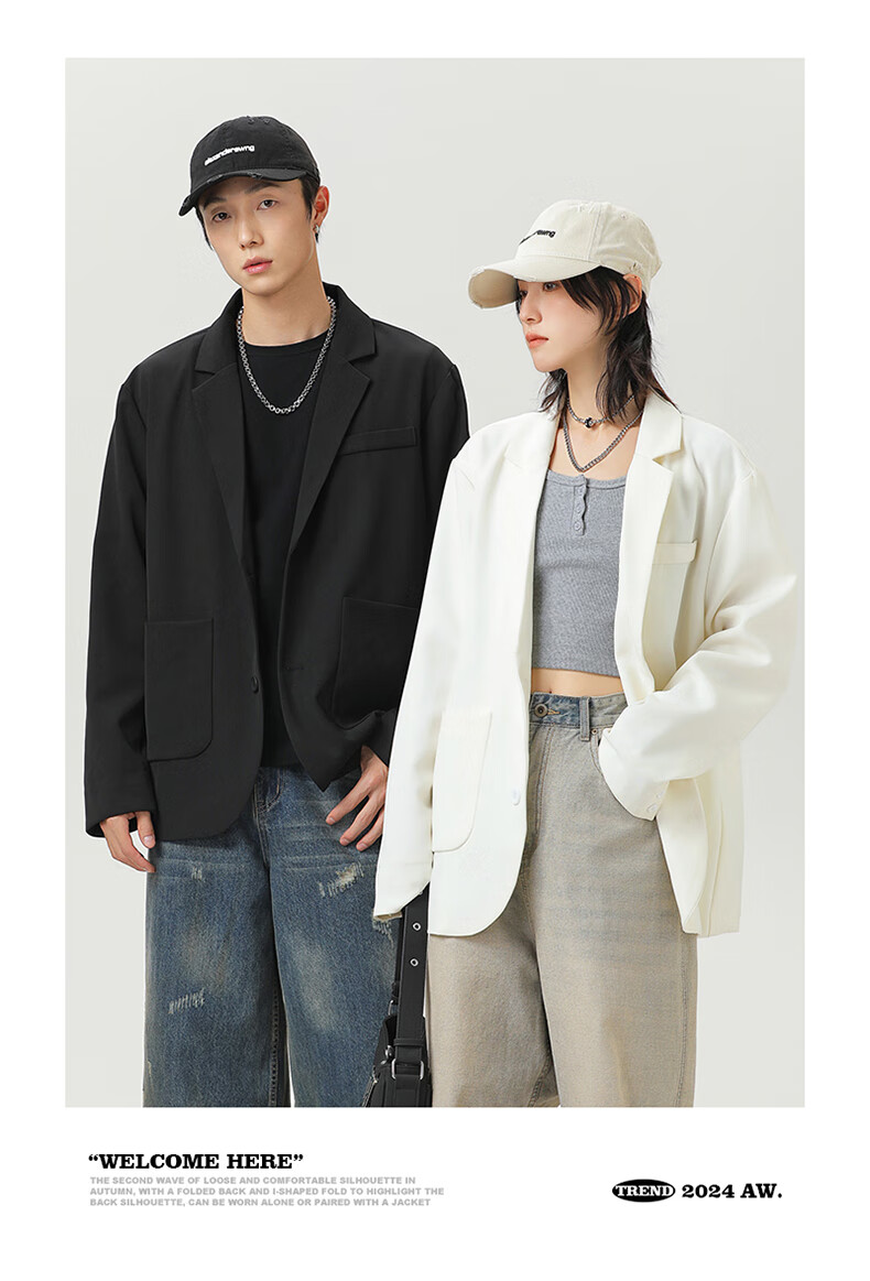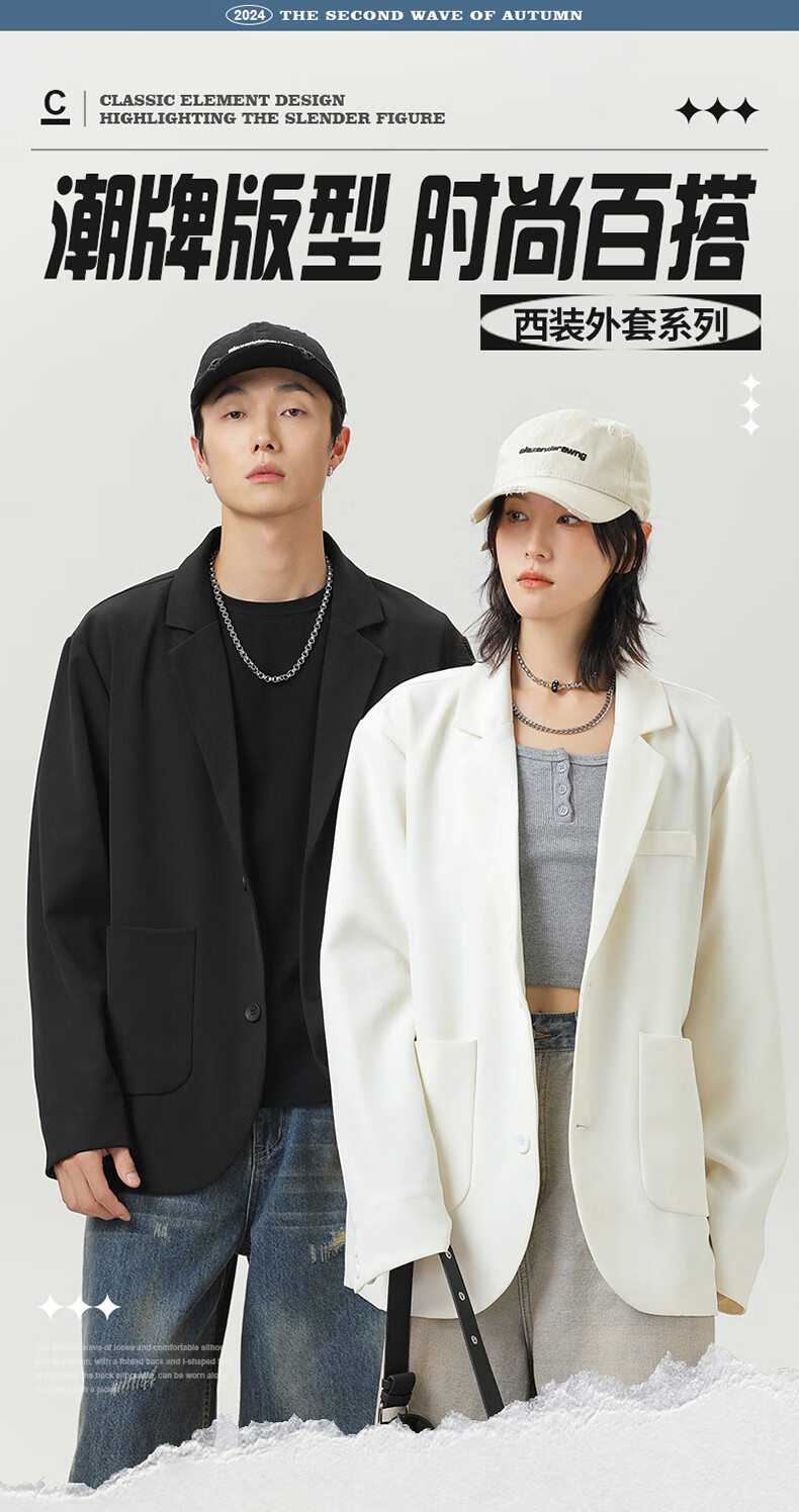 MMOPTOP high-end suit jacket men's autumn and winter solid color loose casual suit for couples 2516 matte black XL