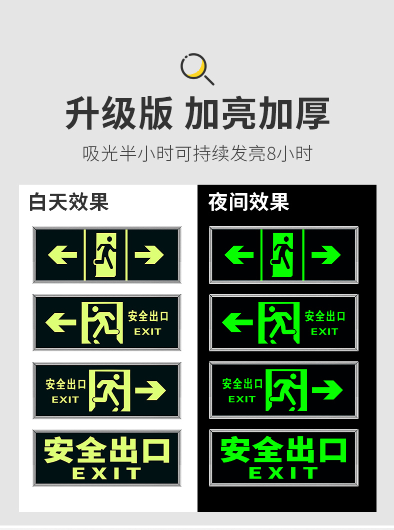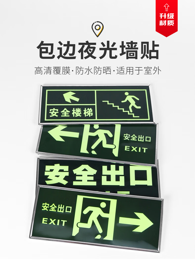 Also, Jingcang Suda 5 silver-edged luminous signs, safety exits, thickened self-luminous wall stickers, emergency evacuation and escape luminous signs, self-adhesive