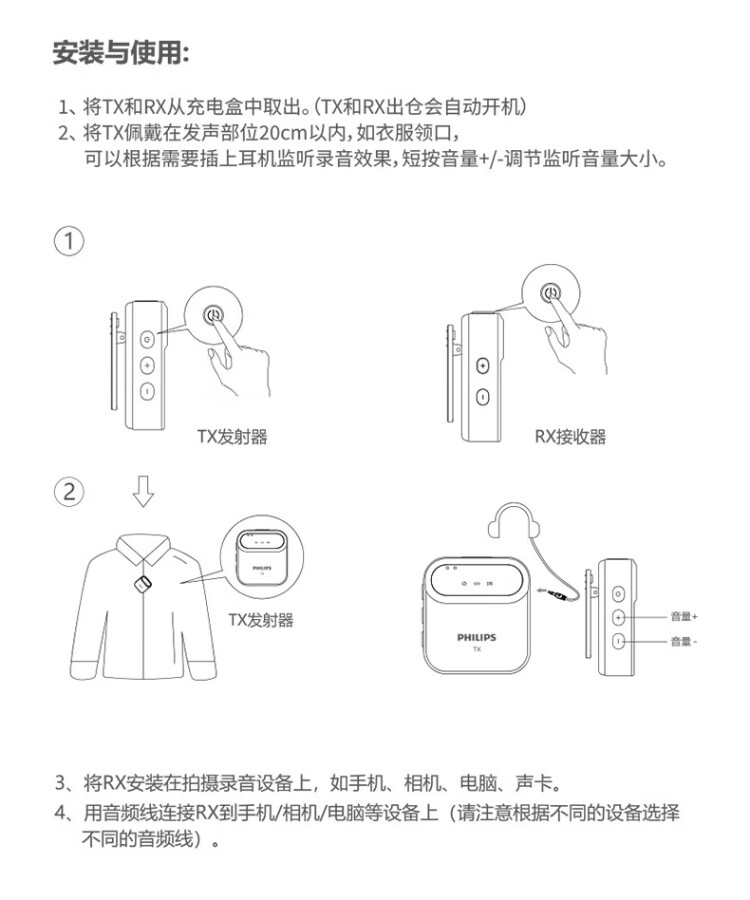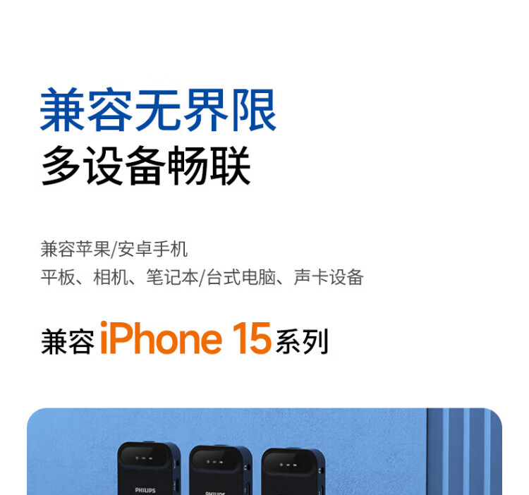 Philips (PHILIPS) National Subsidy Lavalier Microphone Vlog Short Video Live Broadcast Computer Android Apple Phone Radio Microphone Bluetooth Wireless Lavalier One-to-Two DLM3538C