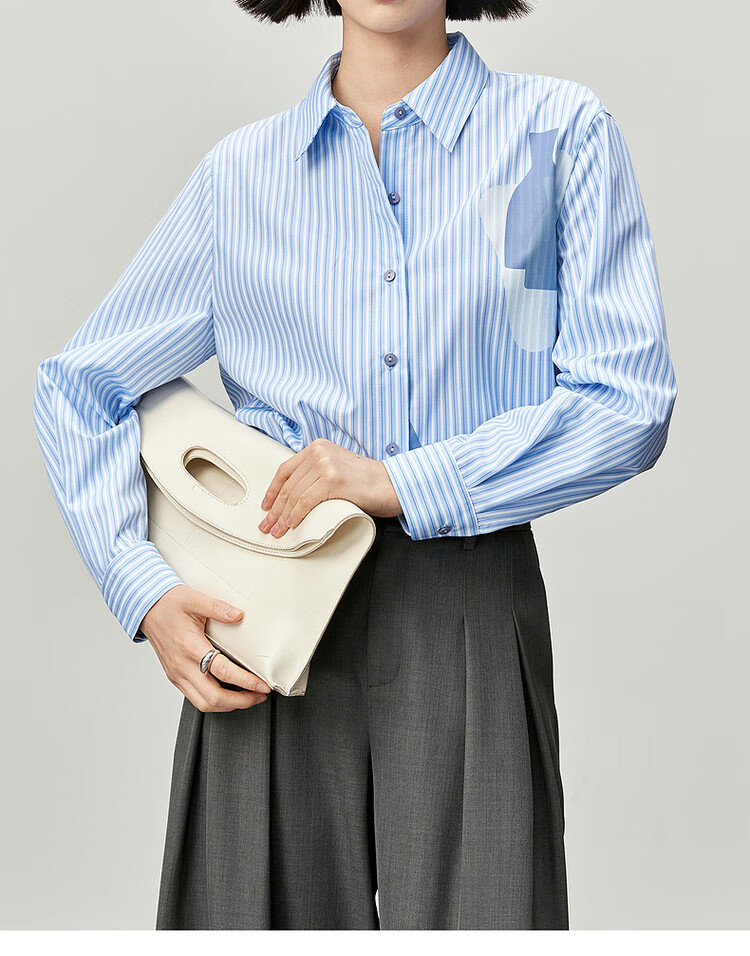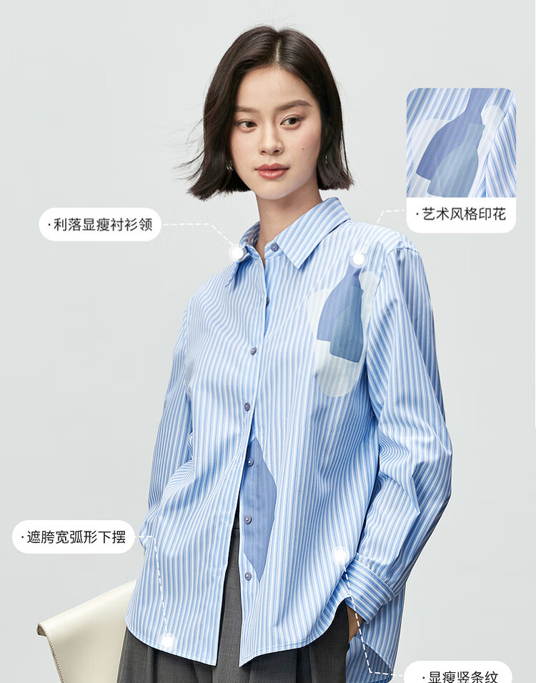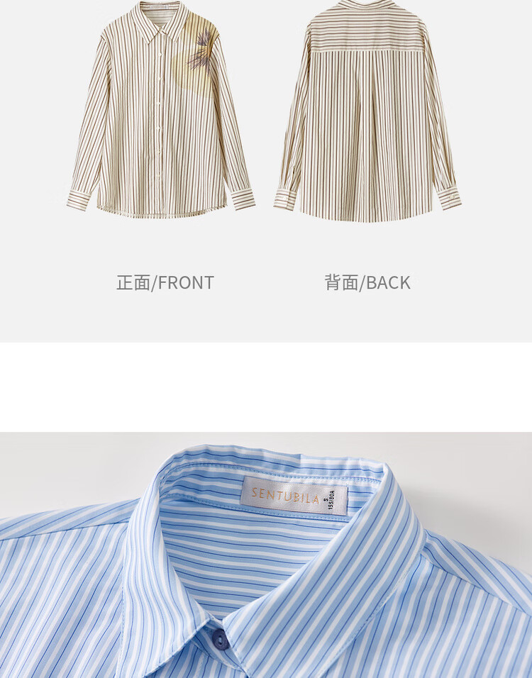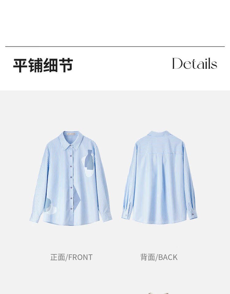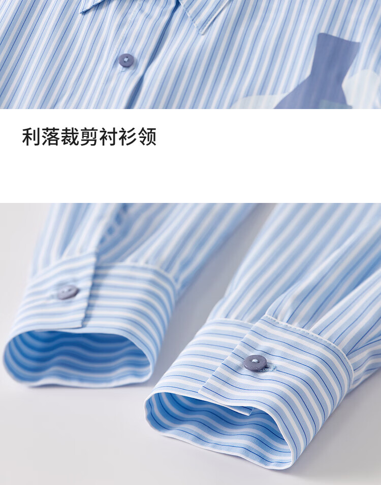 Shandubila spring and autumn new striped shirt long-sleeved casual high-end niche shirt women's top blue stripe L