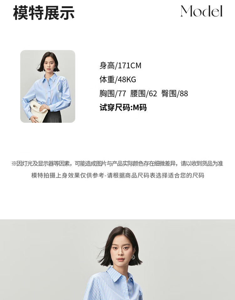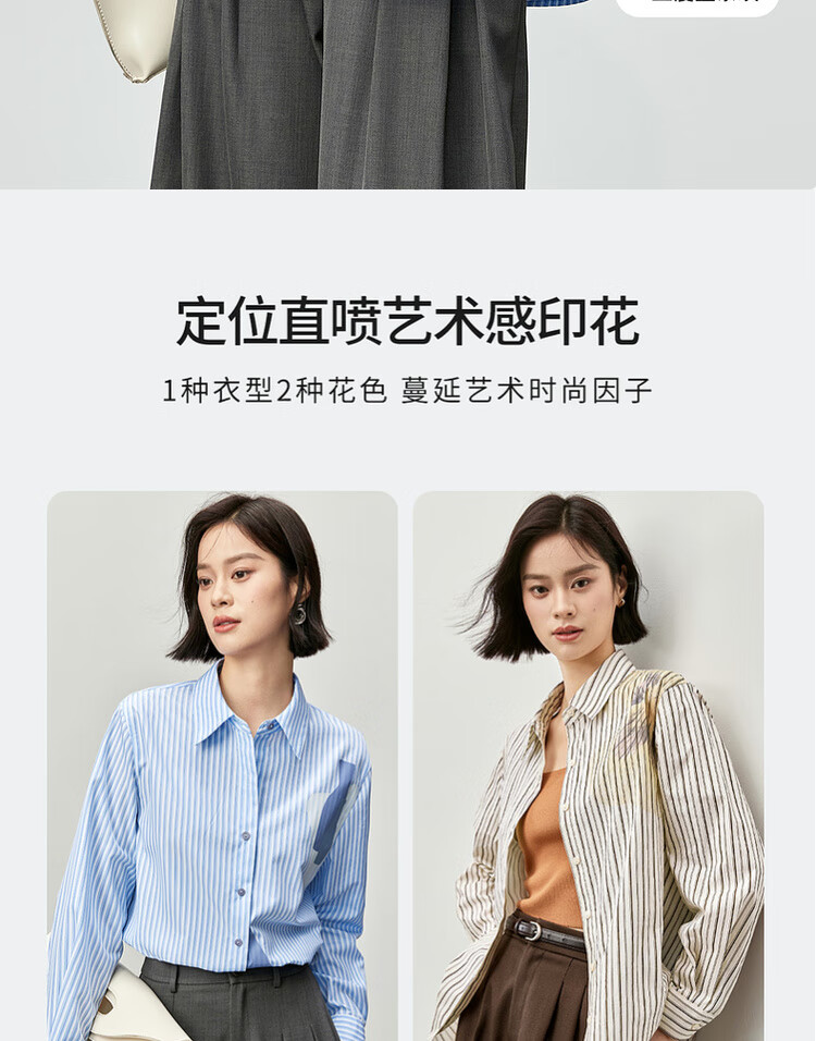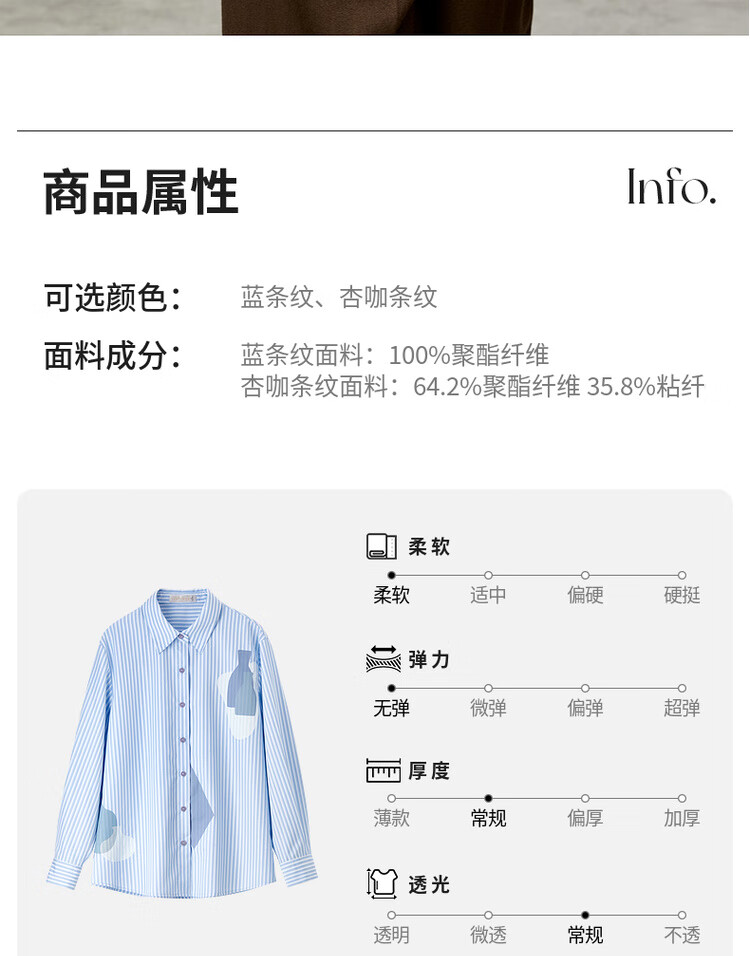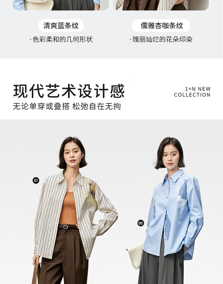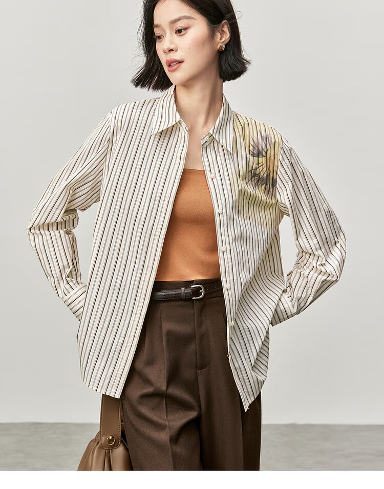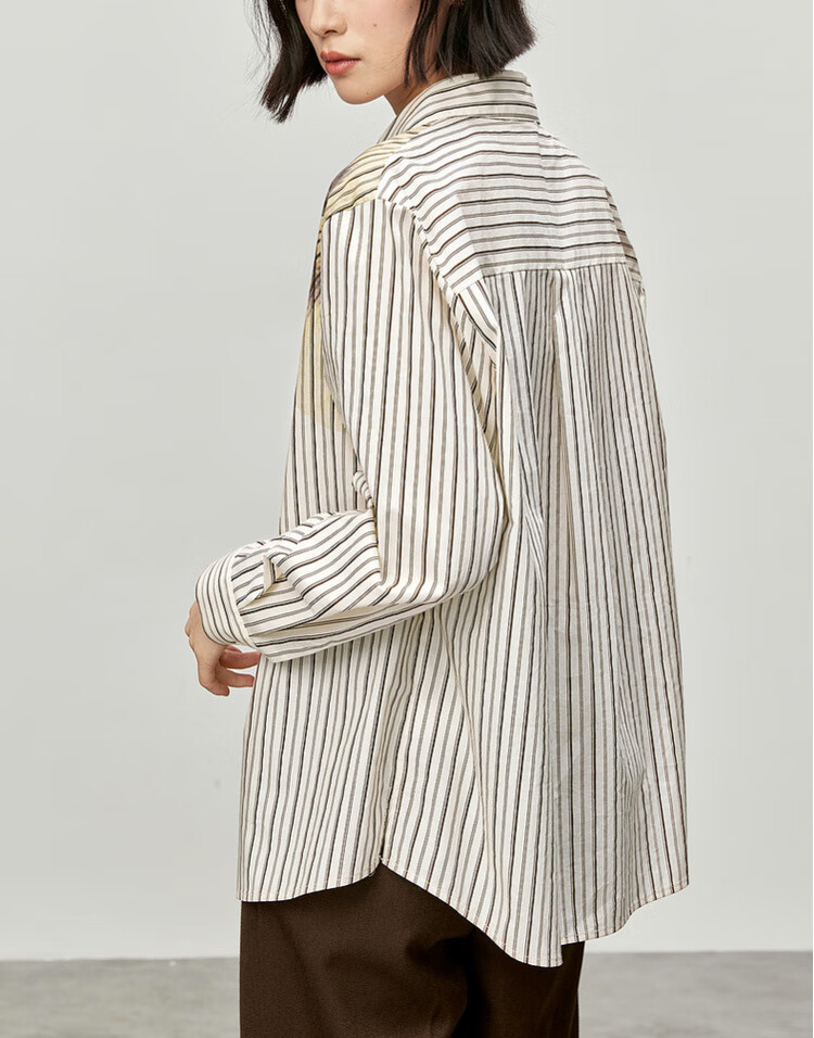 Shandubila spring and autumn new striped shirt long-sleeved casual high-end niche shirt women's top blue stripe L